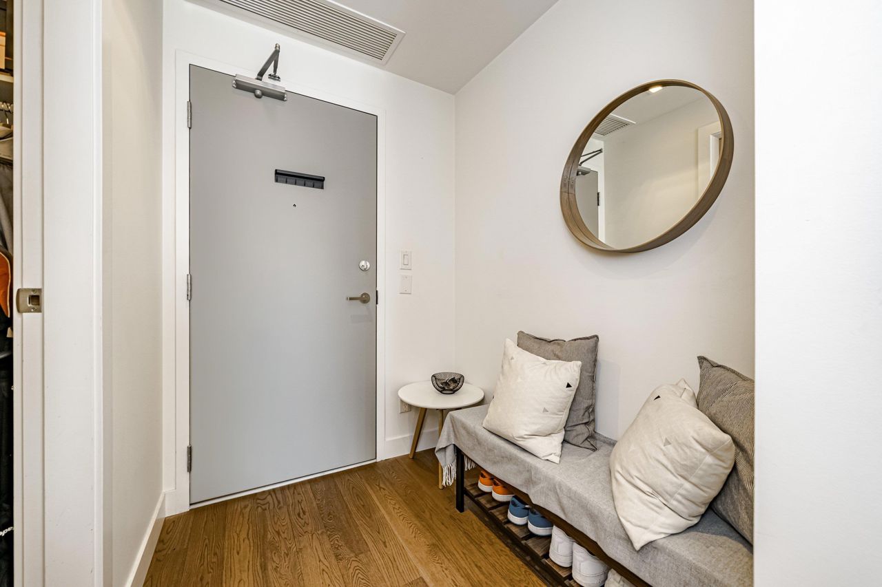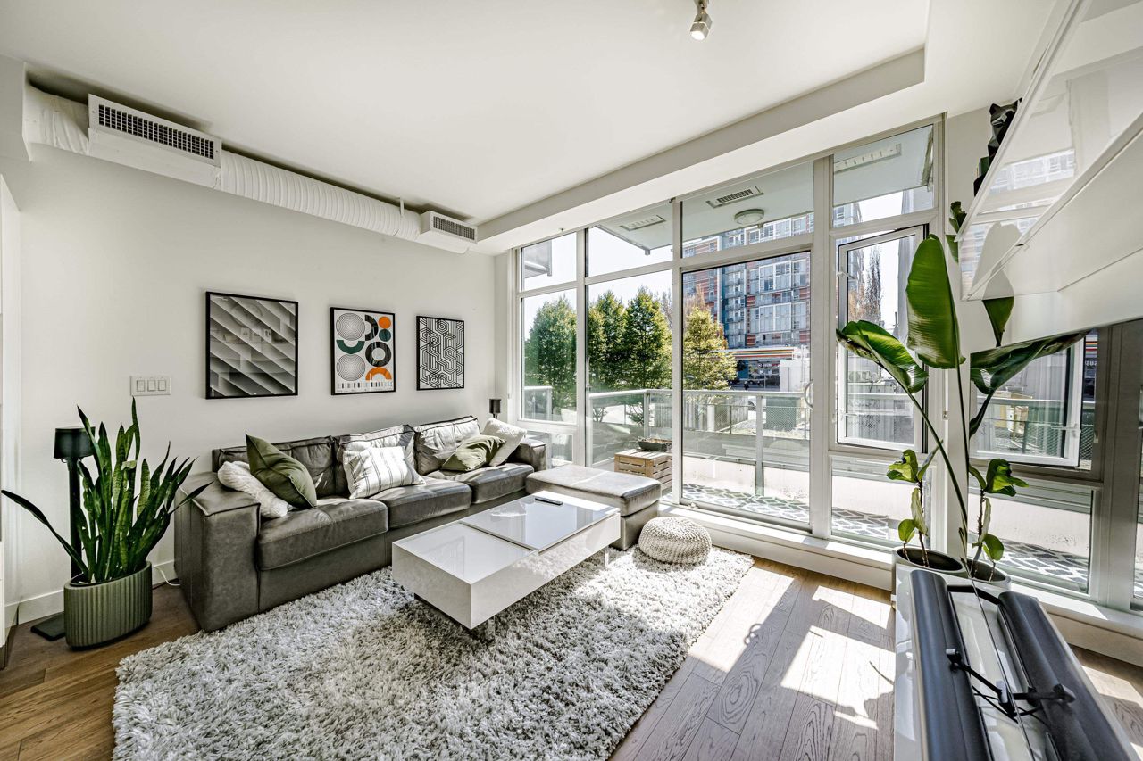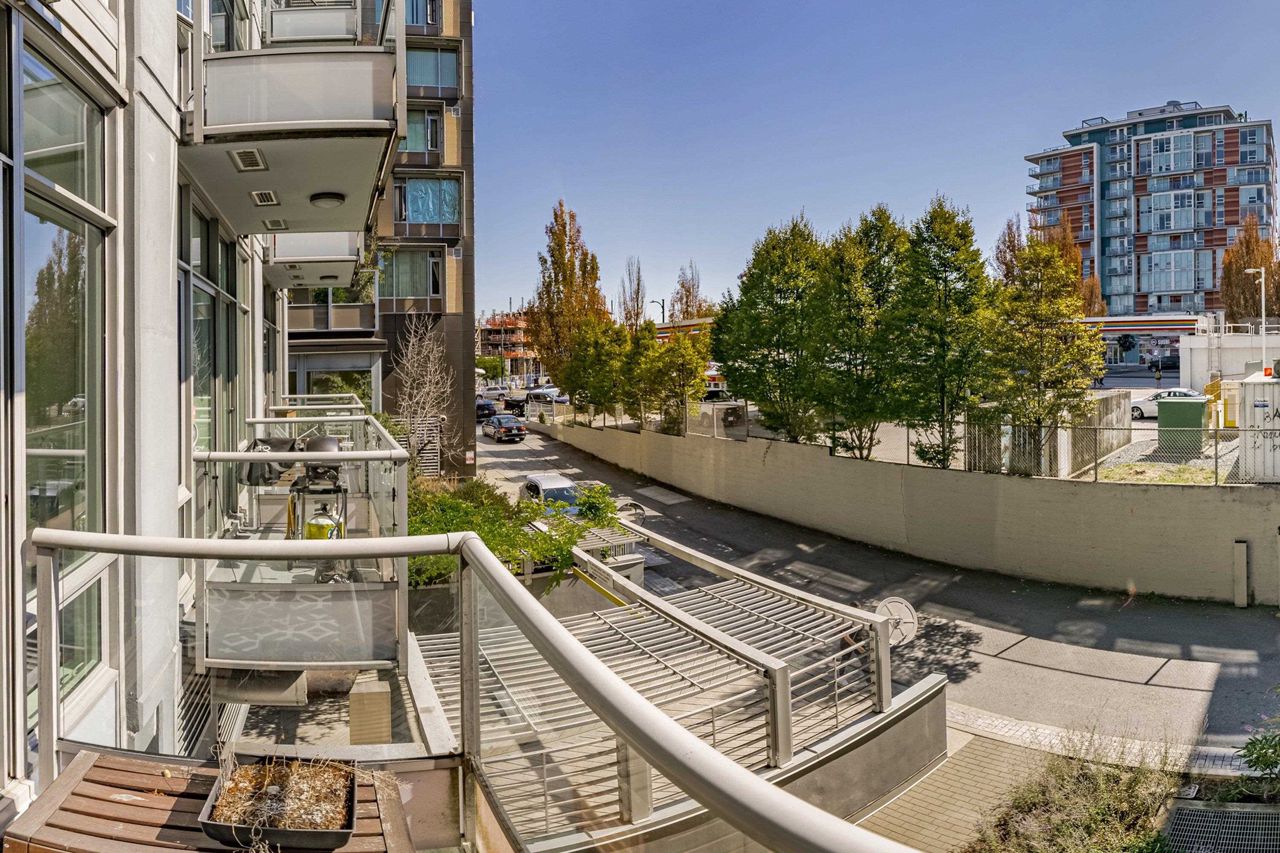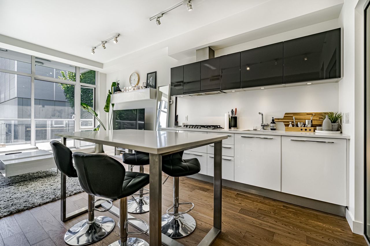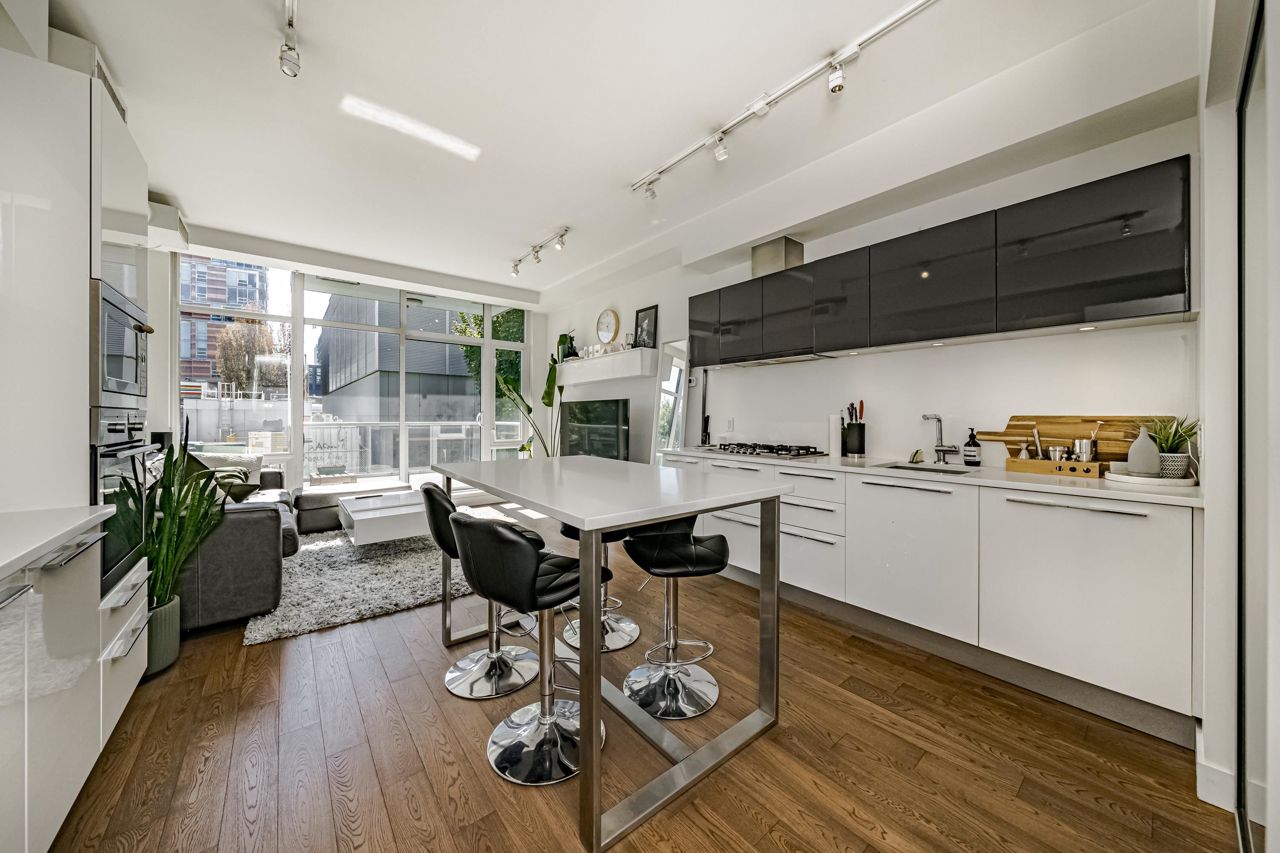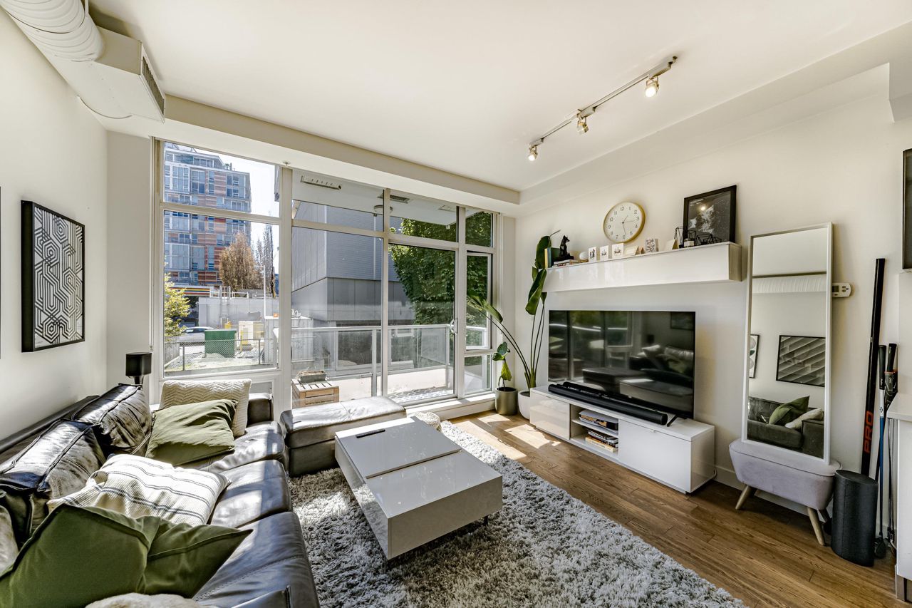 This is it! 638 square feet of living space - built by Cressey - you're HOME! This 1 bedroom boasts a spacious living & dining area perfect for entertaining. Classic and tasteful features like gorgeous walnut wood flooring, sleek high gloss cabinets, integrated AEG appliances, built in office nook, luxurious quartz counters & backsplash. The home is heated & cooled w/ a heat pump system & has a good sized balcony. LOTS of closet and storage space, including separate laundry room! This SE False Creek community is walking distance to Olympic Village, Main & Cambie Skytrain, & coffee shops. All the amenities you need: Lounge w/ kitchen, Meeting room, Gym, Rooftop patio.... opportunity knocks!