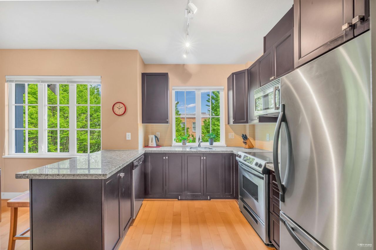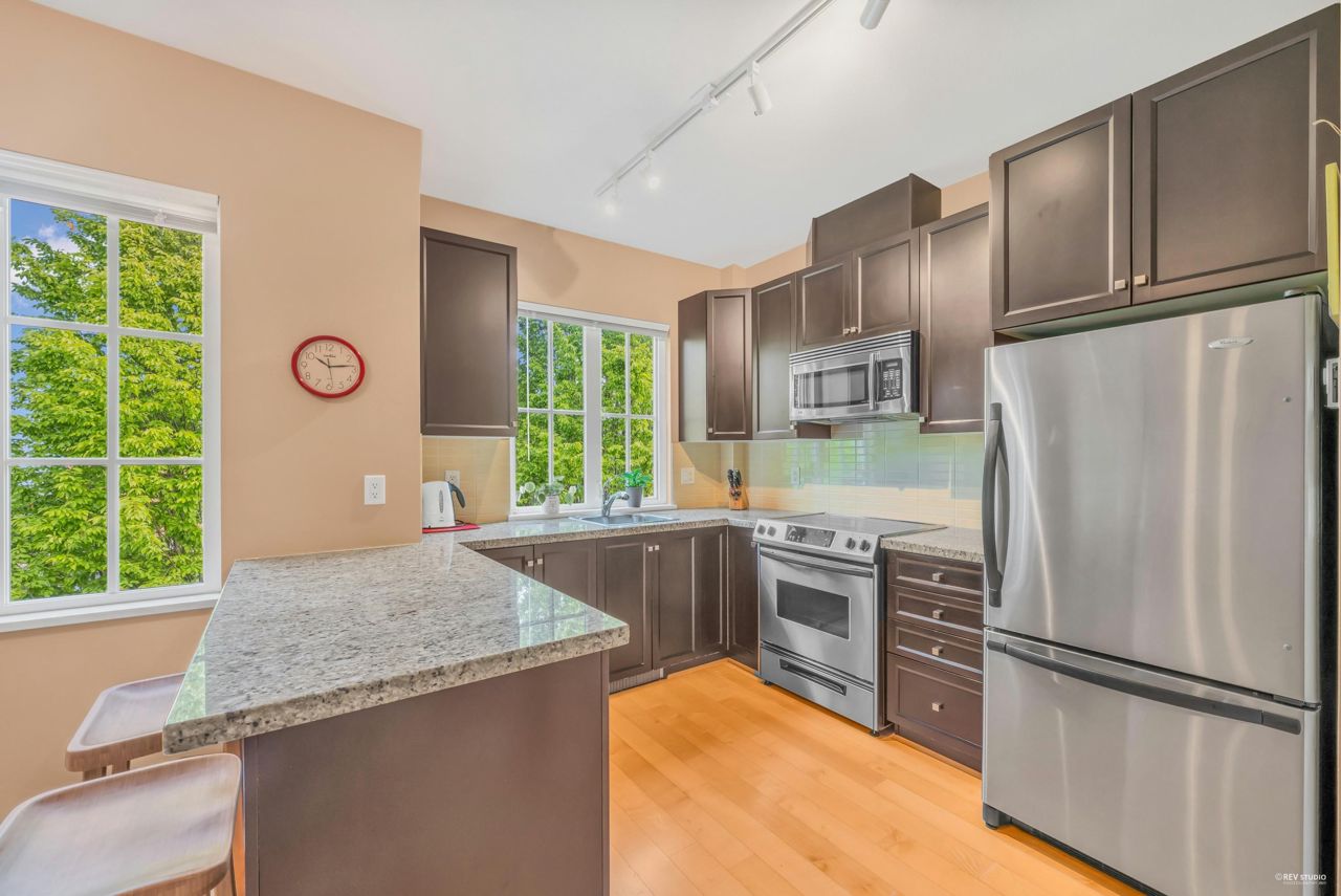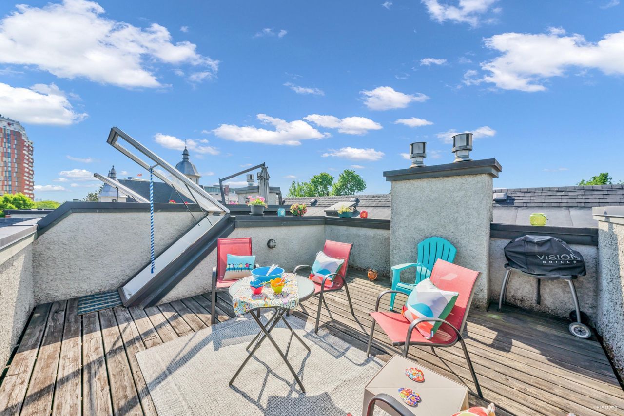 Rarely available 2 Bed. & Den townhouse at Maison in the heart of SOMA. Heritage style boutique complex, crafted by Formwerks. 1 of only 3 units with roof deck & view of North Shore Mountains & Downtown. Layout is great for privacy of your teenager or guests, as bedrooms are separated. Den next to the primary bedroom makes a lovely nursery. A cook's kitchen offers a winter mountain view. Extremely well cared for home. Small friendly strata, with excellent maintenance history. Ditch the car, and shop local - everything you need including future Skytrain station is a short walk away. Quiet treed street with dedicated bike route. A location to be envied. 2 pets OK (cats or dogs). All showings by appointment.