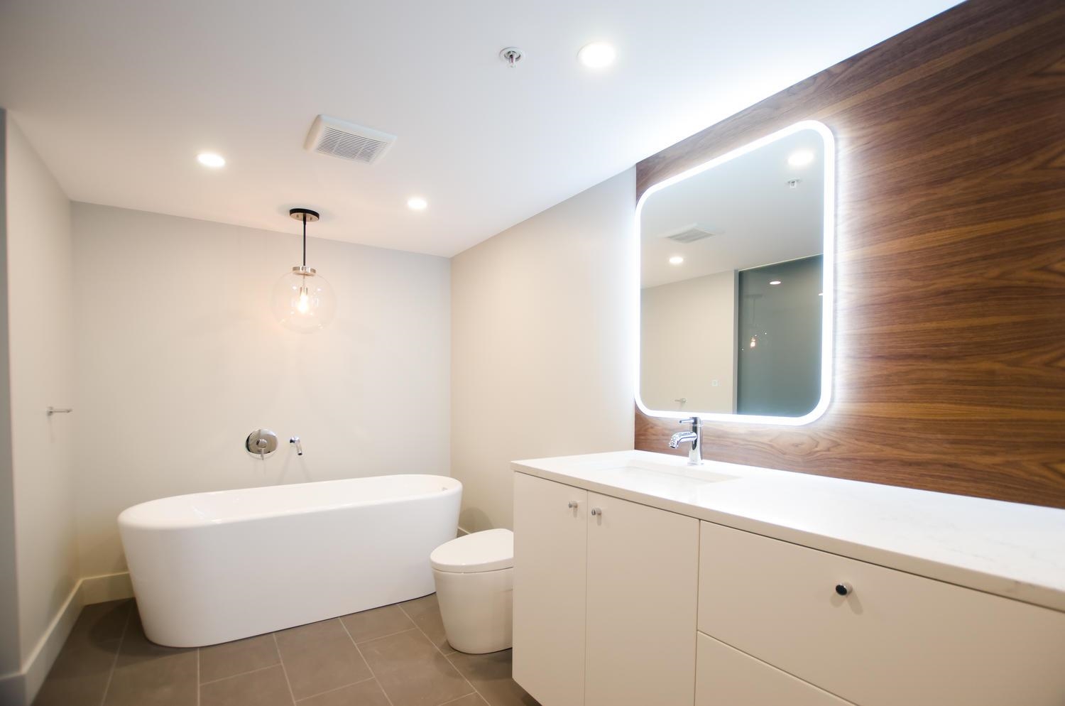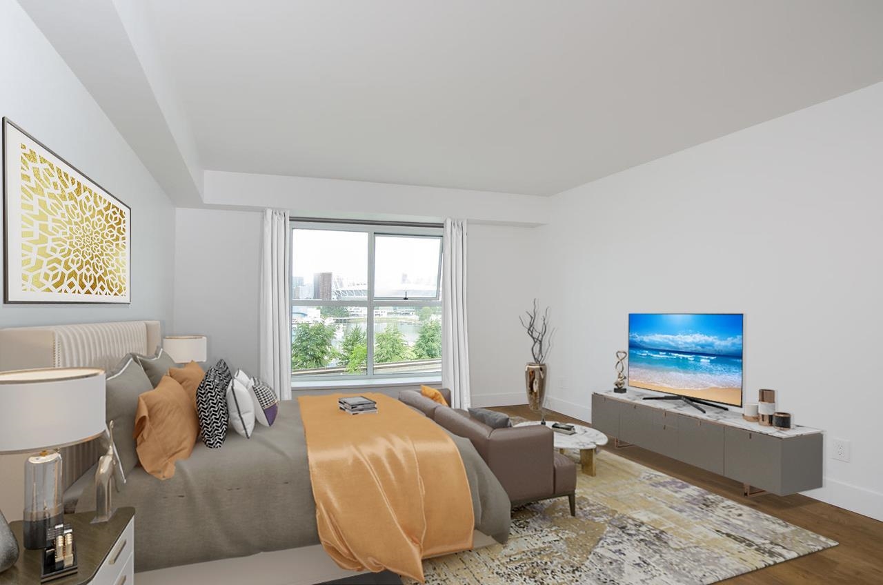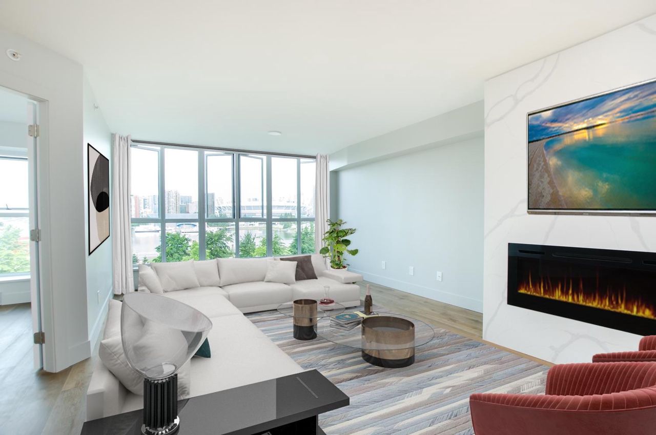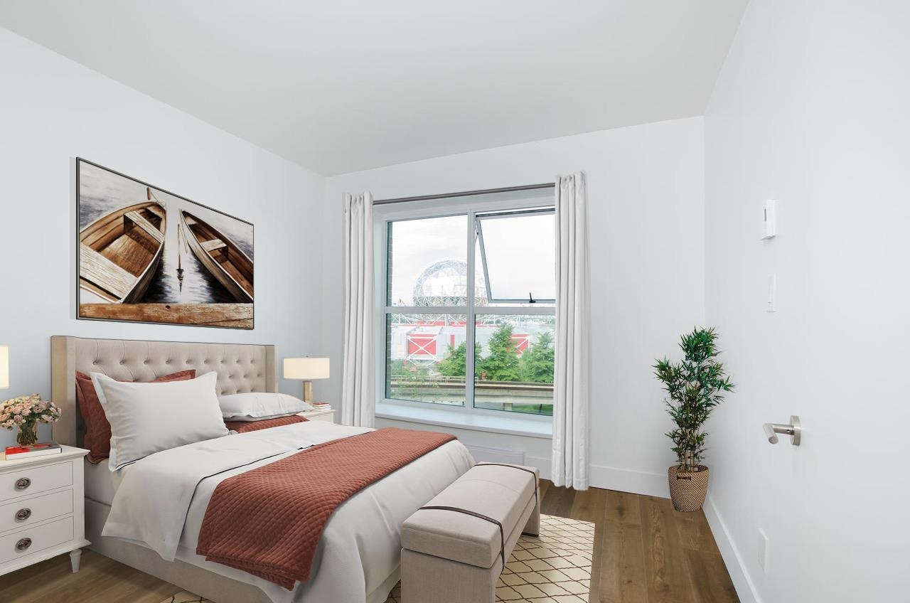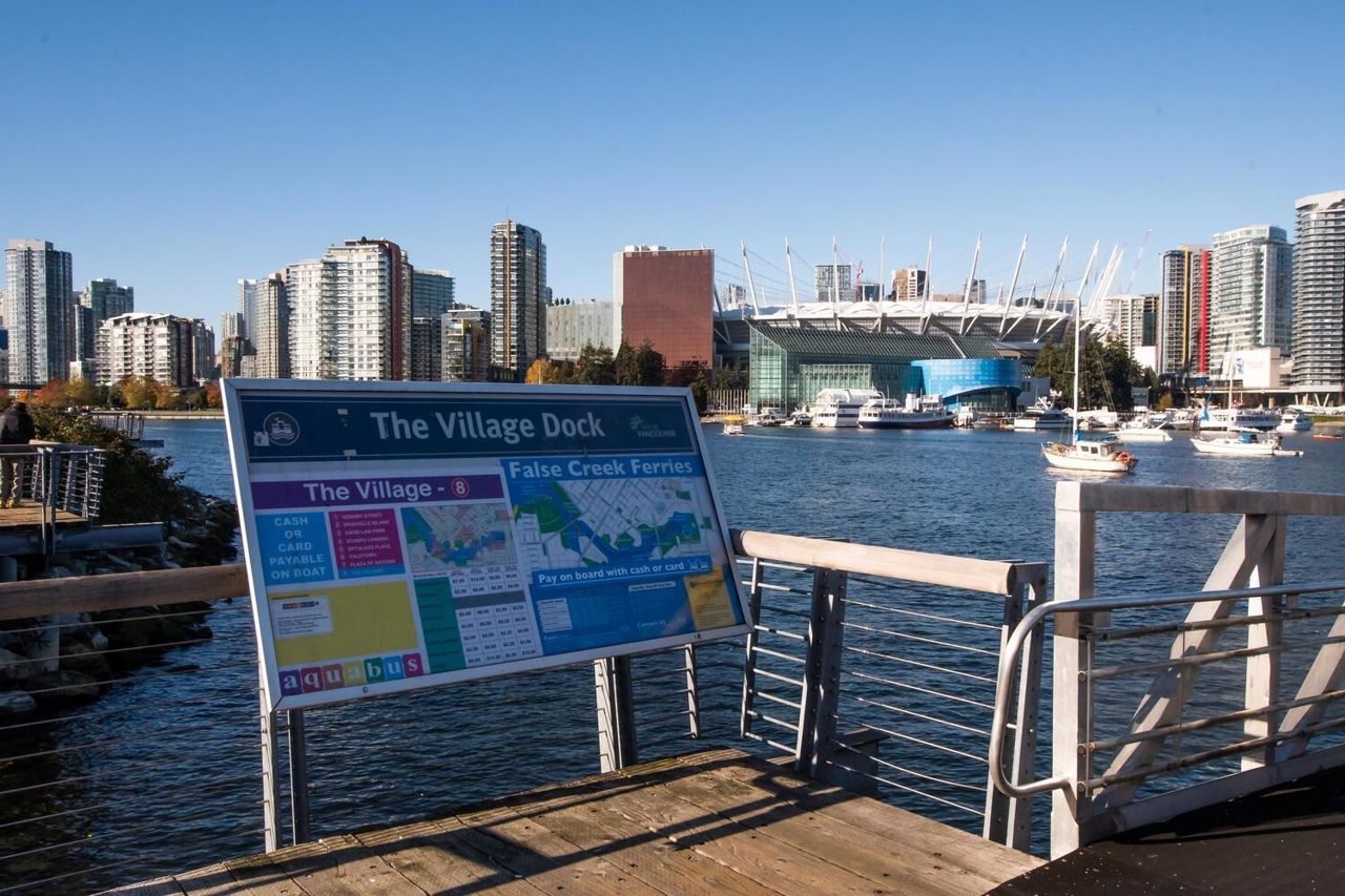 STUNNING FALSE CREEK WATER VIEWS ! Bright & Spacious 1,326 sq.ft. DESIGNER'S HOME FULLY RENOVATED featuring: Quartz surrounding Kitchen & Fireplace, Walnut Cabinets, Bloomberg/Whirlpool appliances, Wine Fridge, Porcelain Tiles surrounding Spa inspired Bathroom with RainShower/Bathtub/double sinks, Engineered Oak Hardwood Floor Throughout, Office Space with Custom Desk + wall closets. OLYMPIC VILLAGE Area, STEPS TO THE SEA WALL, built by BOSA with gym, pool, and jacuzzi. Walk to the Sky Train, Science World Park, shopping, restaurants, and coffee shops. No Pets. Call now to schedule a viewing !