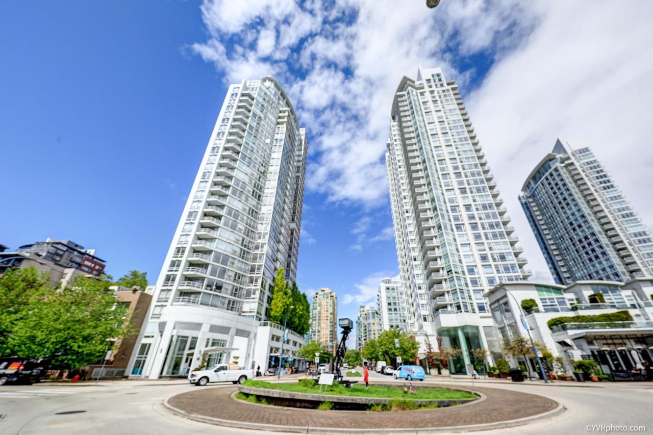WATERFRONT LIVING at “The Peninsula” built by Concord Pacific in the exclusive Yaletown Marinaside Crescent neighborhood. FOREVER VIEWS OF FALSE CREEK WATER & CITY. New paint, New wood floor. This spacious 1017sqft home offers 2 bed, 2 bath & a large den with windows that can be 3rd bedroom. Bright and open living room features floor-to-ceiling windows with incredible view of the marina. Master includes spacious built in closets, en-suite & west facing sun filled balcony. One parking and in-suit flex/storage. Excellent amenities includes 24 HR concierge, indoor pool, hot tub, sauna, fully equipped gym, alarm system, visitor parking and bike room. Steps away from seawall, parks, school, community centre & Sky Train, popular restaurants, Urban Fare, Roundhouse. Open Sat & Sun Jun 3, 4 2-4pm