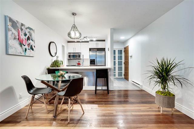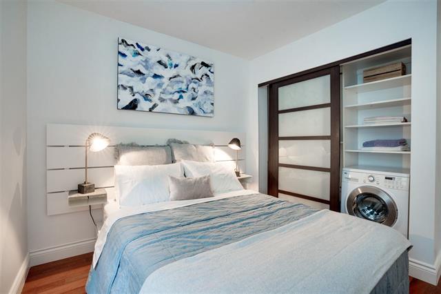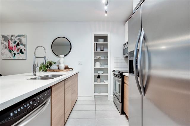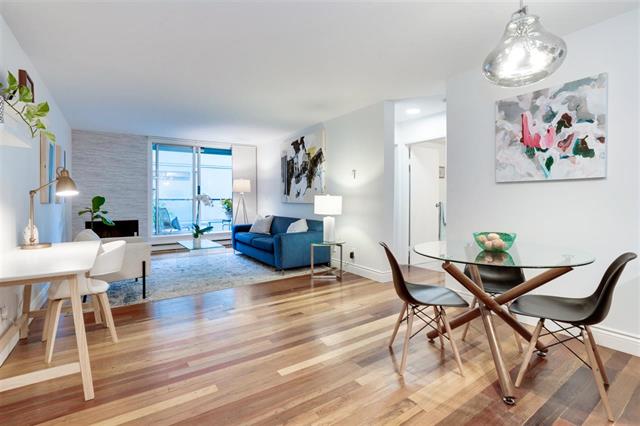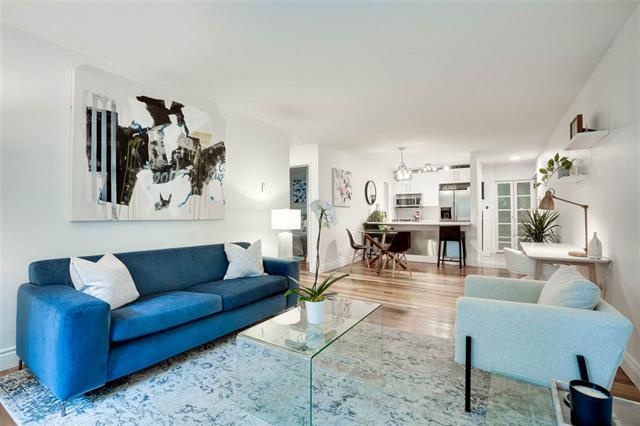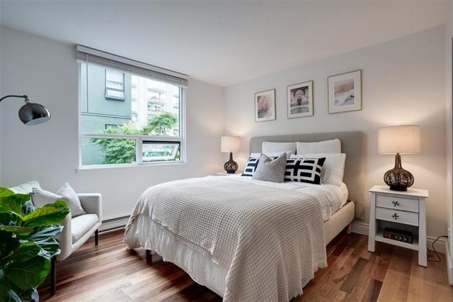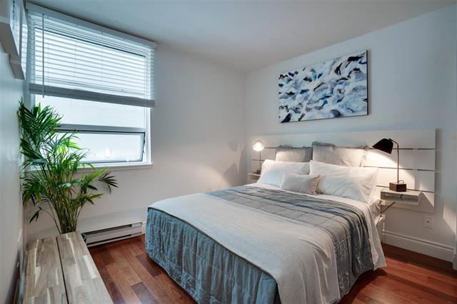 This beautiful and bright West End condo has it all and is the perfect place to call home.Located in a well-run strata building on a quiet street steps from Sunset Beach with 95 WALK score.Updated unit w/ stunning reclaimed hardwood floors,an open kitchen,and stone countertops.The very spacious layout provides room for full-size furniture and a woodburning fireplace, perfect for cool evenings.The second bedroom comfortably fits a queen bed or doubles as a nursery/office space. The south facing balcony with room for BBQ and patio furniture, extra large easy access storage locker, and privileged parking spot location make this suite unique. This building has a breezeway with a communal garden and grapevines that contribute to the gated & secure surroundings.