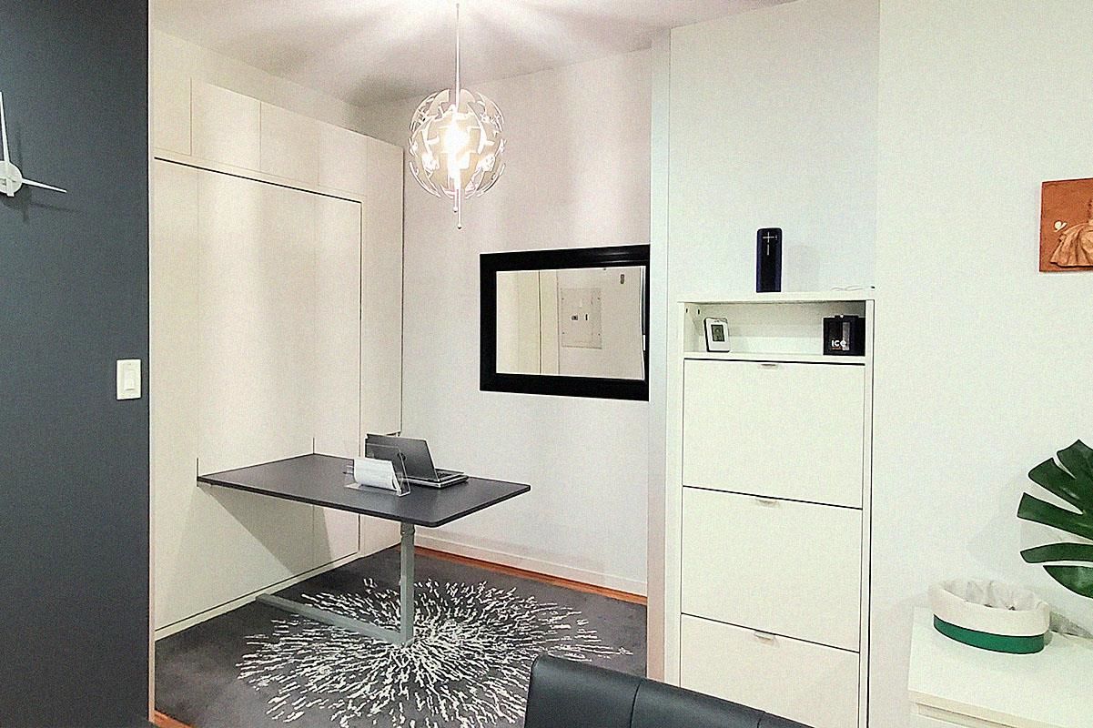 High ceiling, open concept for this beautiful one bedroom & den in move-in condition. Hardwood floor, granite counters, modern appliances and air conditioning. Den can be used as a second bedroom with built-in murphy bed and desk. The unit overlooks the beautiful strata park. Prime Coal Harbour location, walk to park, seawall, shopping and restaurant areas. This is the iconic Qube building which was rebuilt and converted from an office to a residential building in 2006. Unique features include 4 elevators, storage room on the same floor, on-site concierge and more. Excellent live-in or investment property. Show & sell.