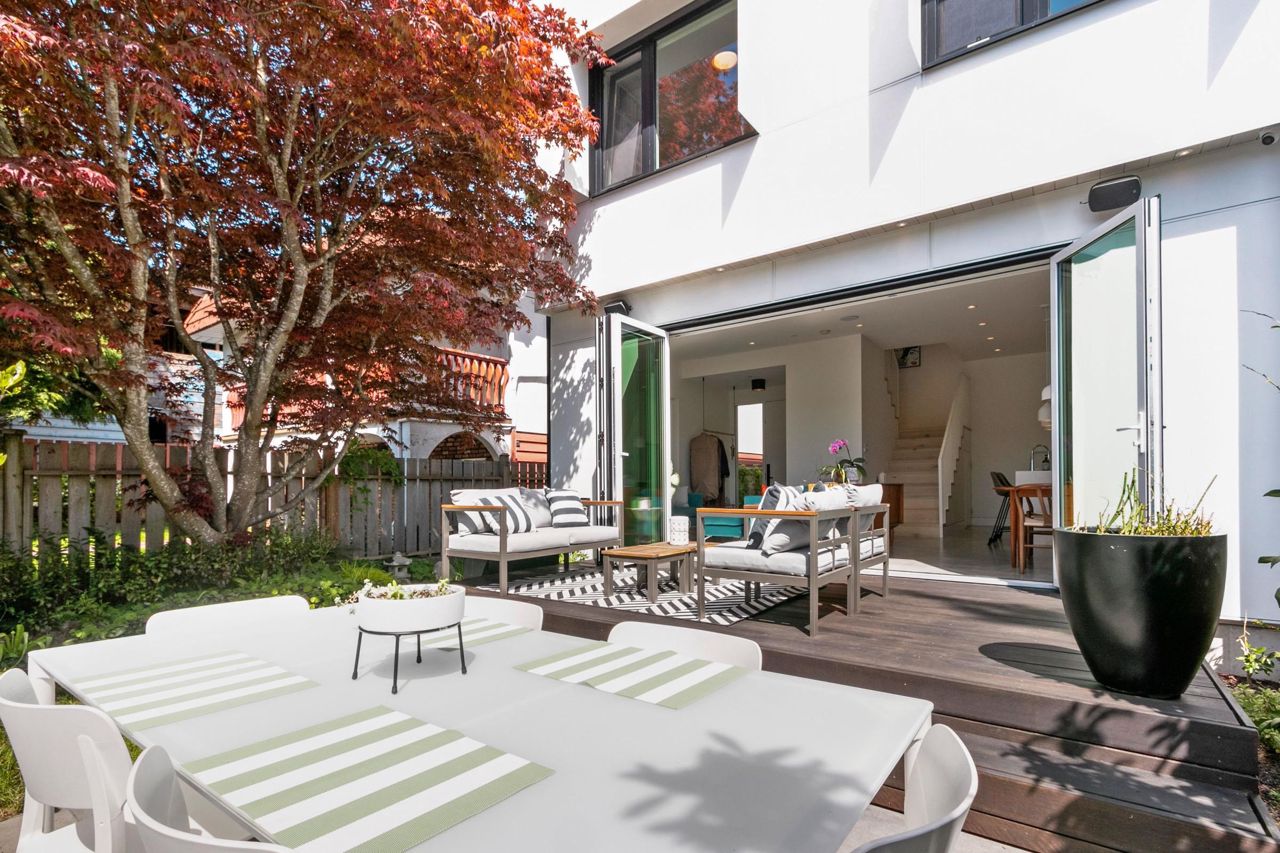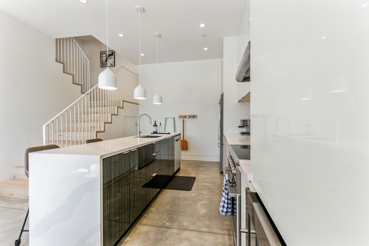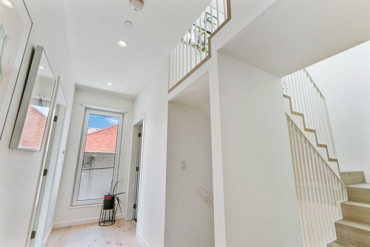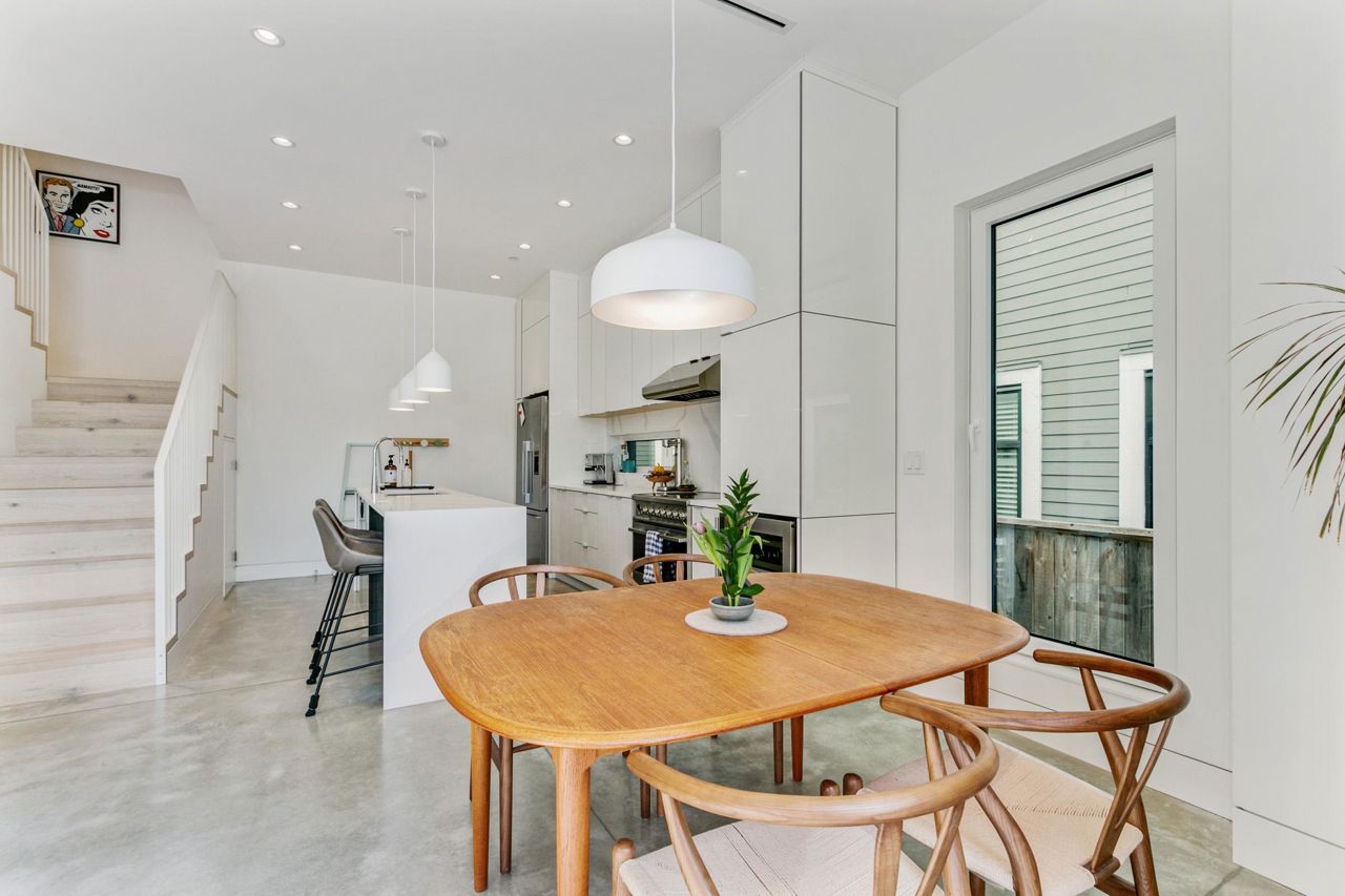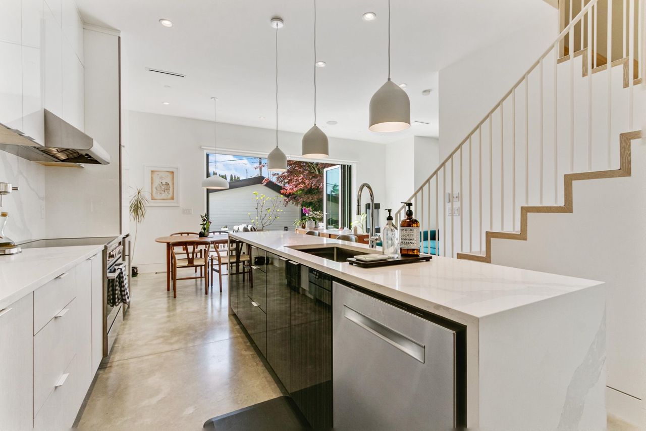 Fully loaded custom designed REAR HALF DUPLEX with bright SOUTH BACK YARD generous decking and lush landscape. Sophisticated designed home offers SCANDINAVIAN inspired MODERN interiors. The main floor showcases 10ft ceilings, 12ft custom accordion sliding door leading to deck, exquisite POLISHED CONCRETE FLOORS, a WATERFALL STAIRCASE complete with CUSTOM HANDMADE interior railings. Kitchen with custom cabinetry, FISHER PAYKEL appliances, an ENTERTAINMENT SIZED island and a WATERFALL COUNTERTOP. Other features include high efficiency European tilt & turn windows and motorized skylight. ARCHITECTURALLY DESIGNED landscaping offers a well thought out LOW MAINTENANCE/DROUGHT TOLERANT design with mature trees and edible landscape. Garage with EV charging. OPEN HOUSE MAY 20-21, 2-4PM.