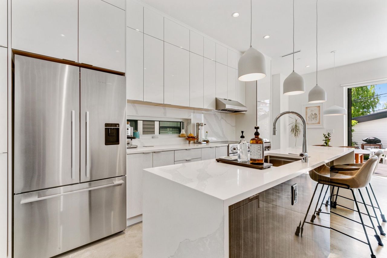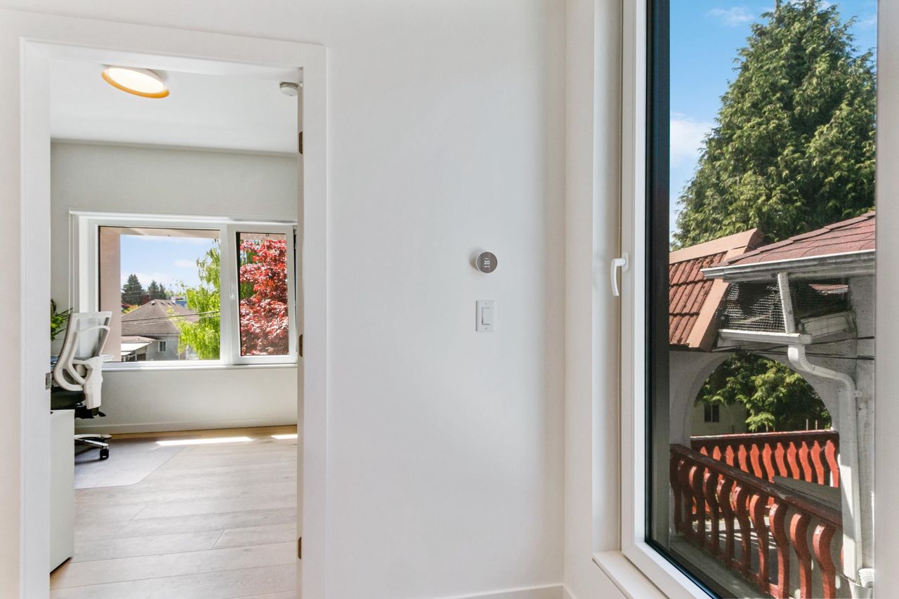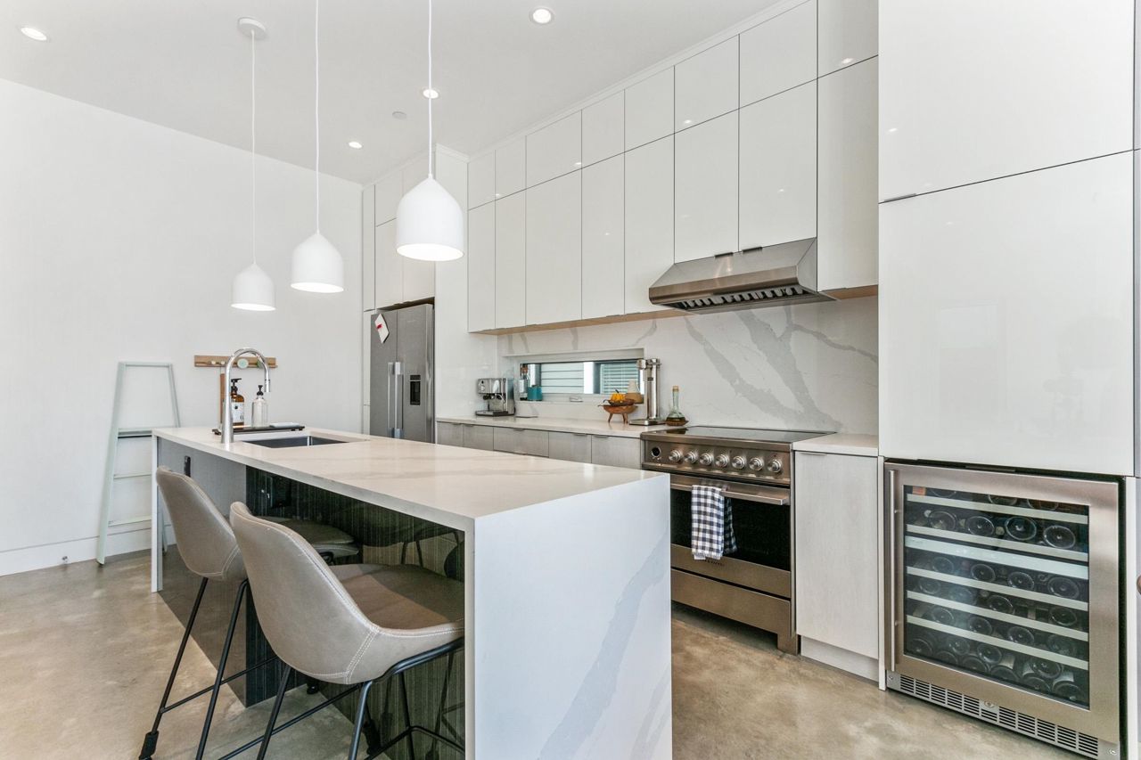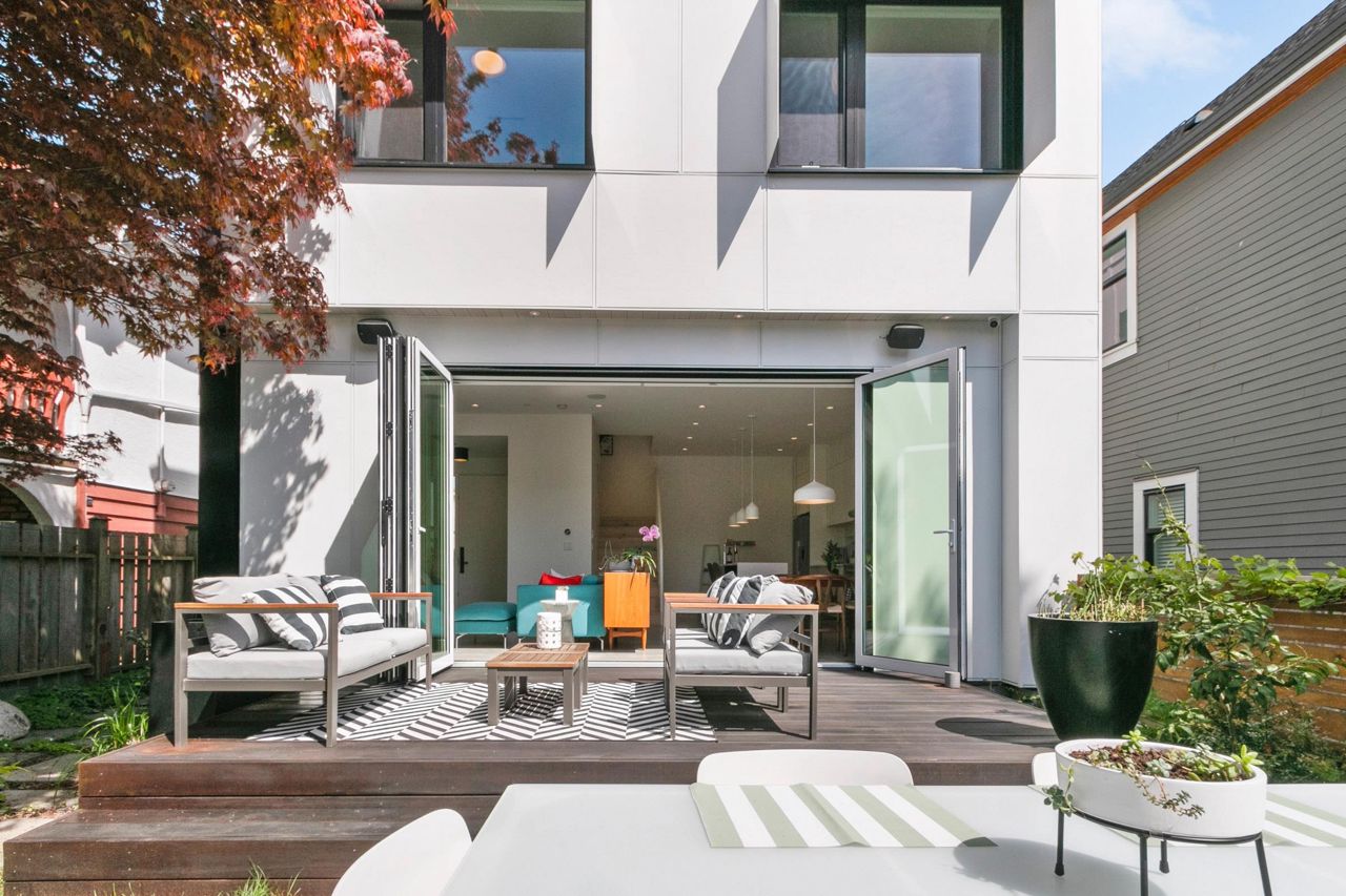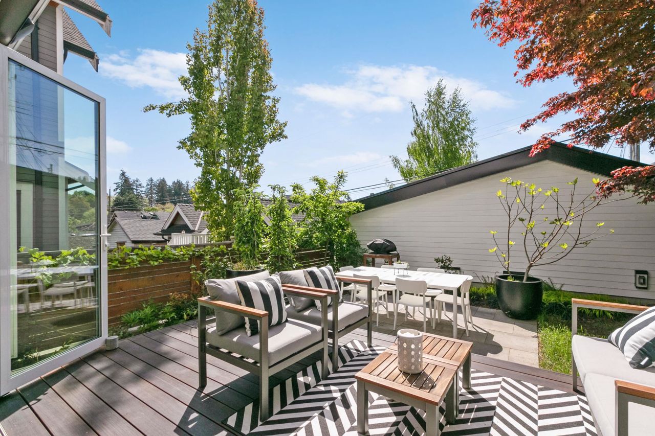 Fully loaded custom designed REAR HALF DUPLEX with bright SOUTH BACK YARD generous decking and lush landscape. Sophisticated designed home offers SCANDINAVIAN inspired MODERN interiors. The main floor showcases 10ft ceilings, 12ft custom accordion sliding door leading to deck, exquisite POLISHED CONCRETE FLOORS, a WATERFALL STAIRCASE complete with CUSTOM HANDMADE interior railings. Kitchen with custom cabinetry, FISHER PAYKEL appliances, an ENTERTAINMENT SIZED island and a WATERFALL COUNTERTOP. Other features include high efficiency European tilt & turn windows and motorized skylight. ARCHITECTURALLY DESIGNED landscaping offers a well thought out LOW MAINTENANCE/DROUGHT TOLERANT design with mature trees and edible landscape. Garage with EV charging. OPEN HOUSE MAY 20-21, 2-4PM.