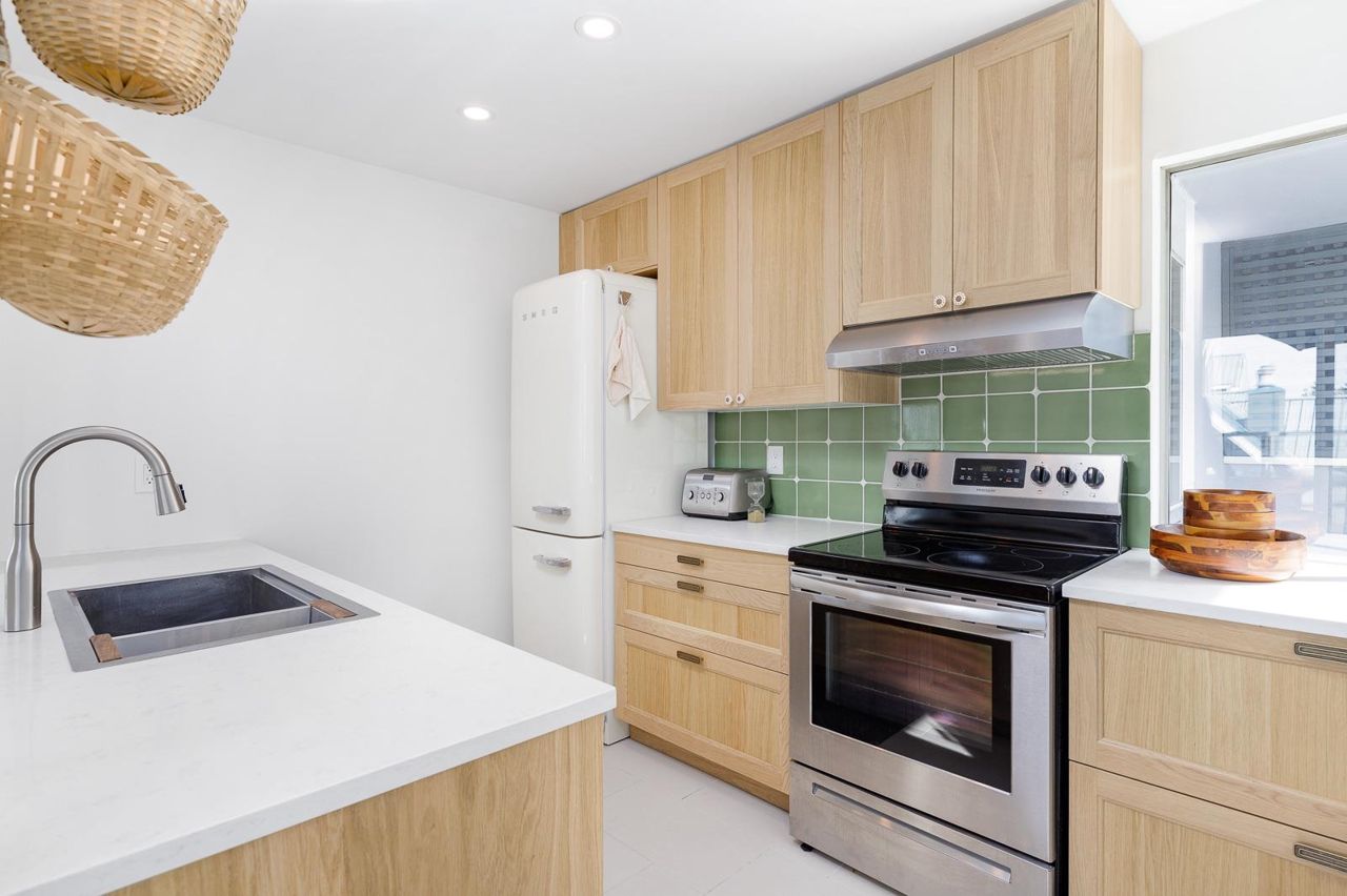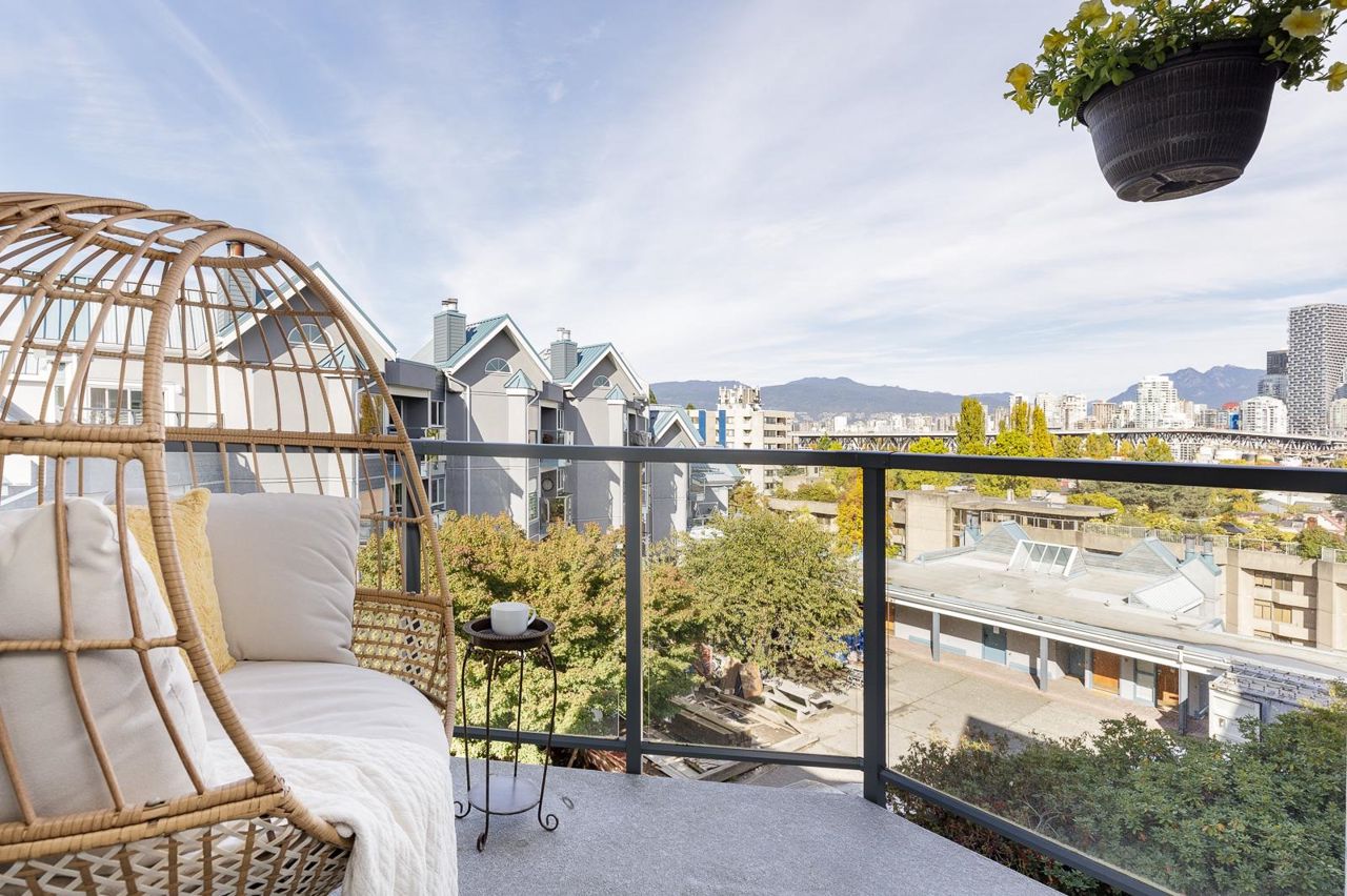 Discover your ideal urban sanctuary in this chic 800 sqft condo, perfectly situated just moments from Granville Island. This residence epitomizes modern luxury, meticulously crafted with quartz countertops, porcelain tiles, and rich oak cabinetry, all illuminated by sophisticated lighting upgrades. The space is not just about aesthetics but functionality, tailored for your active lifestyle. Enjoy the stunning city skyline and North Shore Mountains views from your two private patios—perfect settings for socializing and relaxation. Includes 1 parking, 1 storage and is pet-friendly.