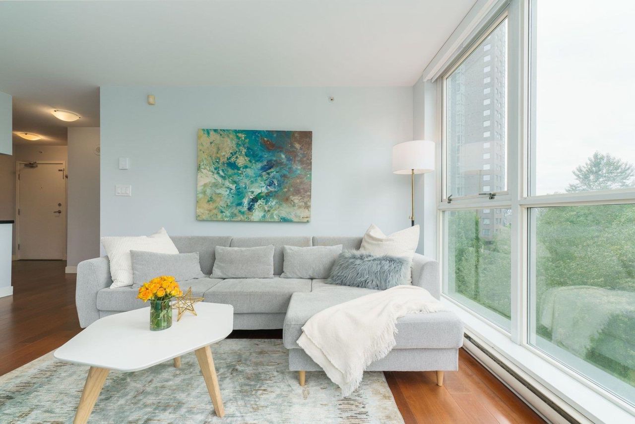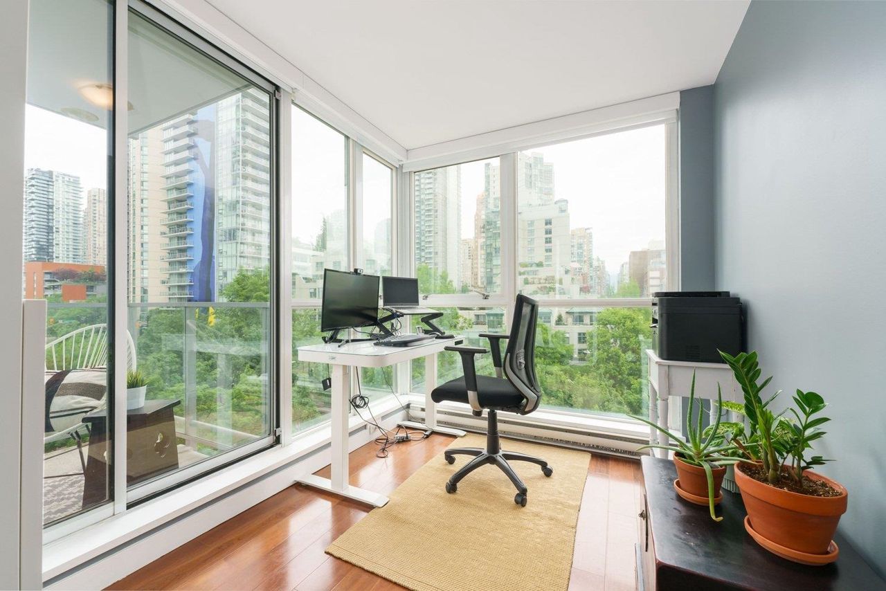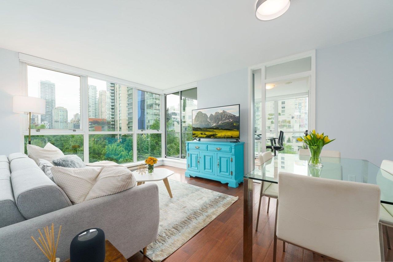 Bright 1 Bedroom Corner Unit at WEST ONE featuring; LARGE Den (7’3 x 10’8) + Pantry + Parking + large 5x6 Storage Locker, efficient Floor Plan w/ floor to ceiling windows & granite countertops. Unit updates include; S/S appliances, new blinds, bedroom carpet & scraped ceilings. 24 Hour Concierge & direct building access to the amazing Club Viva; Indoor Lap Pool, Hot Tub, Steam Room, Squash Courts, Pool Table, Ping Pong, Gym,Theatre, Media Room, Party Room & Guest Suite. Located steps to the Seawall, David Lam Park, Skytrain, Yaletown restaurants & shopping! Pets & Rentals Allowed.