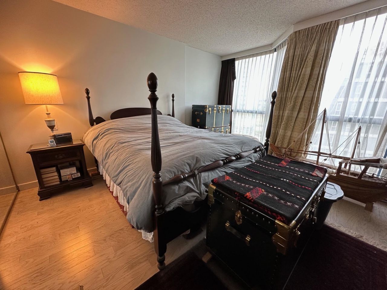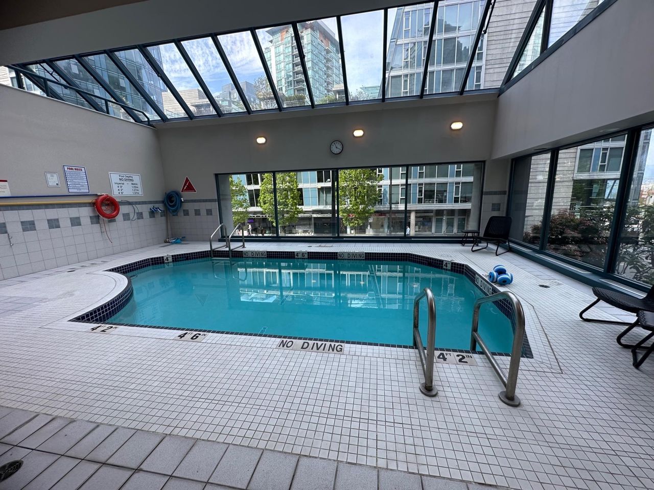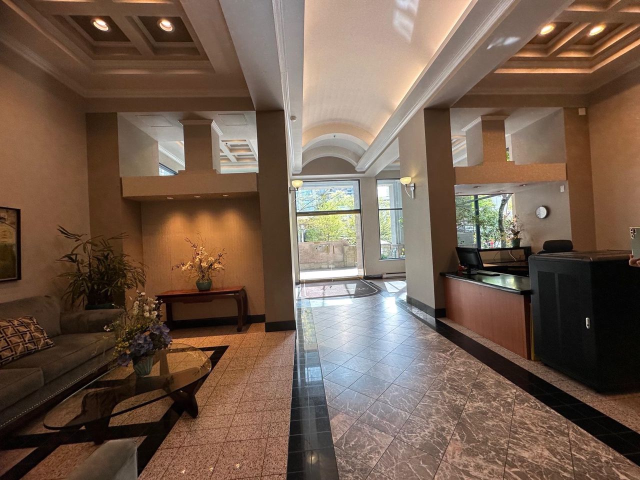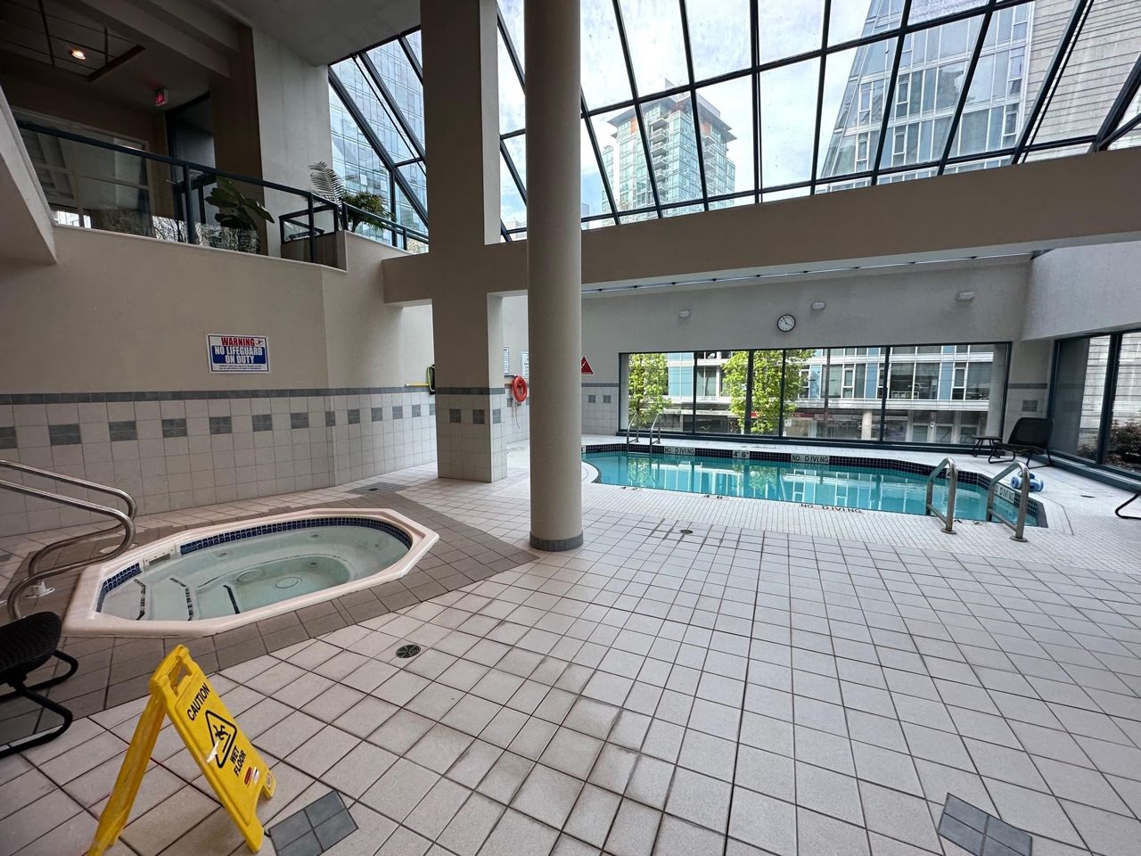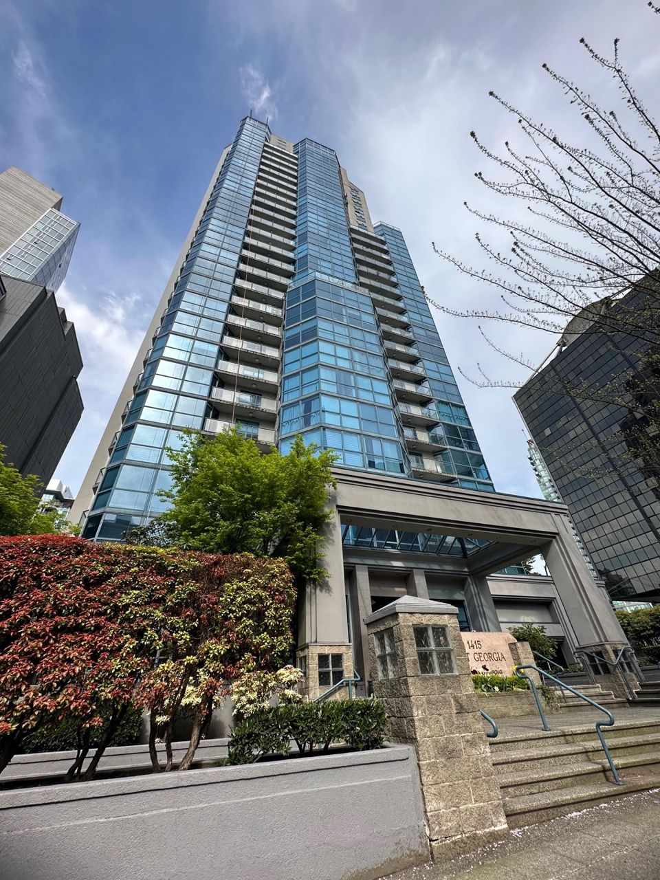 Welcome to this spectacular 2 bedroom unit at Palais Georgia with ocean views! Faces the quite side of the street. This unique unit comes with 2 parking stalls. Spacious in-suite storage room. Amenities include gym, indoor swimming pool, hot tub, party room, conference room and library. Prime location, only steps away from Stanley Park, Coal Harbor and Downtown restaurants and shopping. All measurements are approximate, buyer should verify if deemed important. First showing on May 25, 2023. Offers will be reviewed on a first-come-first-served basis after the first showing.