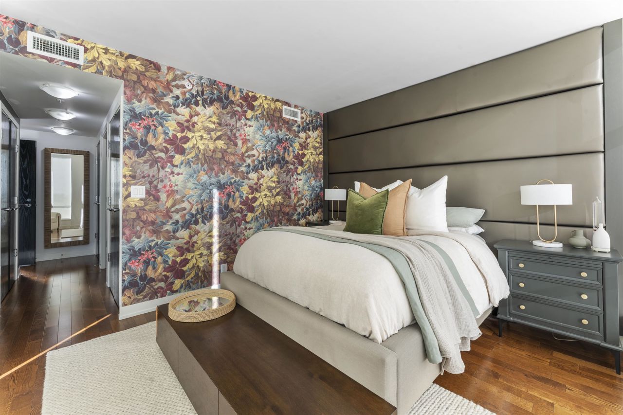 Fixtures RemovedMurphy bed, chandelier & light, master bedroom wall decor