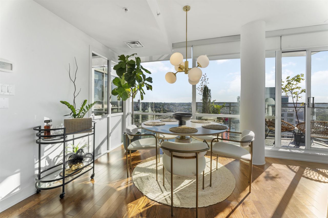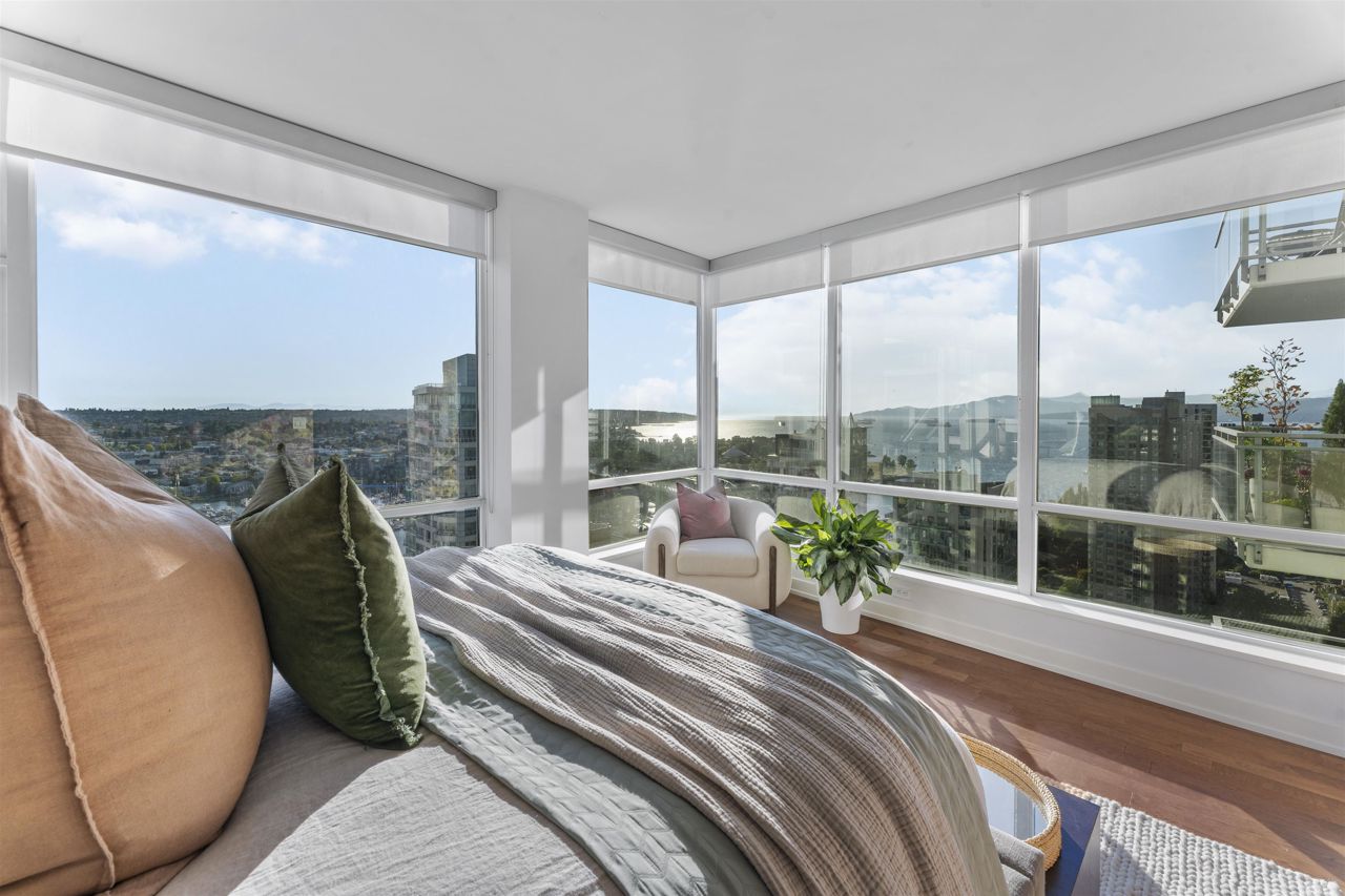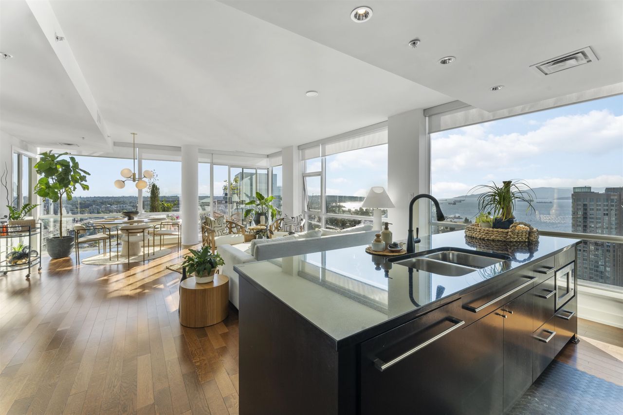 A rarely available dream condo at the award-winning Pomaria. Stunning 2 Bed + Den/2 Bathroom 1400 sq/ft gem of a home with breathtaking views of English Bay, False Creek, Downtown Vancouver and the Mountains as your backdrop. Thoughtfully designed corner-unit with a large entertainment area for living/dining. Cook your favourite meals while enjoying an incredible sunset with an open concept kitchen equipped with an expansive kitchen island, walk-in pantry, and high-end appliances. Comes with Geothermal heating/cooling, engineered hardwood flooring, 2 parking spaces and 1 storage locker. Gym, Concierge, Sauna/Steam and Garden as amenities. Step outside your front door to Fresh Street Market, House Concepts Gym, restaurants, parks and the seawall!