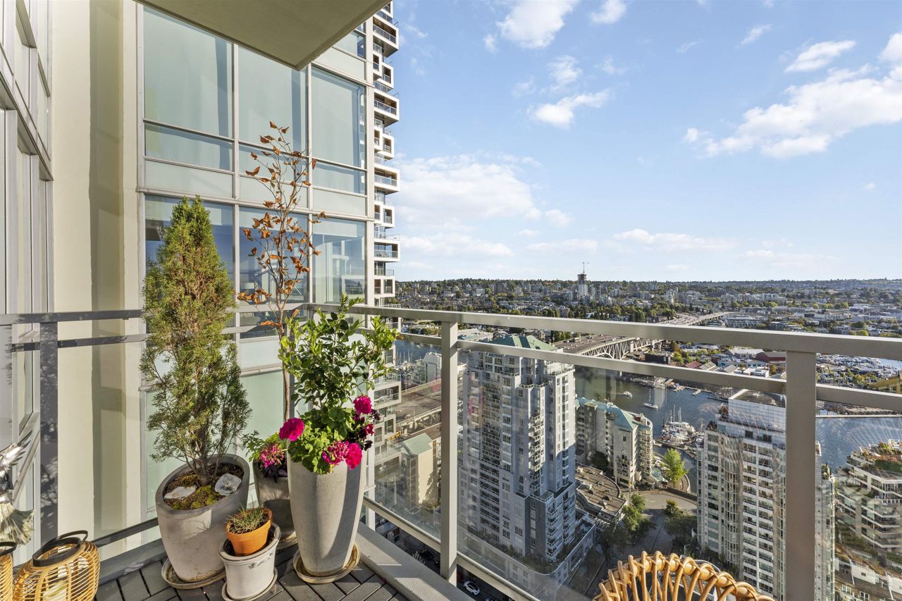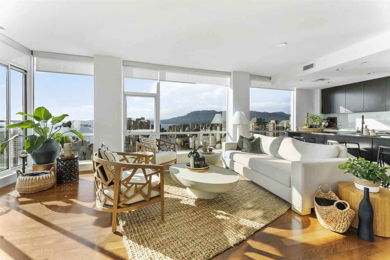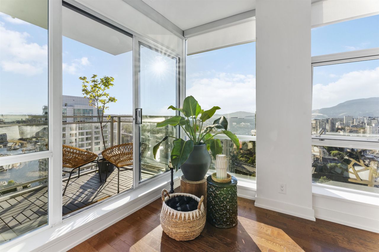 A rarely available dream condo at the award-winning Pomaria. Stunning 2 Bed + Den/2 Bathroom 1400 sq/ft gem of a home with breathtaking views of English Bay, False Creek, Downtown Vancouver and the Mountains as your backdrop. Thoughtfully designed corner-unit with a large entertainment area for living/dining. Cook your favourite meals while enjoying an incredible sunset with an open concept kitchen equipped with an expansive kitchen island, walk-in pantry, and high-end appliances. Comes with Geothermal heating/cooling, engineered hardwood flooring, 2 parking spaces and 1 storage locker. Gym, Concierge, Sauna/Steam and Garden as amenities. Step outside your front door to Fresh Street Market, House Concepts Gym, restaurants, parks and the seawall!