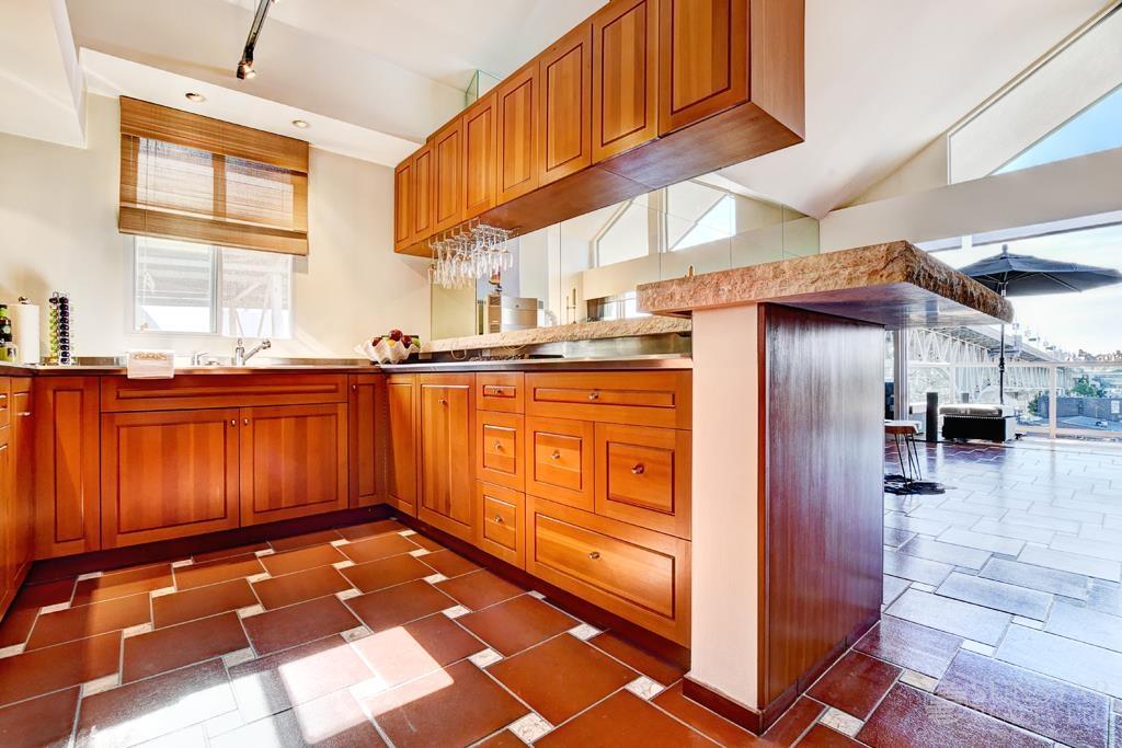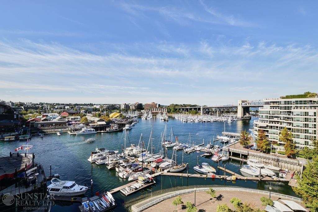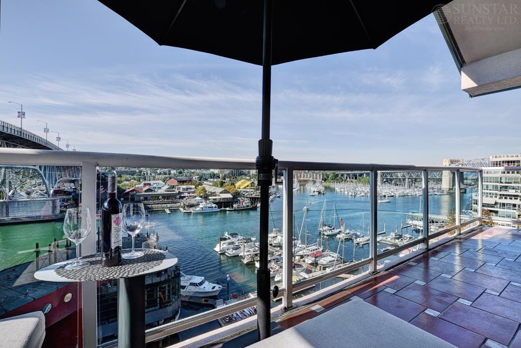 Stunning waterfront penthouse with breathtaking views of False Creek, bridges, and Granville Island. Renovated with elegance and uniqueness, this 1380sf condo features radiant heating, marble-infused stone tiles, and cherry hardwood floors. The open kitchen boasts top-notch appliances and a spacious stone countertop. The living room offers a 19-foot vaulted ceiling, a cozy fireplace, and bi-folding doors leading to a large balcony. The luxurious main bedroom has an ensuite bathroom with marble accents, while the second bedroom doubles as an office and entertainment space. With 24-hour concierge and world-class amenities, this is an exceptional luxury penthouse in the coveted Beach Crescent neighborhood. Minimum 6-month rental. (id:22211)