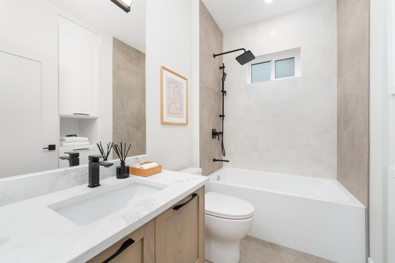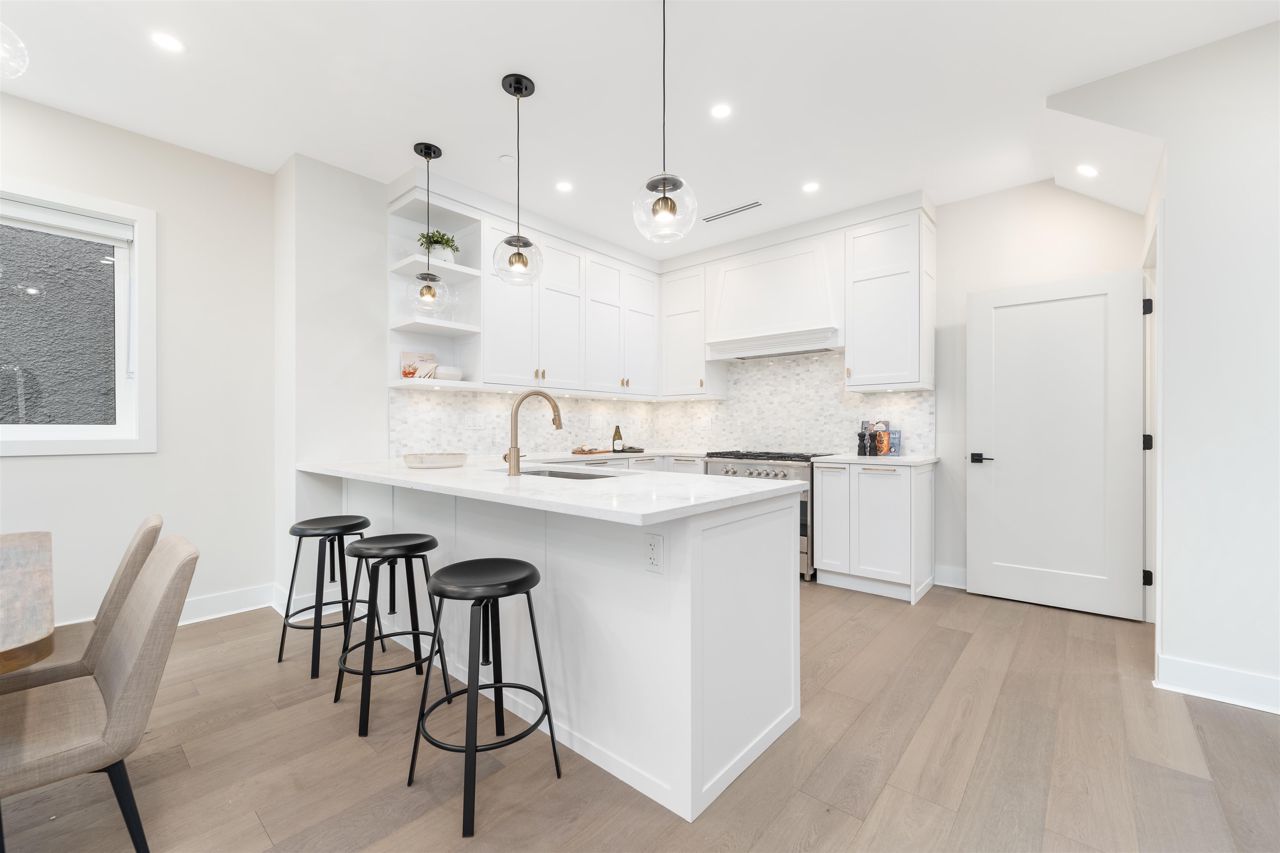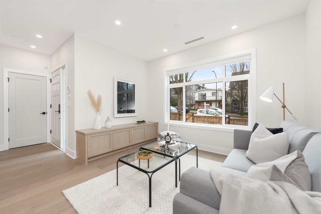 Welcome to 1653 East Georgia, this home is Zoned in RM-4 allowing an EXTRA LARGE duplex which offers a modern touch with a ever lasting classic feel. From brushed brass fixtures to white speckled counter tops, a seamless back splash and a collection of high-end appliances from Fisher & Paykel this kitchen is everything anyone could ever ask for. Enjoy your coffee, tea or wine from your spacious living room looking out onto your beautiful private front lawn.3 BEDROOMS ALL ON THE SECOND FLOOR and BASEMENT has REC ROOM downstairs that can be used as a home theater, office, guest room or potential suite. Much desired restaurants, schools, public transit and shopping are located within walking distance.