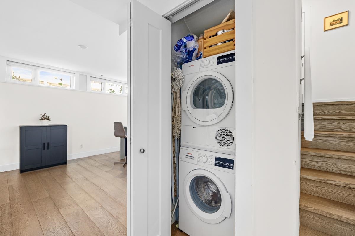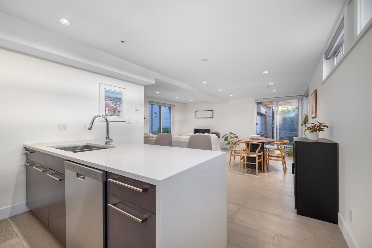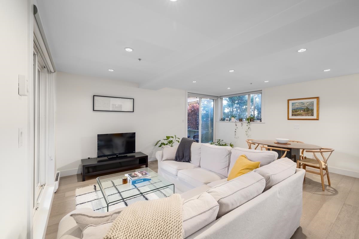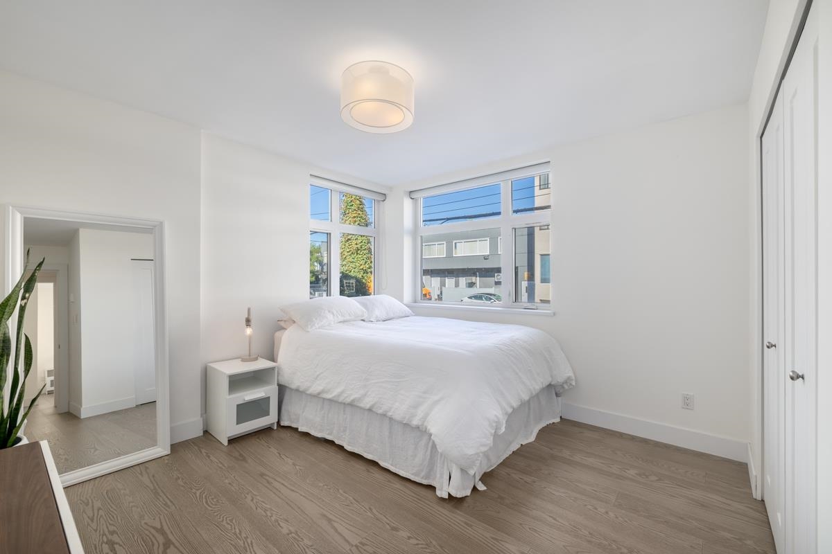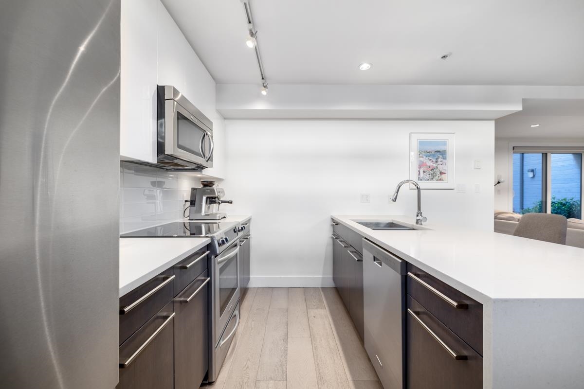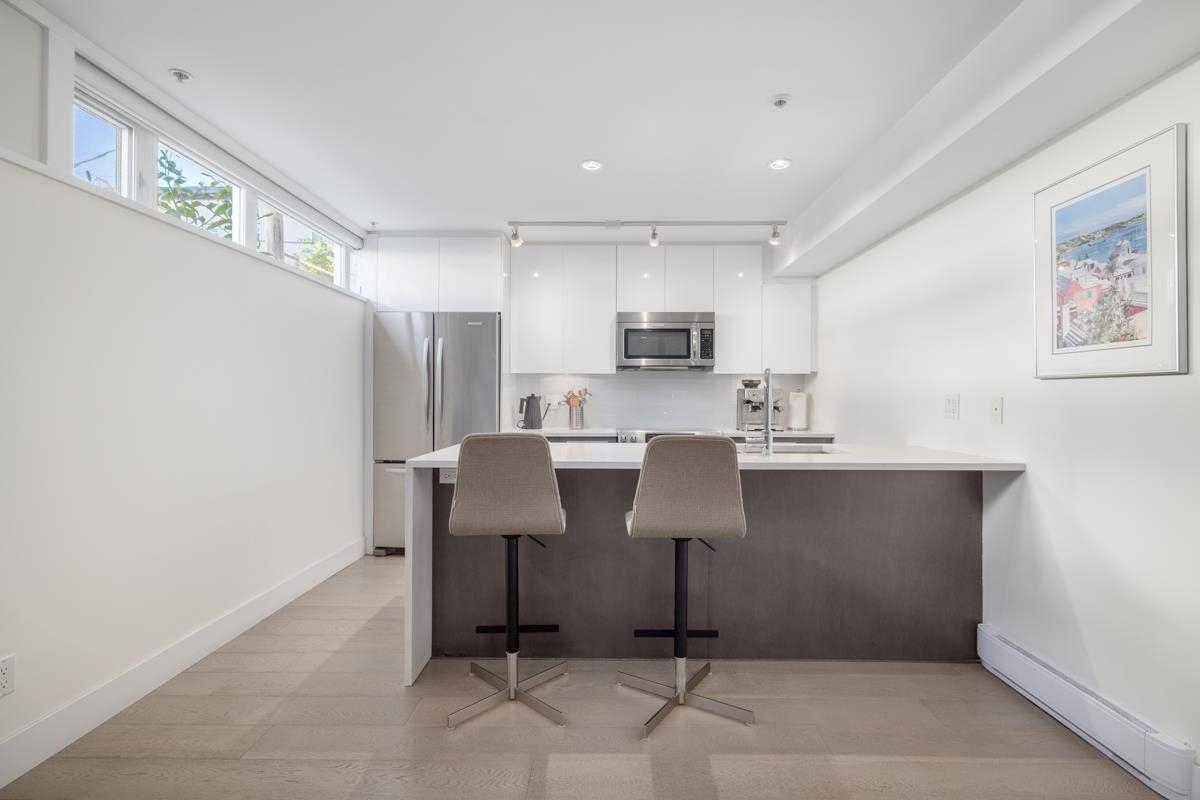 This location can't be beat - just steps to Commercial Drive, where you'll find fantastic restaurants, bakeries, shops, parks, recreation and more- all within minutes. Walk through the open-air courtyard to this beautiful 2 bed/1 bath townhouse. Featuring an open concept kitchen with SS appliances, counter seating at the extra-long island, and clerestory windows, adjacent to a large living/dining space, in-suite laundry, plenty of storage and 2 bright & generous sized bedrooms and full bath above. This unit comes with 1 secured parking stall, bike room + workshop. Unfurnished $3,550 utilities not included or Available furnished $3,795 with Utilities and Basic Internet included.