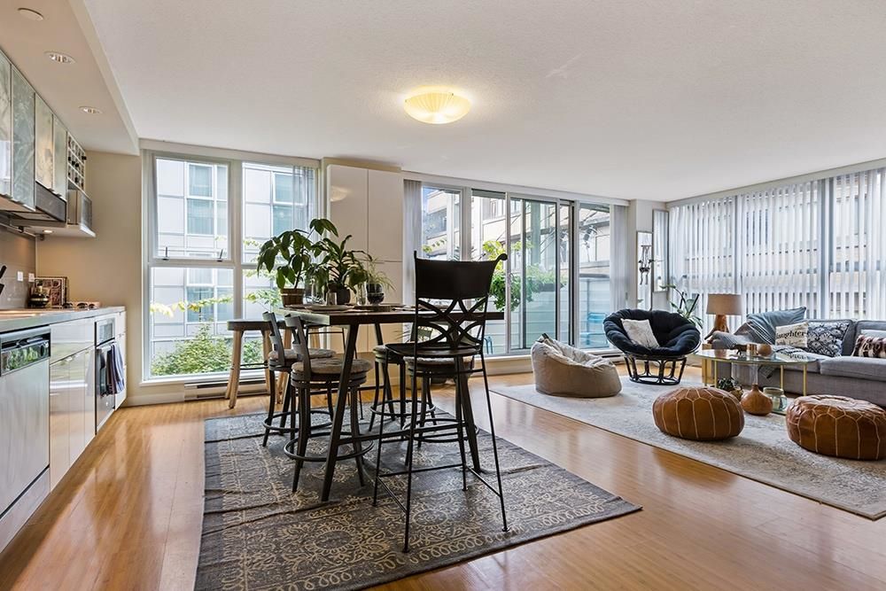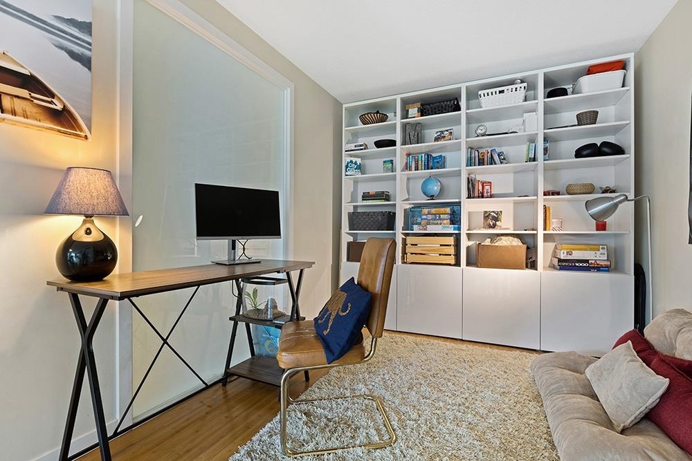 Almost 1000 sq/ft! A 2 bedroom plus LARGE DEN, in SMART building built by Concord Pacific in Gastown. You will be impressed w/this spacious corner home. Wide-open living, perfect for having the gang over for dinner or drinks before you head out to one of the many hot restaurants or bars in the area. You'll love the the fresh air breezeway entrance-like your very own home & how the floor to ceiling corner windows capture natural light.The cozy den with built-in shelving is perfect for working from home or an extra place for guests to stay. This unit faces the quiet courtyard side of the building. Centrally located, steps to seawall & crab park w/beautiful views. Comes with 1 parking spot plus storage locker. There is a bike room & gym in the building plus pets & rentals allowed.