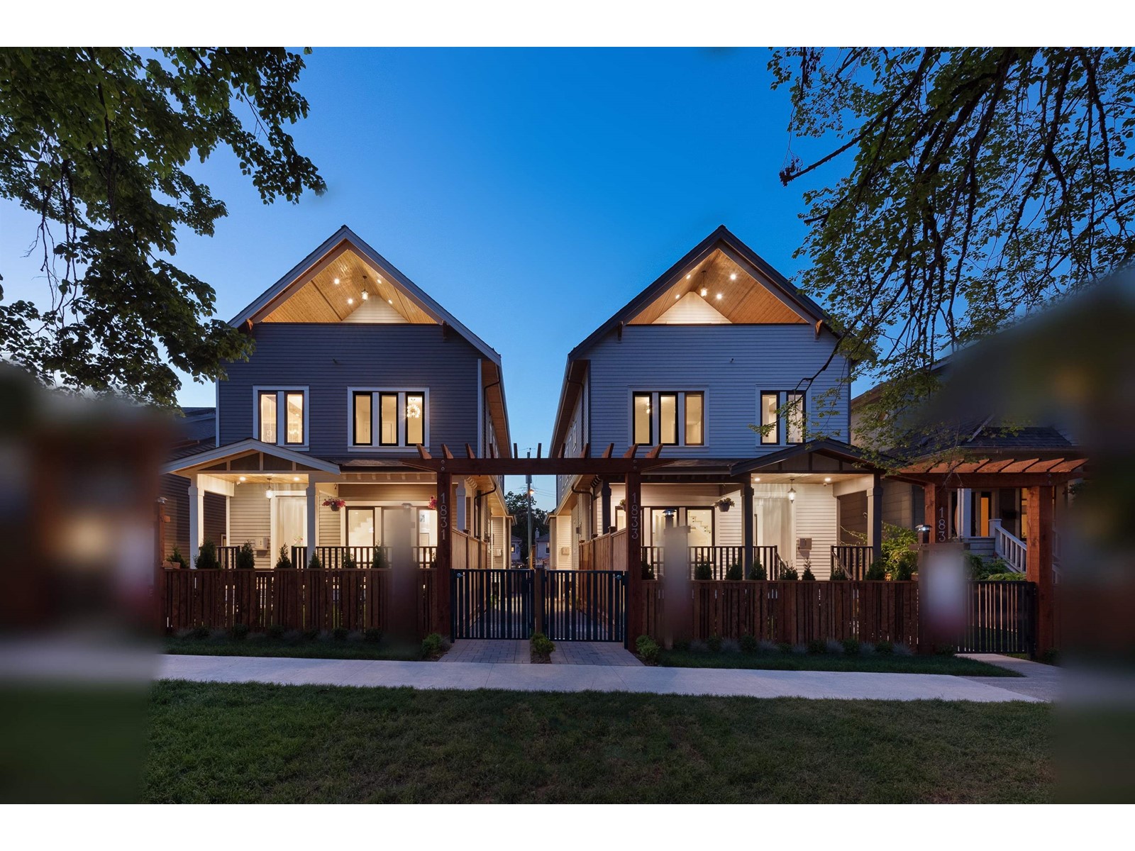 Heritage Style Duplex. Layout maximized the sq ft. Rooms are spacious with ample light. Open plan living room has a cozy gas fireplace, dining, kitchen (large island), powder room, and more! Big storage in the crawl space. The 2nd floor has 3 big bedrooms, all of which have big closets. Garage is easy to access. Basement floor has big bed/office with its own bath, custom storage, and covered landing. Also has separate entry. Private yard and amenities (restaurants, grocery stores, schools, community centres, etc.) close by. Includes AC, high efficiency boiler, security, and more! Beautiful and calming lake (Trout Lake) is just steps away. The SkyTrain station is just as close. OPEN HOUSE: o JUNE 1 - 6pm to 8pm(Thursday) o JUNE 3 - 2pm to 4pm(Saturday) o JUNE 4 - 2pm to 4pm(Sunday) (id:22211)
