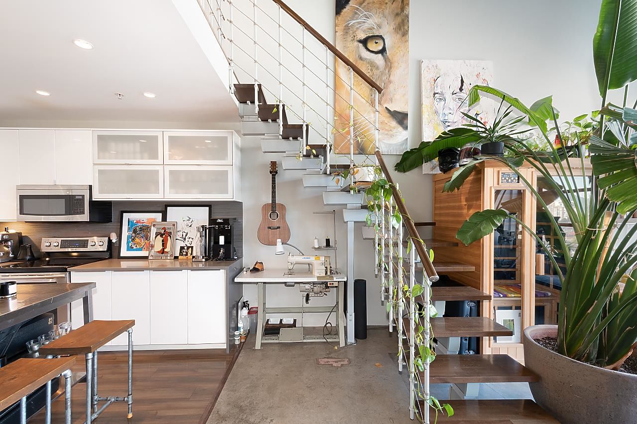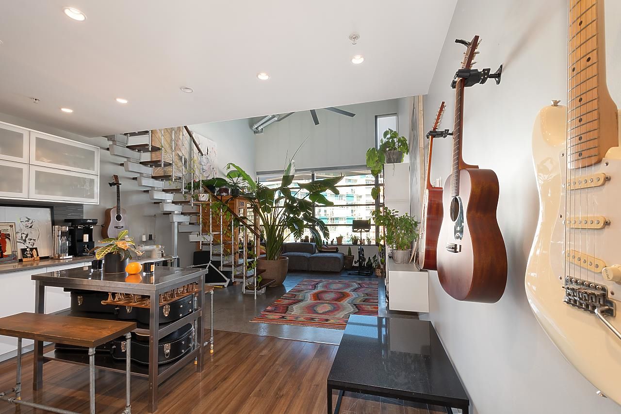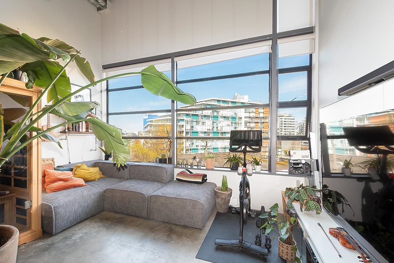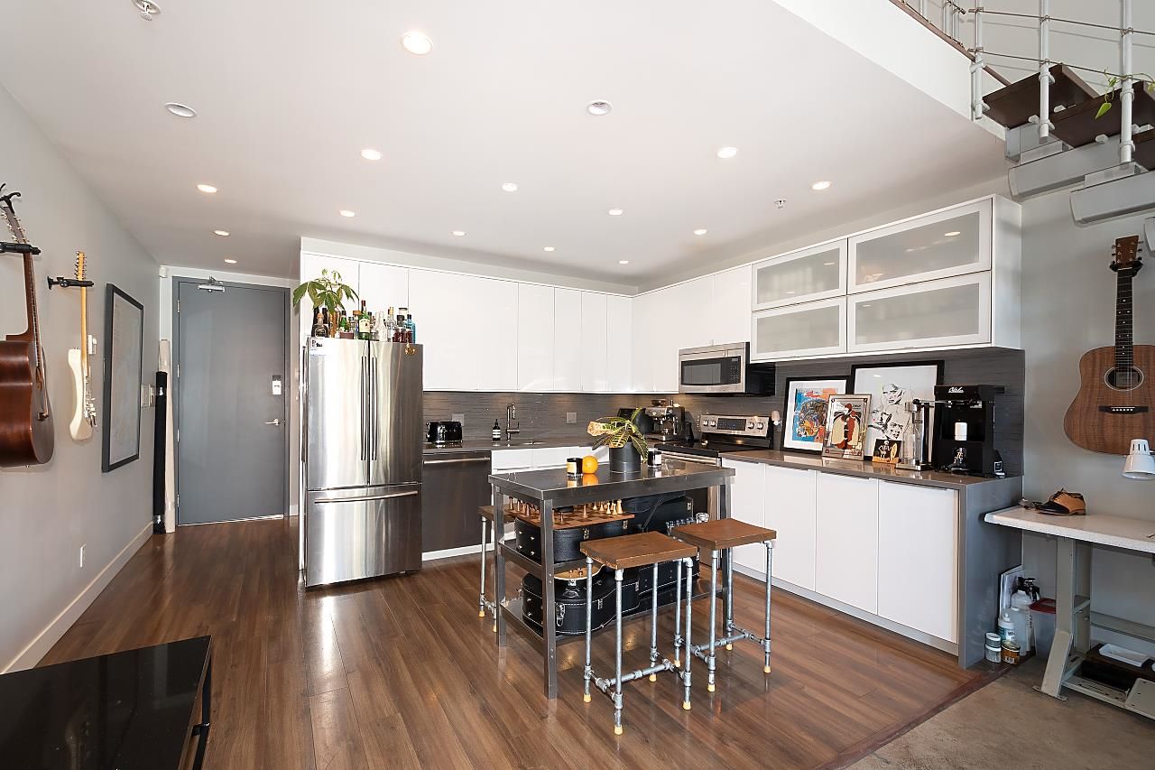 Da Vinci Artist Live/Work recently updated loft in vibrant, trendy, and eclectic Mt. Pleasant. Featuring 16 ft cathedral height ceiling, floor to ceiling windows harnessing all the natural light with views of north shore mountains and city. Walk to neighbourhood bars, restaurants, breweries, cafes, vintage shops, boutiques and many more. Steps away from highly anticipated South Flatz to the East, welcoming new tech, learning institutions, medical facilities, etc; and active life-styled Olympic Village to the West. Efficient self-managed strata with only 20 units. Walk Score 92, Rider Score 91, Biker Score 96. Some images are digital renderings showing a work setting. Move-in ready!