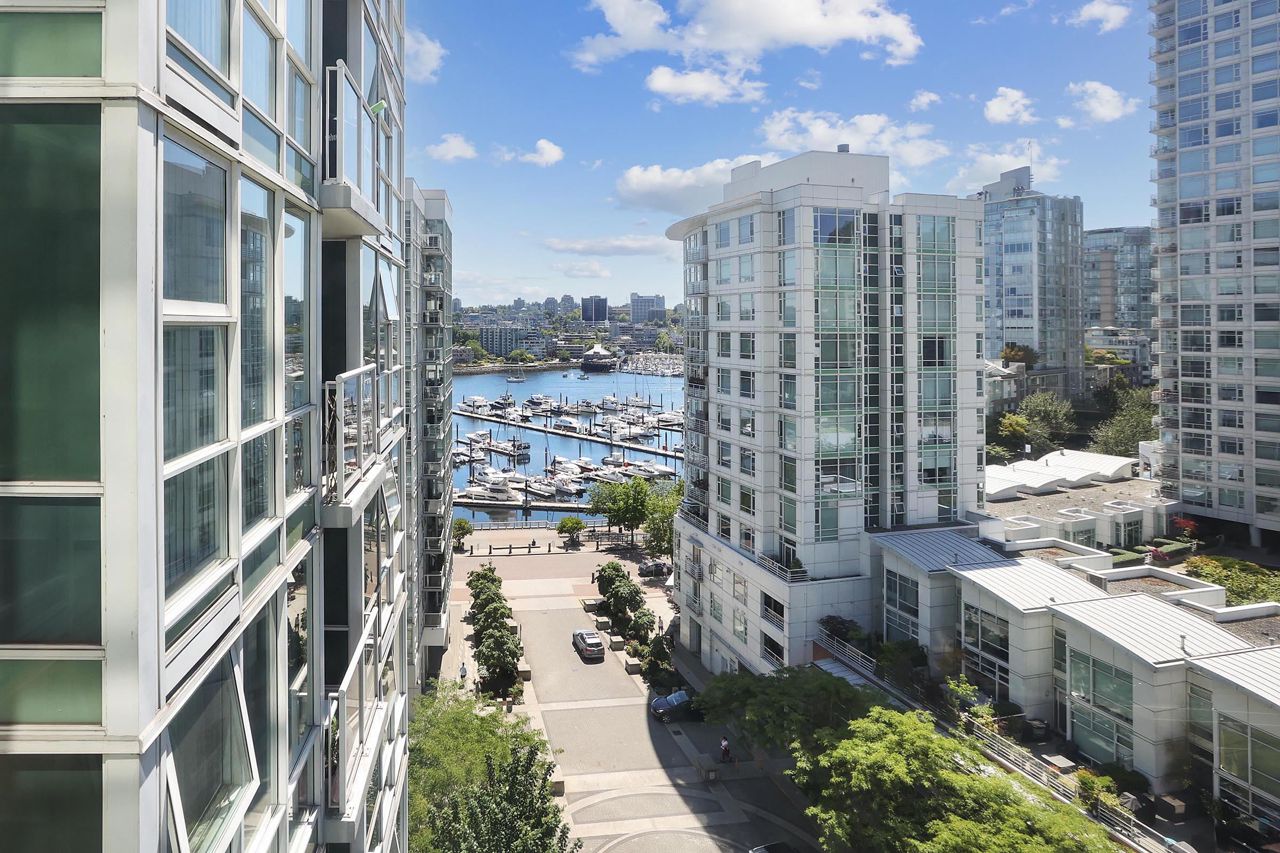 MARINASIDE RESORT - desirable View 1bdrm + den in Yaletown's Waterfront concrete hi-rise built by Concorde Pacific! Enjoy the marina view from your floor to ceiling window in the livingroom. Large condo with open lvgrm/dinrom w/ sliding door to eating area w/balcony. Kitchen has granite countertops, gas cooktop & pass-thru to the lvgrm/dinrm. Small den off the kitchen for personal office use or insuite storage. Some photos are virtually staged. Great bldg with resort style amenities: indoor lap pool, jacuzzi, his/her steam rooms, big gym overlooking the pool, billiards room, business meeting room, concierge, outdoor play area and garden to be enjoyed by all! Unbeatable location: seawall & restaurants outside your bldg, Skytrain, Roundhouse Comm & more! Show & Sell!