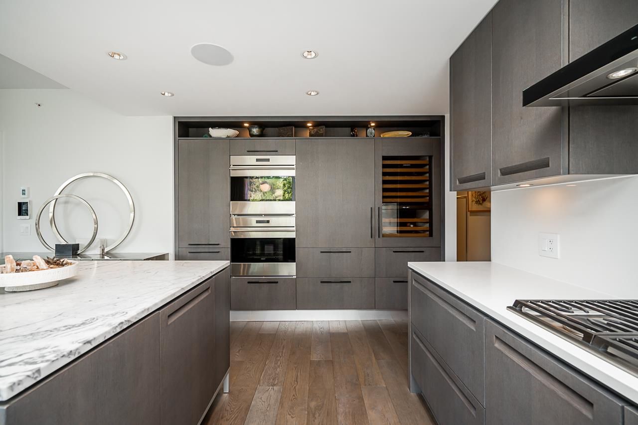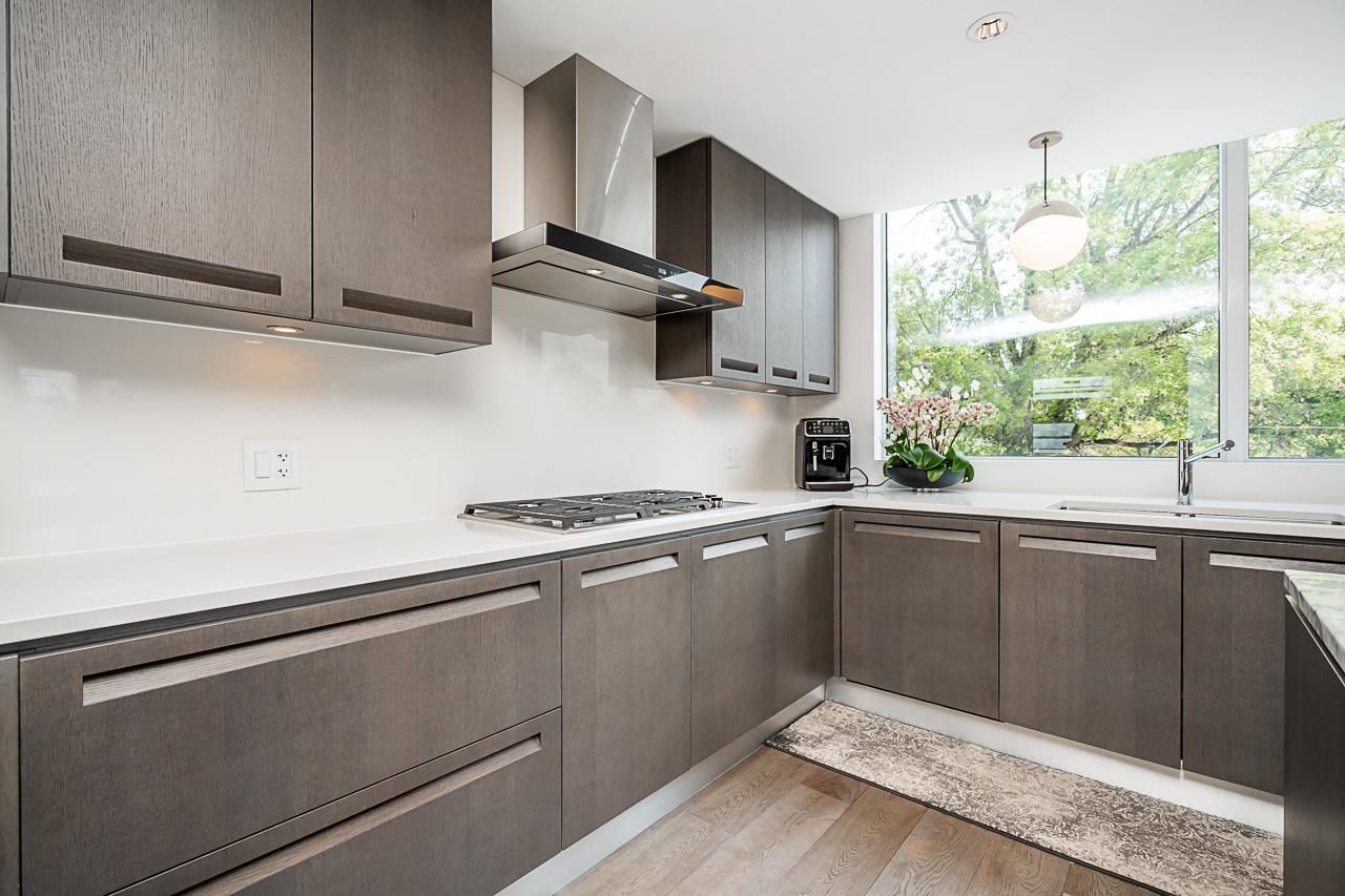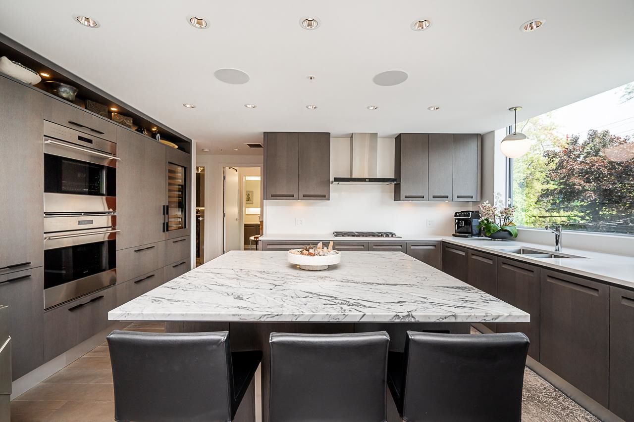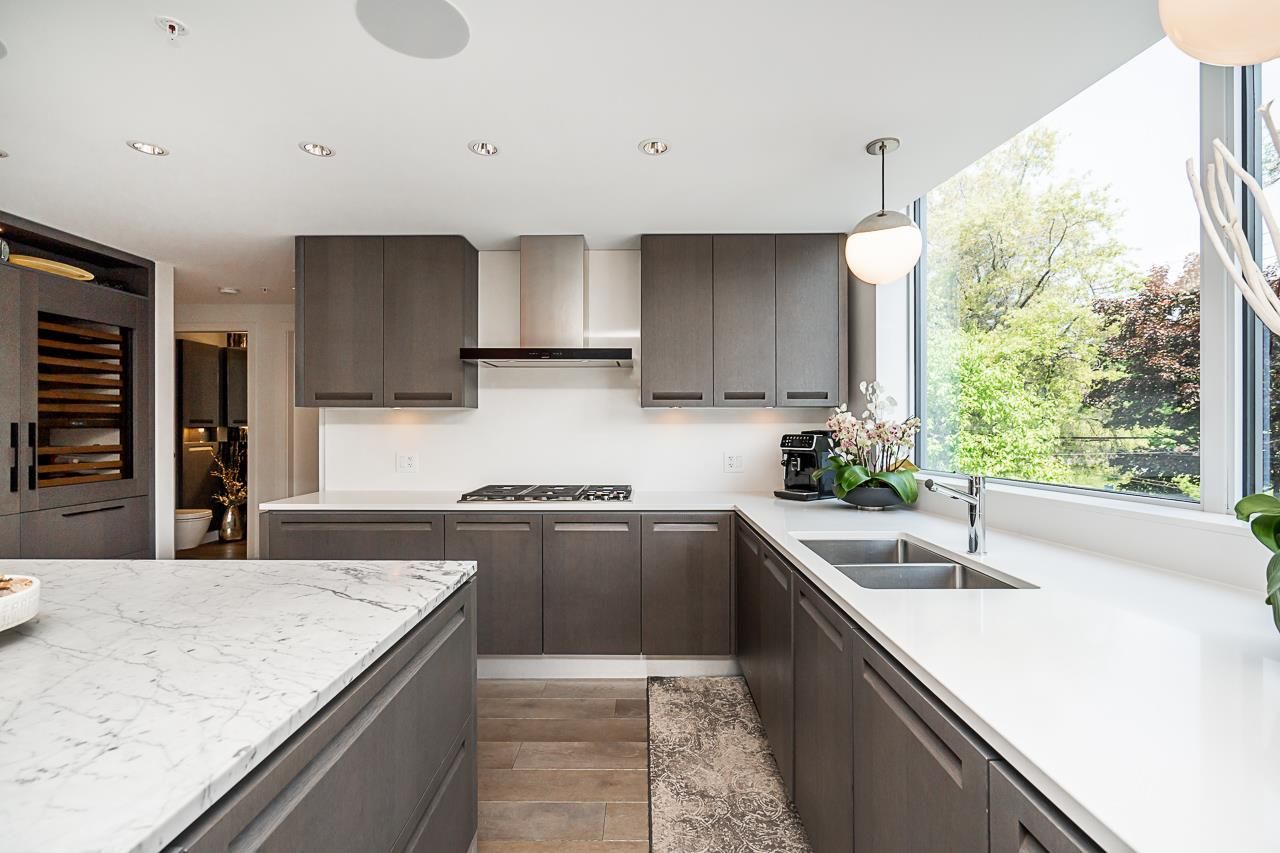 Elevated Elegance at Sterling by Cressey. A rare one level home perfect for entertaining, The gourmet kitchen features Italian marble counters, double wall mounted Wolf Ovens, gas cook top, spacious kitchen island, wine fridge & custom millwork. Open concept living & dining access to the covered south facing patio. Separated bedrooms boast ensuite bathrooms. Spacious primary bedroom includes; fireplace, immense walk-in closet & spa-like ensuite with soaker tub, double sinks & walk-in shower. Den/ 3rd bed features built in desk & millwork. Large laundry room with side-by-side washer & dryer, plenty of counter space & built in storage. Air conditioned. Located in the heart of Kerrisdale steps to shopping, eateries, transit, top schools & recreation. 2 EV parking, 2 storage & bike storage.