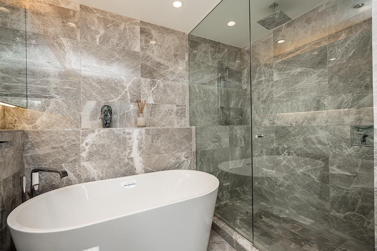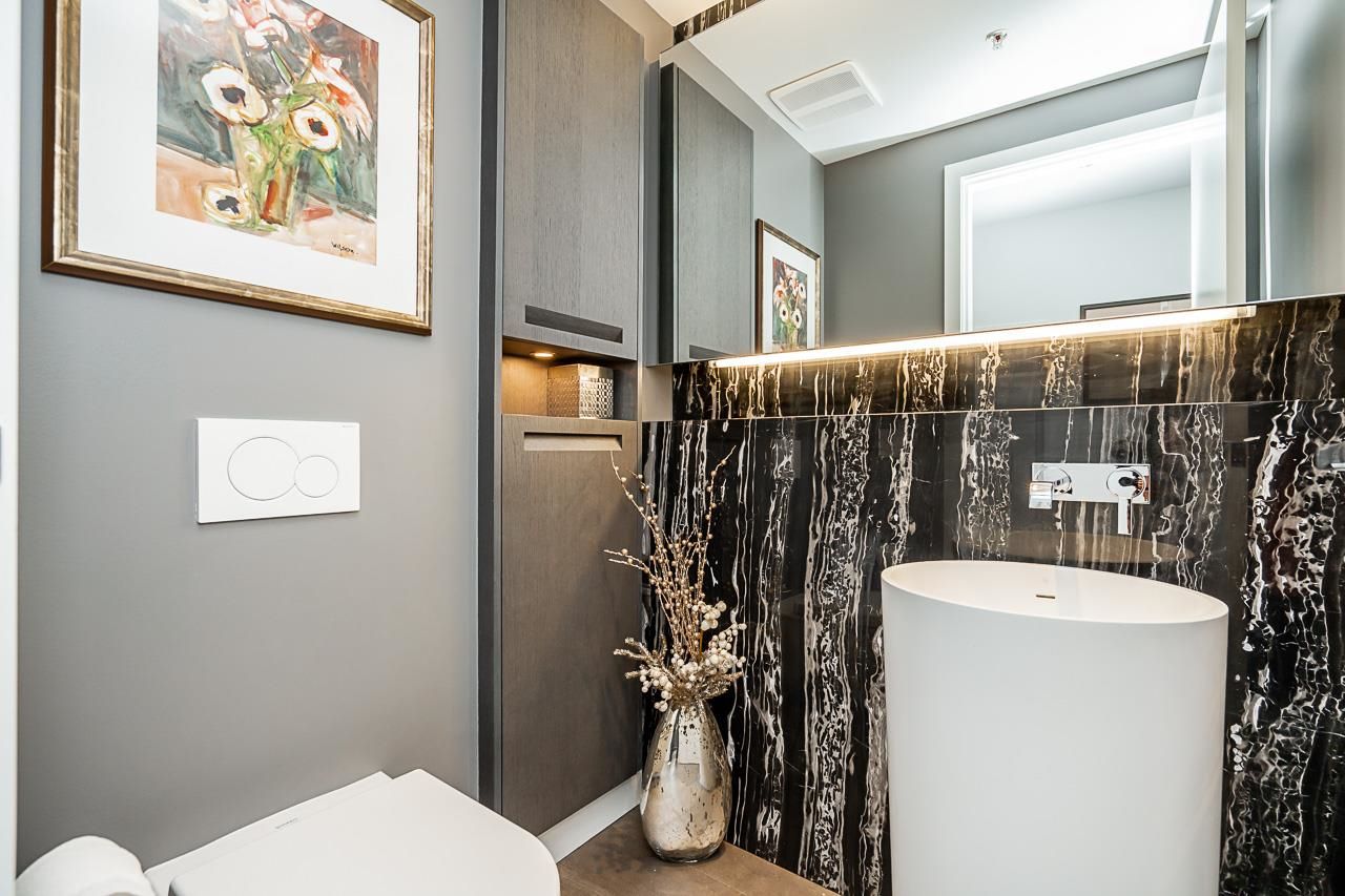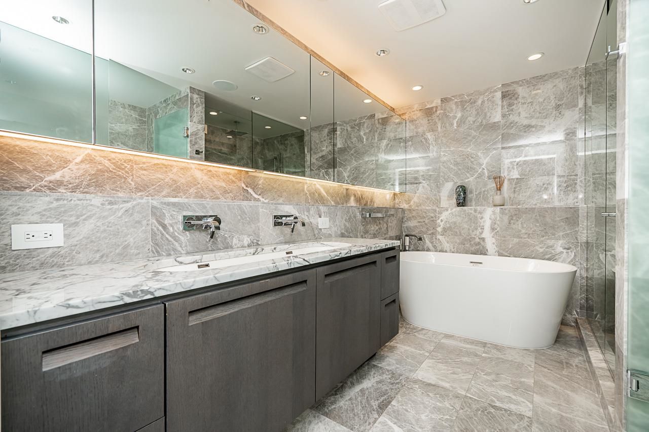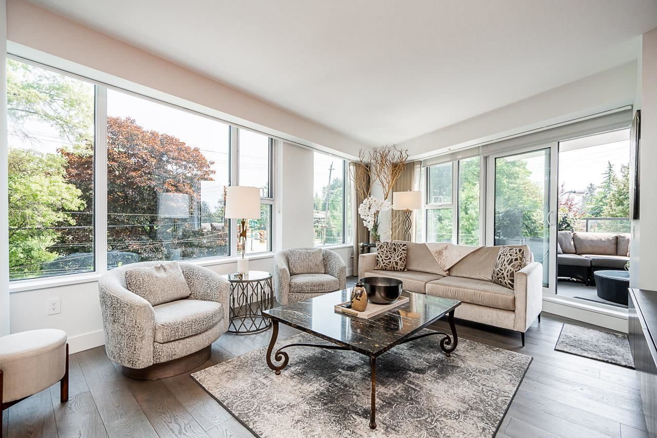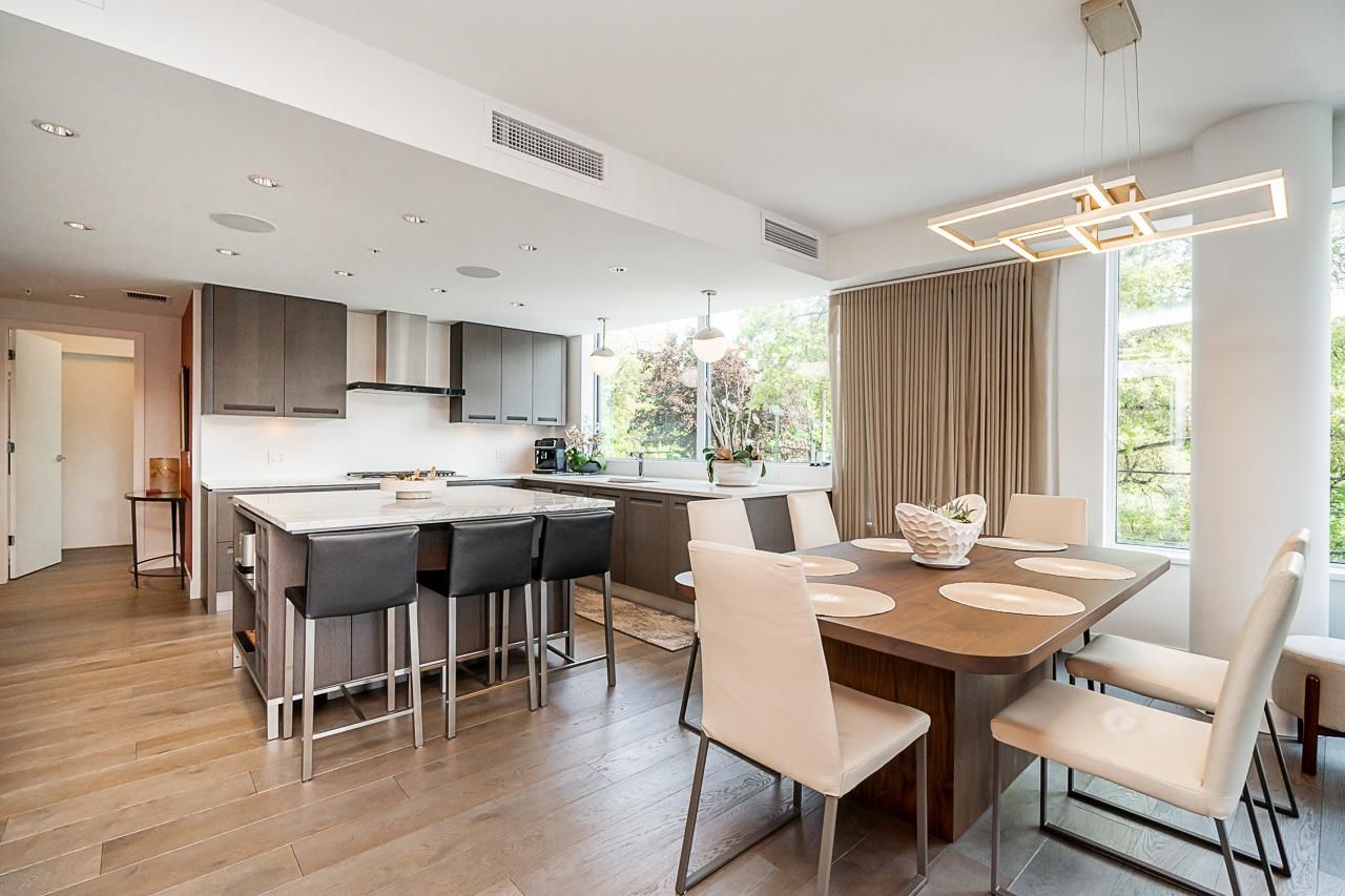 Elevated Elegance at Sterling by Cressey. A rare one level home perfect for entertaining, The gourmet kitchen features Italian marble counters, double wall mounted Wolf Ovens, gas cook top, spacious kitchen island, wine fridge & custom millwork. Open concept living & dining access to the covered south facing patio. Separated bedrooms boast ensuite bathrooms. Spacious primary bedroom includes; fireplace, immense walk-in closet & spa-like ensuite with soaker tub, double sinks & walk-in shower. Den/ 3rd bed features built in desk & millwork. Large laundry room with side-by-side washer & dryer, plenty of counter space & built in storage. Air conditioned. Located in the heart of Kerrisdale steps to shopping, eateries, transit, top schools & recreation. 2 EV parking, 2 storage & bike storage.