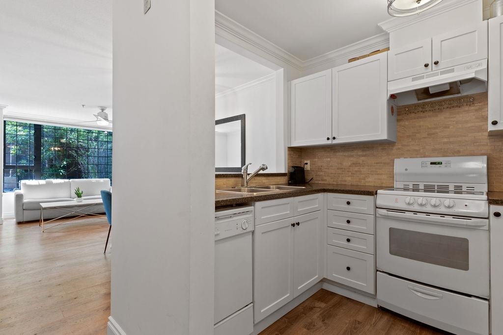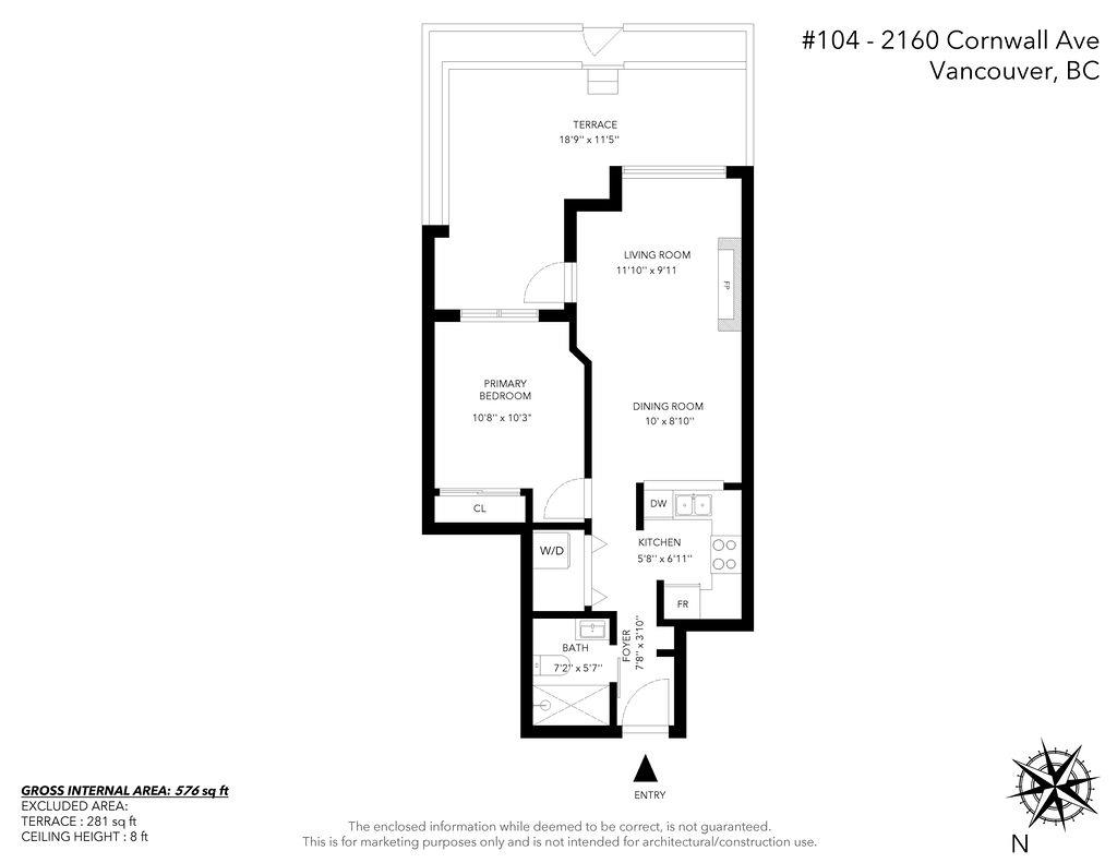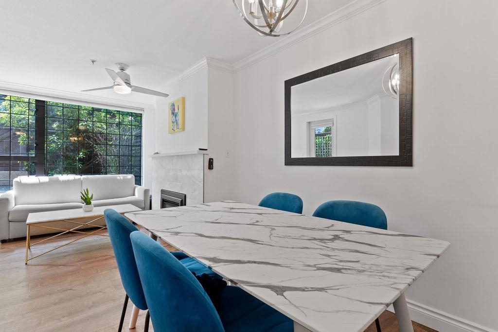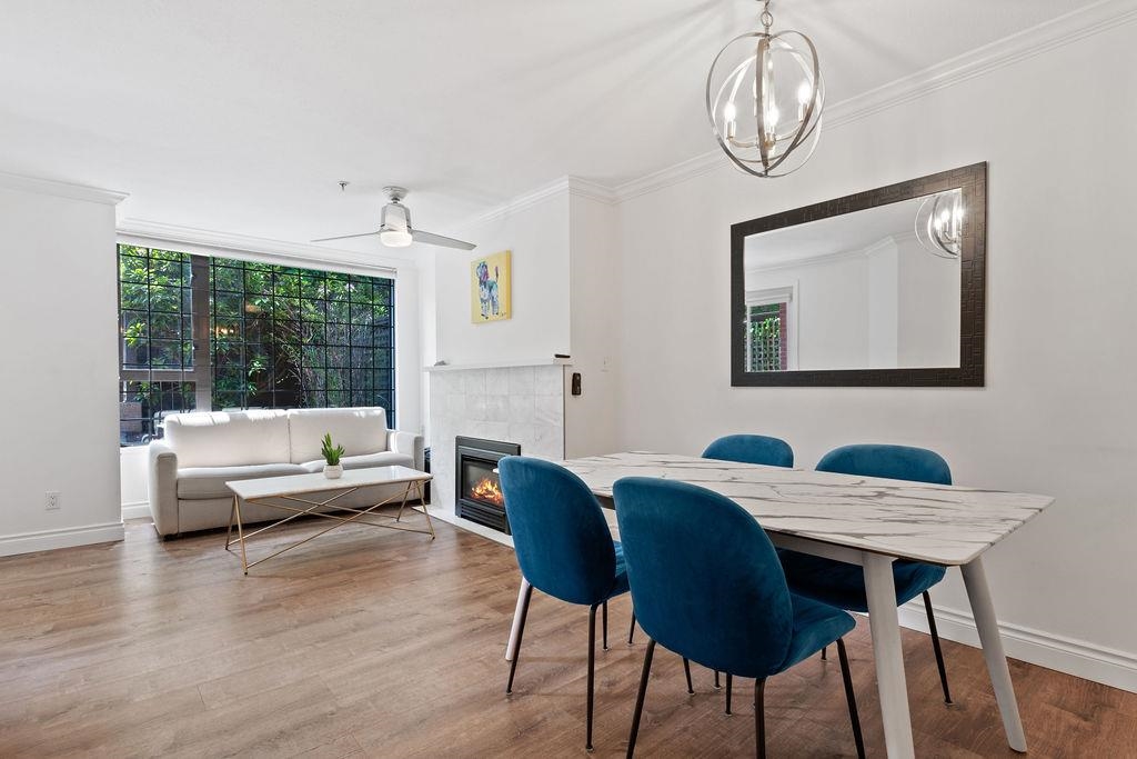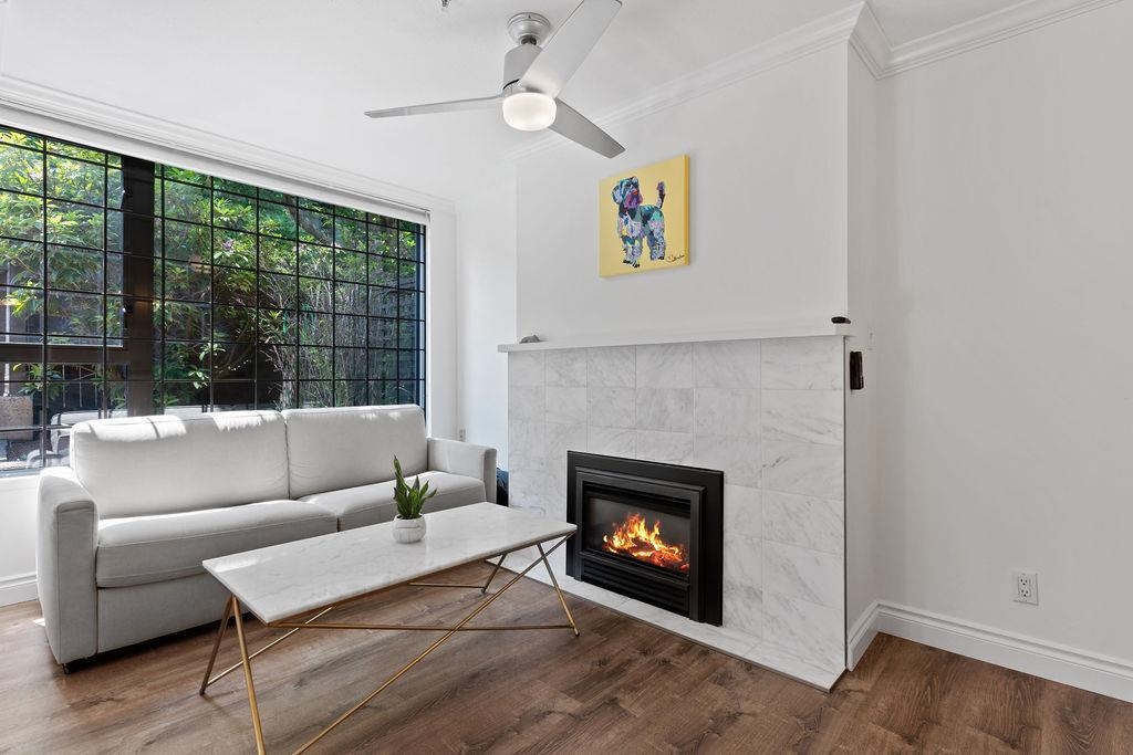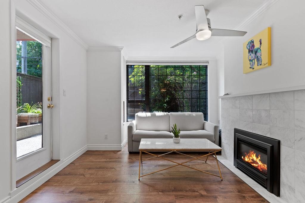 This is your opportunity to live across the street from Kits Beach! Rarely available 1 bedroom in Cornwall Terraces, featuring an open floor plan, updated kitchen and bathroom, large bedroom, gas fireplace and in-suite laundry. Step out onto the 280 sq ft terrace and enjoy your own private oasis. Extremely well maintained, fully rainscreened building with a proactive strata. Beachfront living just steps to the ocean, tennis courts, Kits Pool, transportation and some of the best restaurants and bars the city has to offer. Pets and rentals allowed. 1 parking and 1 storage included.