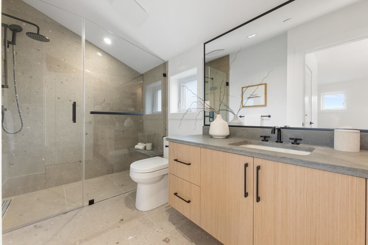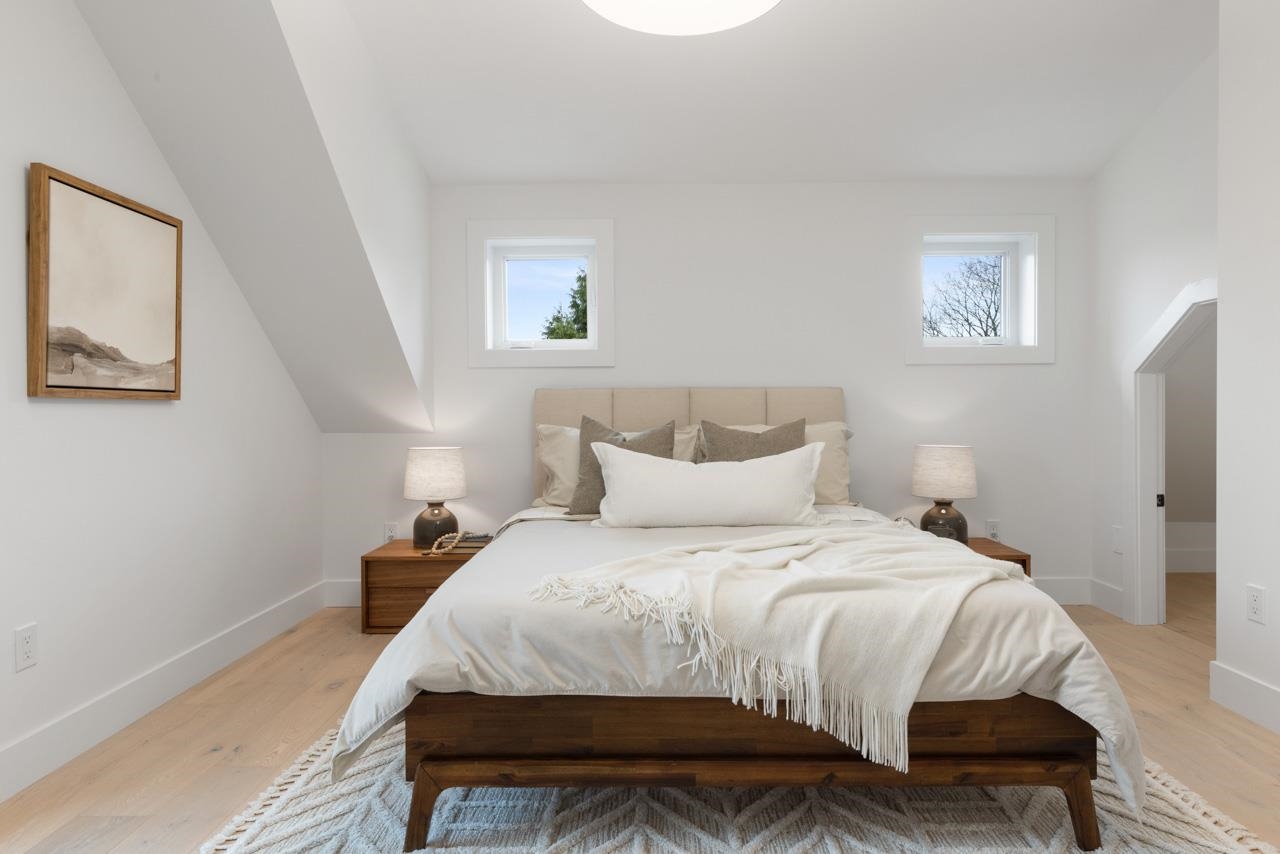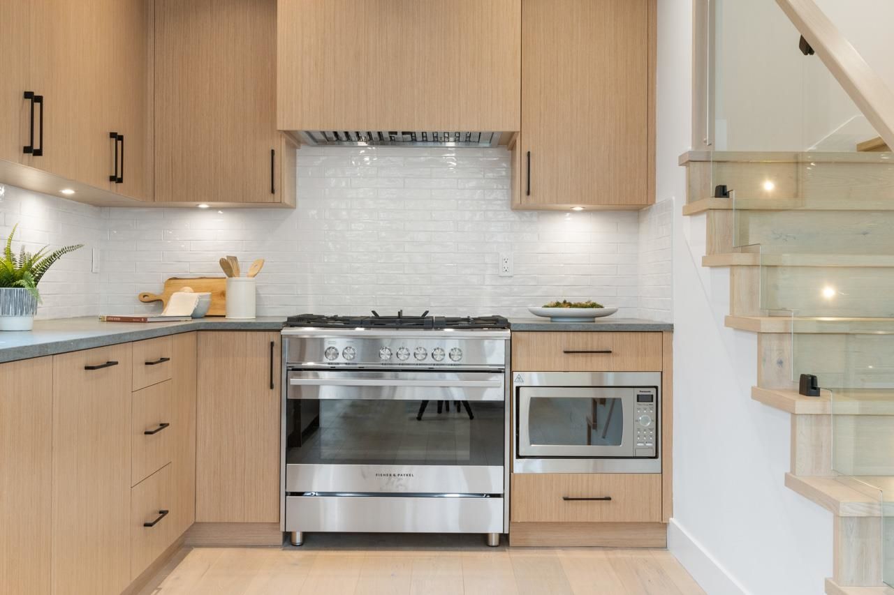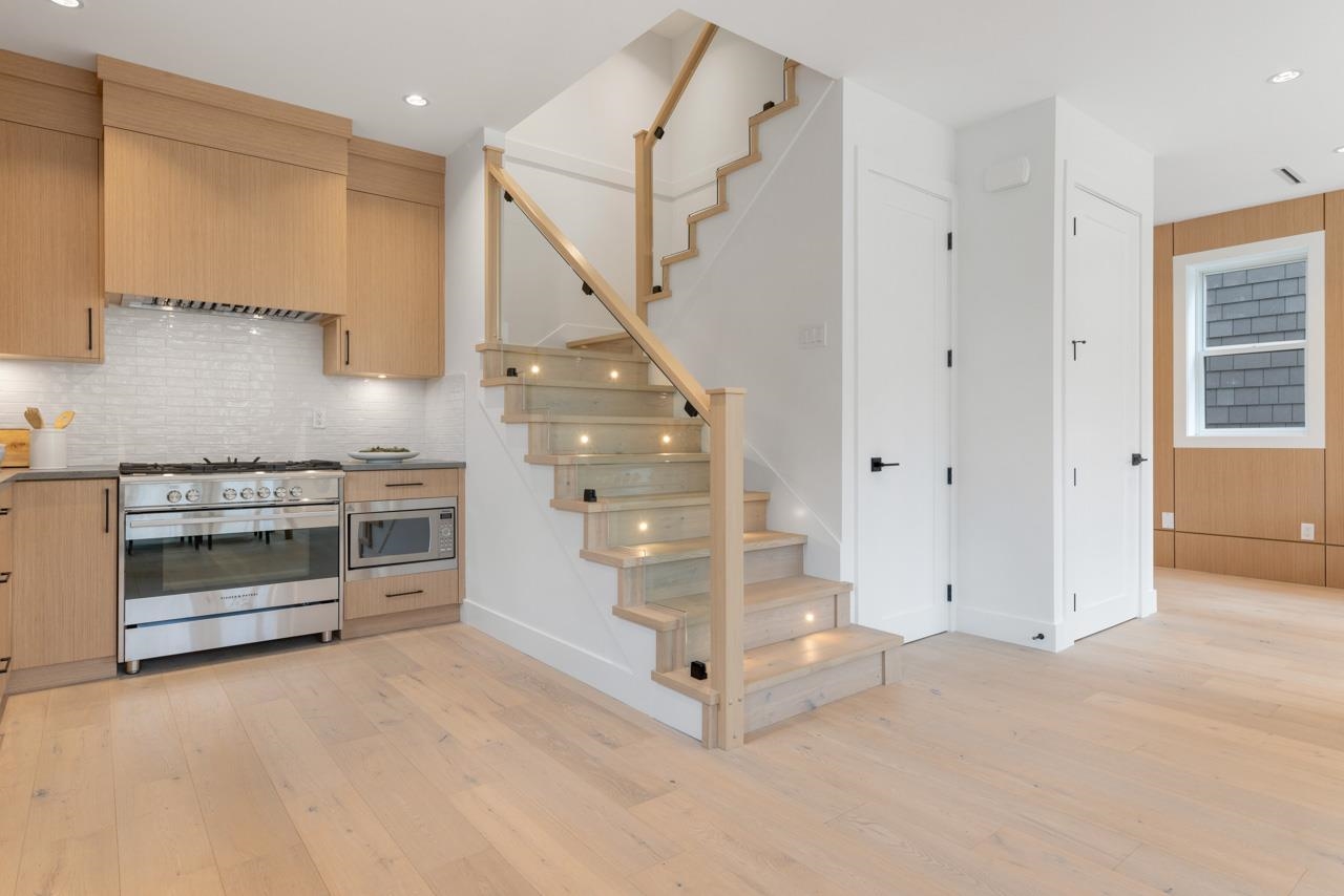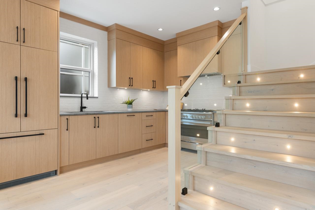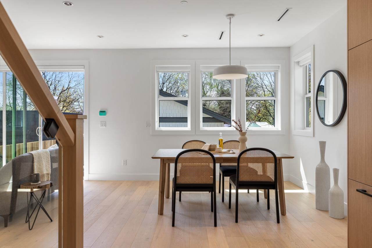 The one you have been waiting for! This spacious, well-appointed back 1/2 duplex offers 1657 SQFT over 3 levels. The bright & open main living space has oversized sliders to the South facing backyard, large dining area & luxurious kitchen complete with integrated appliances & 36" gas Fisher Paykel range. Upstairs you will find the primary bedroom with custom storage & sparkling ensuite, 2nd bedroom, 4 pc bath, laundry & 3rd bedroom. The top floor has the 4th bedroom that also makes a great primary with beautiful ensuite and private balcony overlooking Trout Lake. This exceptional home is sure to impress with hardwood throughout, radiant in-floor heat, A/C, crawlspace storage, 1 car garage all in a fantastic neighbourhood close to parks, schools, transit and Commercial Drive. Come see!