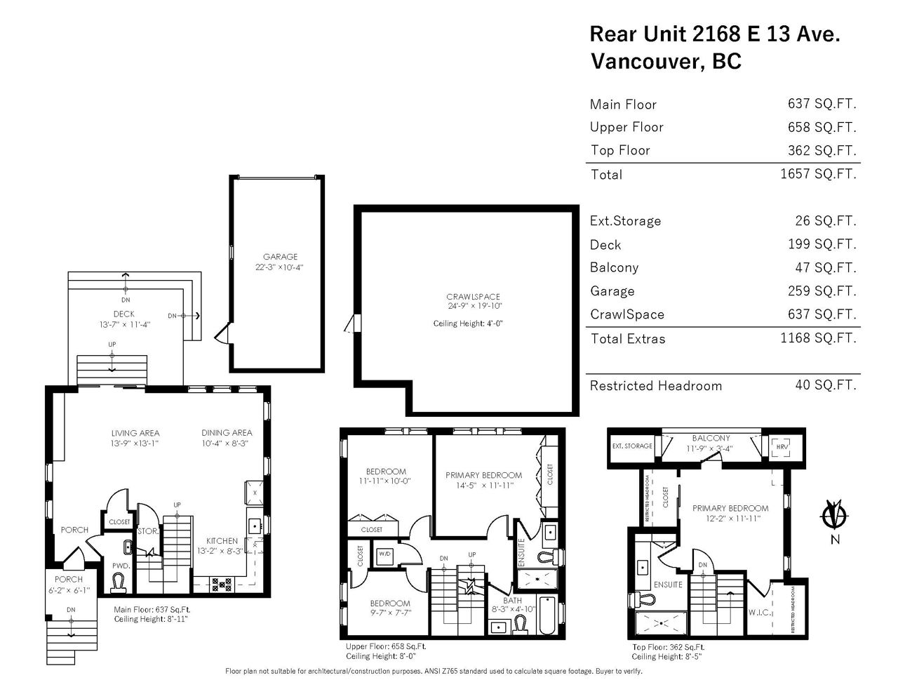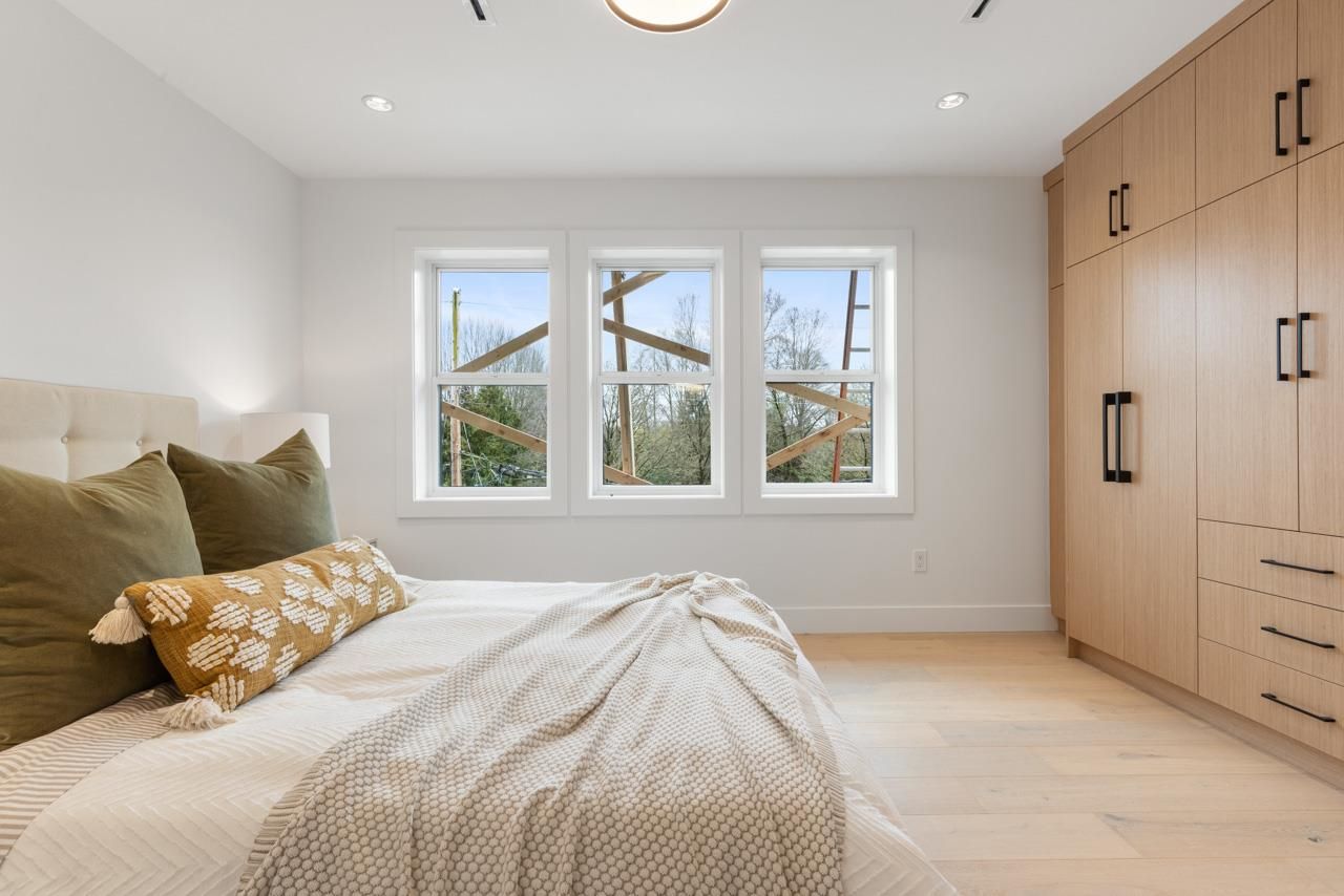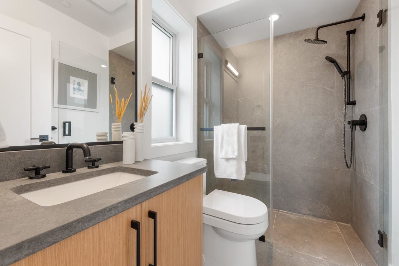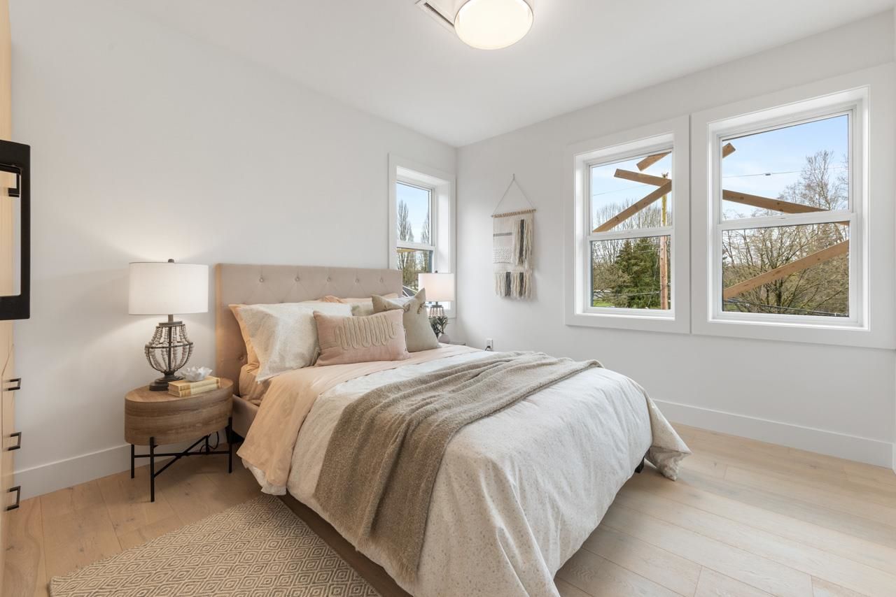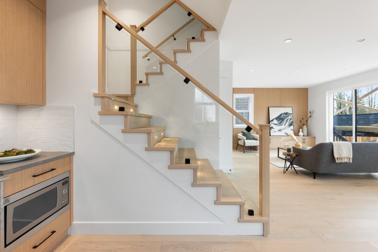 The one you have been waiting for! This spacious, well-appointed back 1/2 duplex offers 1657 SQFT over 3 levels. The bright & open main living space has oversized sliders to the South facing backyard, large dining area & luxurious kitchen complete with integrated appliances & 36" gas Fisher Paykel range. Upstairs you will find the primary bedroom with custom storage & sparkling ensuite, 2nd bedroom, 4 pc bath, laundry & 3rd bedroom. The top floor has the 4th bedroom that also makes a great primary with beautiful ensuite and private balcony overlooking Trout Lake. This exceptional home is sure to impress with hardwood throughout, radiant in-floor heat, A/C, crawlspace storage, 1 car garage all in a fantastic neighbourhood close to parks, schools, transit and Commercial Drive. Come see!
