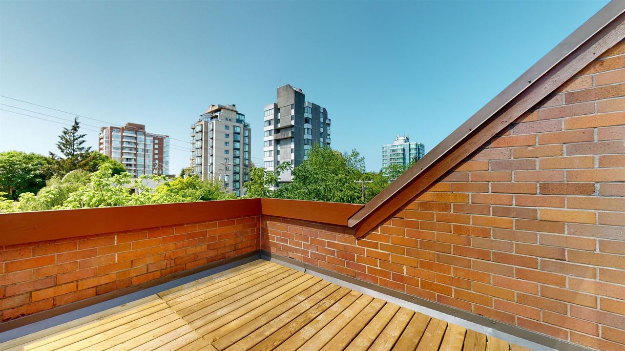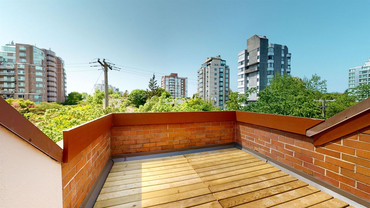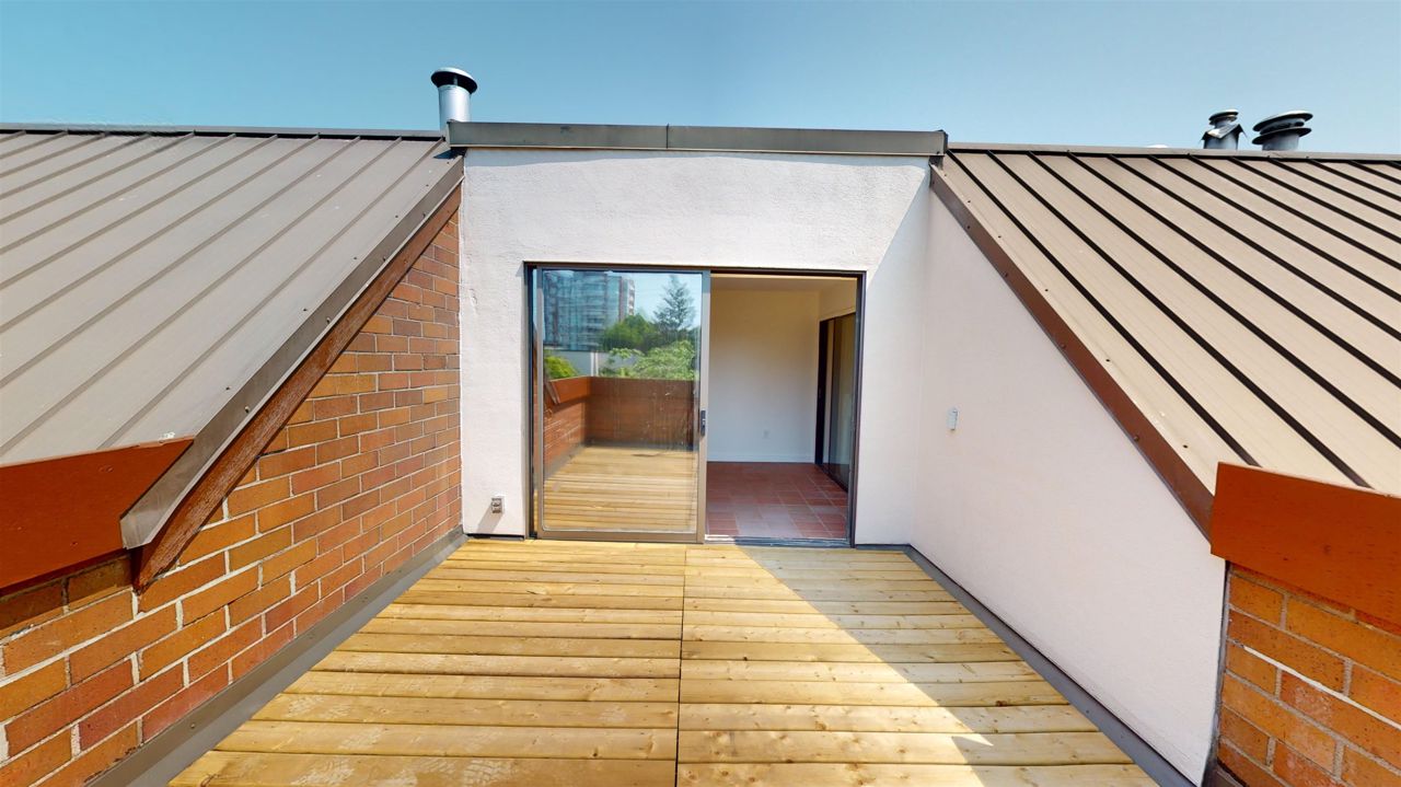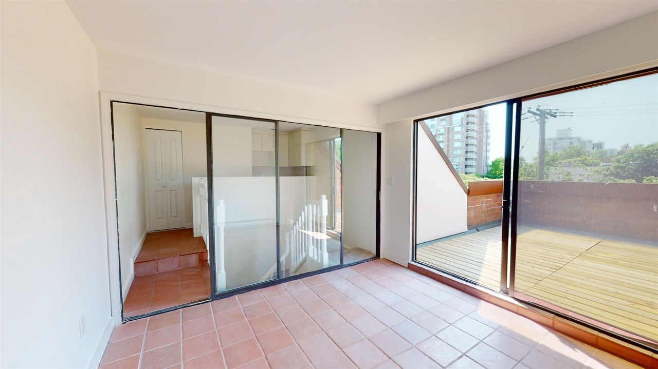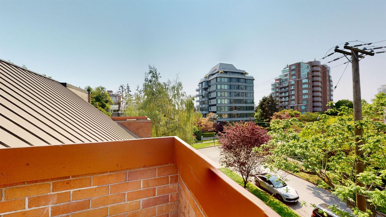 Rarely available 2 bedroom and flex townhouse style apartment in prime Kerrisdale location. Main has updated bath and kitchen with new appliances, bright living and dining space plus solarium. Large windows throughout allow for ample natural light. Second floor has 2 bdrms both with updated ensuite baths. Third level is flex space that leads out to private 167 SQFT roof deck. Freshly painted and updated flooring throughout. 2 side by side parking stalls, & storage locker. Walk the treelined neighbourhood or walk, bike or skate the Arbutus Greenway. Excellent catchment: Quilchena Elementary & Point Grey Secondary. 1 dog or 1 cat allowed.