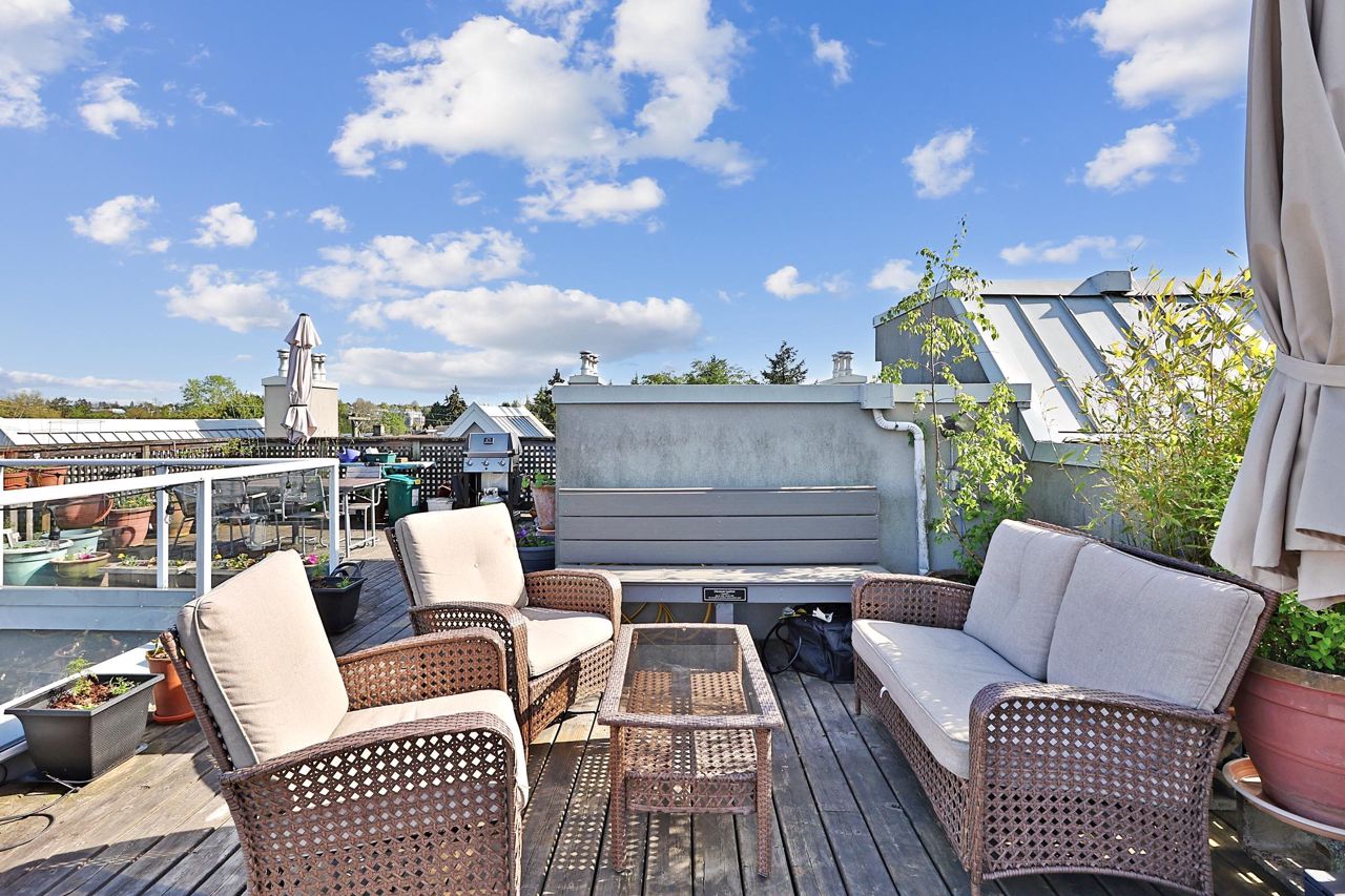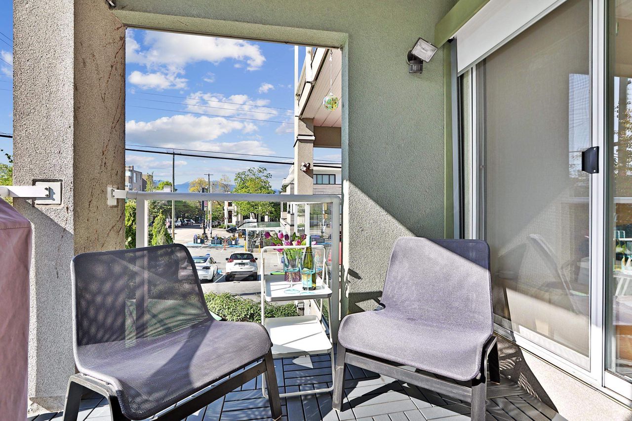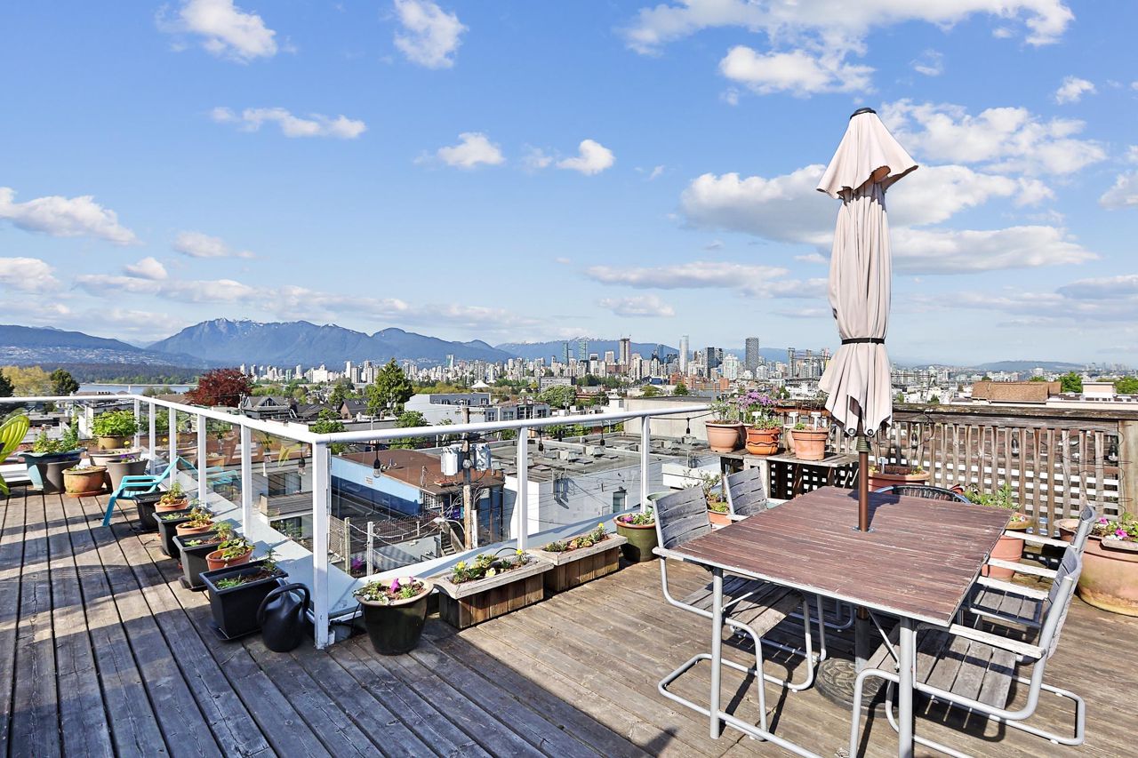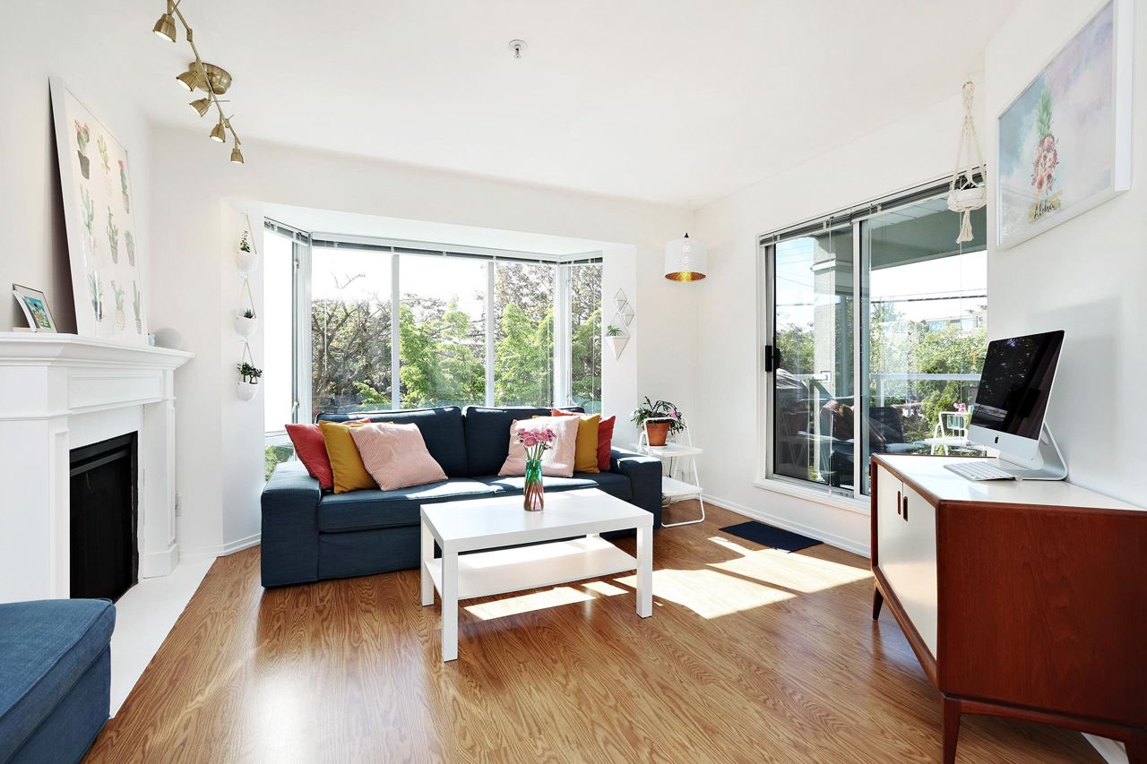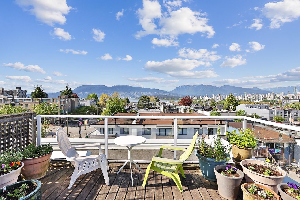 Located in the heart of Kitsilano! Bright Western exposure with views of the North Shore mountains. Spacious OPEN FLOOR PLAN with a FIREPLACE! A nice size balcony for bbqing and entertaining. IN-SUITE laundry,1 PARKING stall and a STORAGE locker complete this amazing home. Freshly painted with updated lighting and ready to move in! Amazing community rooftop deck with panoramic views of the ocean! This is a fully RAINSCREENED building with a proactive strata. Steps to coffee shops, Whole foods and more. Easy walk to kits beach, Granville Island & downtown!