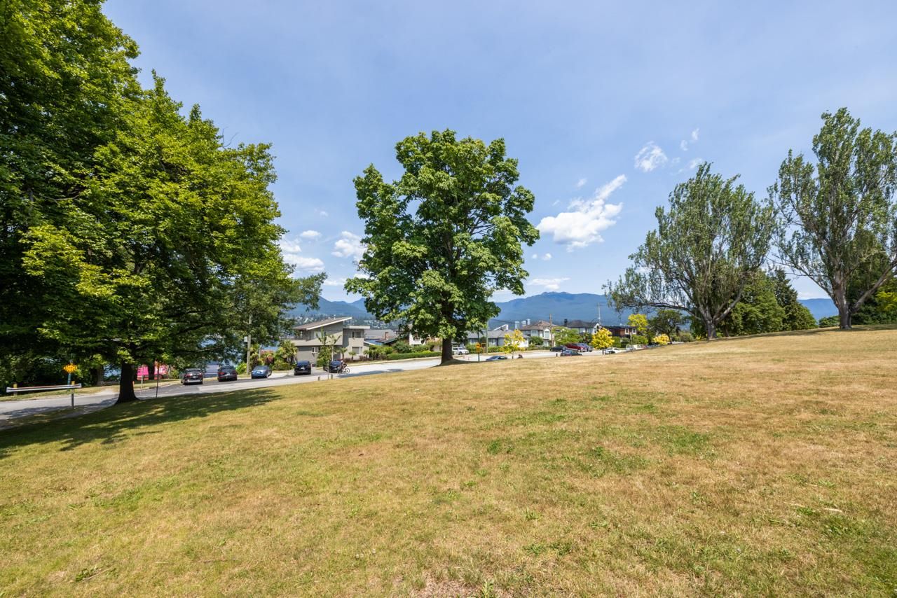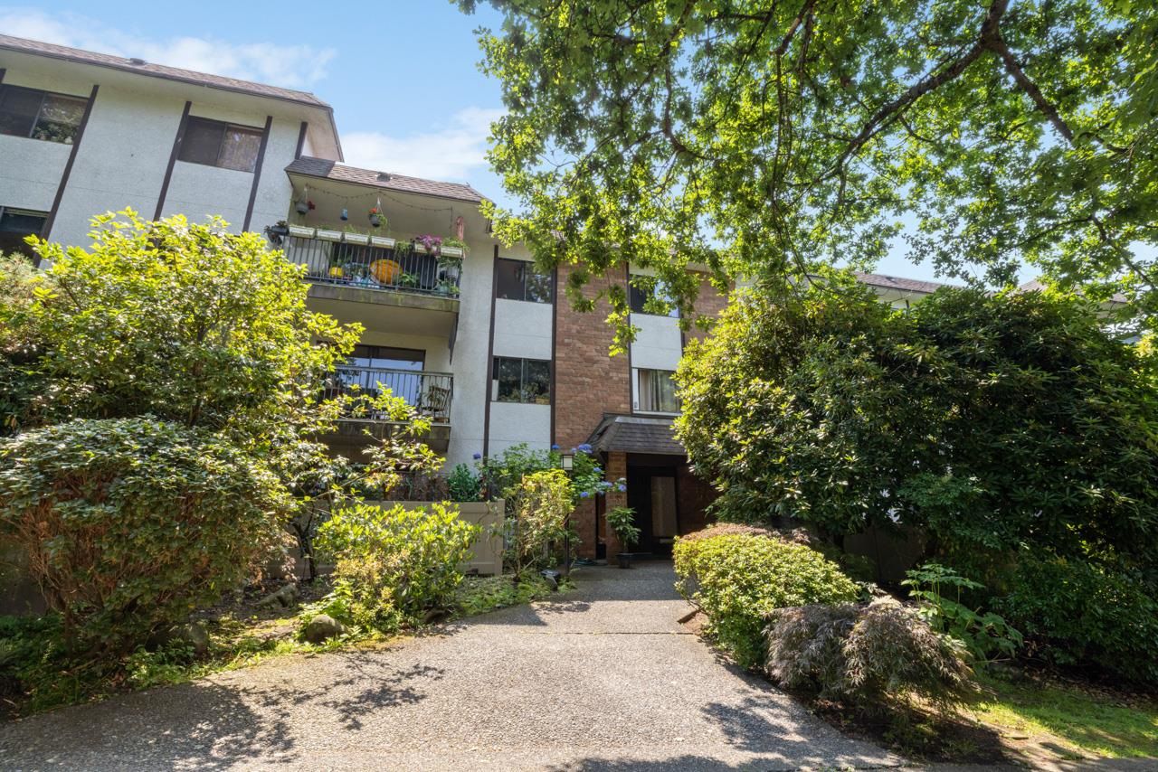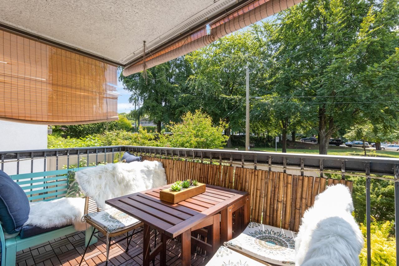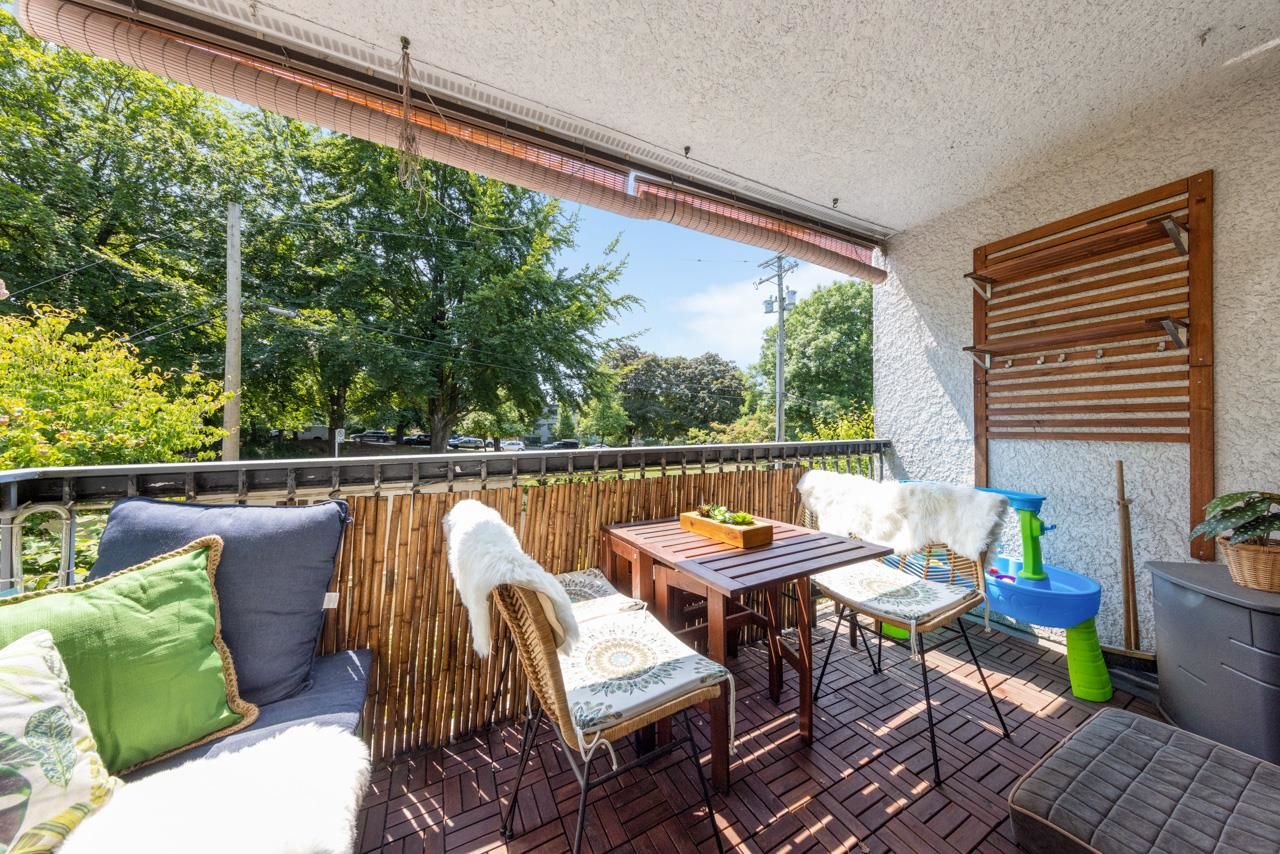 This sunny, spacious, park-view apartment is a pleasure to show! Perched on a quiet, tree-lined street, surrounded in parks near the ocean, this open layout feels like home sweet home. The big bedrooms have double closets, room for a workspace & leafy outlooks. The large kitchen boasts s/s appliances, granite counters & a big breakfast bar. The expansive, sun drenched living area has room for entertaining & a lovely, covered sundeck where you can sit & watch the neighborhood go by. Storage locker + 1 parking + shared laundry. Pets & rentals allowed (30 day min). Great value for a young family, pet owner, or cyclist! Solid Tudor-style building with lovely mature gardens & many upgrades done by a proactive strata.