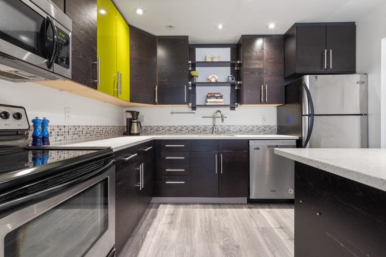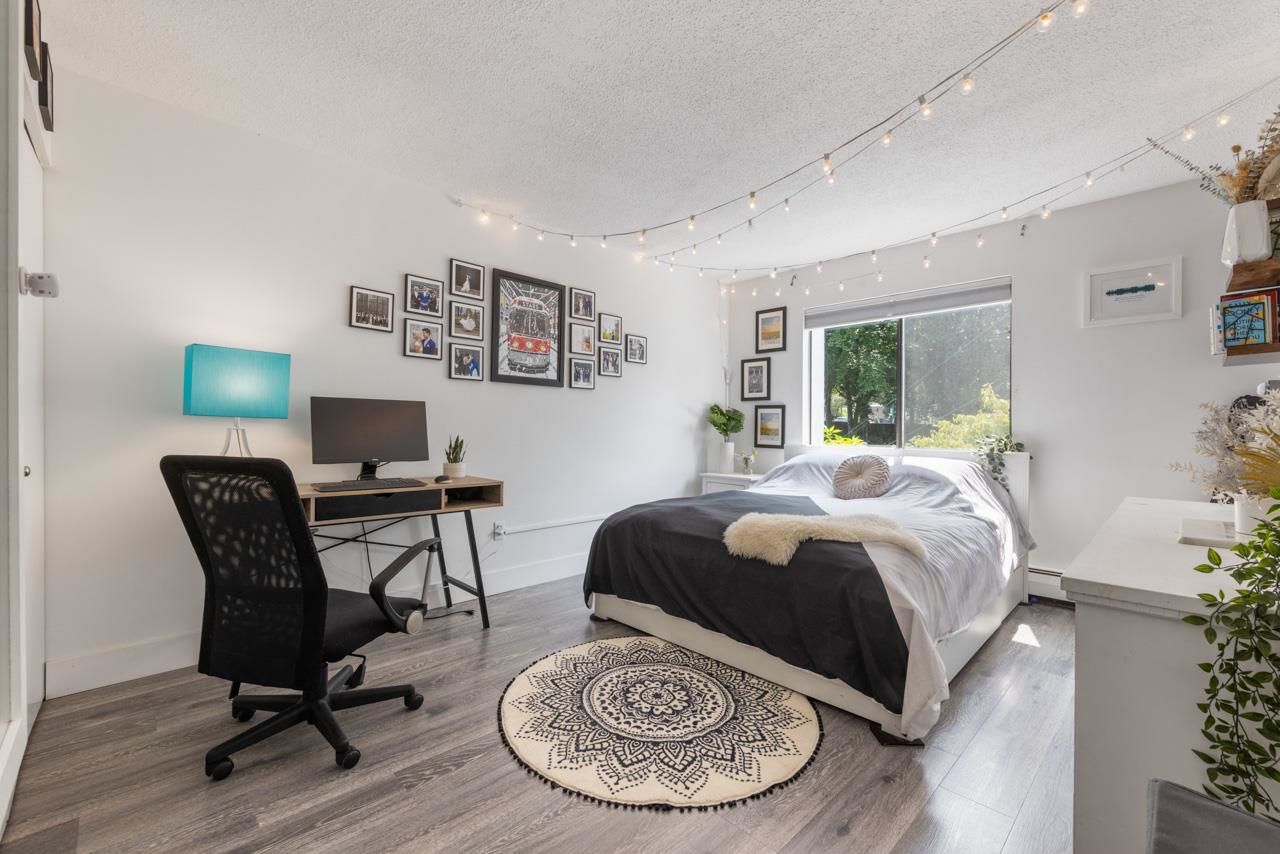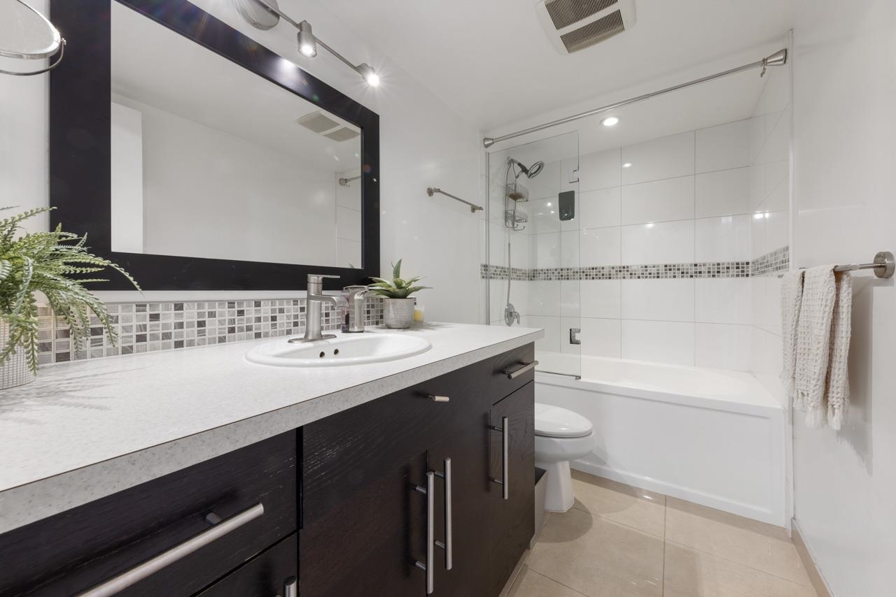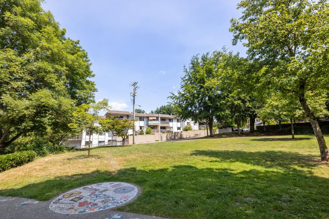 This sunny, spacious, park-view apartment is a pleasure to show! Perched on a quiet, tree-lined street, surrounded in parks near the ocean, this open layout feels like home sweet home. The big bedrooms have double closets, room for a workspace & leafy outlooks. The large kitchen boasts s/s appliances, granite counters & a big breakfast bar. The expansive, sun drenched living area has room for entertaining & a lovely, covered sundeck where you can sit & watch the neighborhood go by. Storage locker + 1 parking + shared laundry. Pets & rentals allowed (30 day min). Great value for a young family, pet owner, or cyclist! Solid Tudor-style building with lovely mature gardens & many upgrades done by a proactive strata.