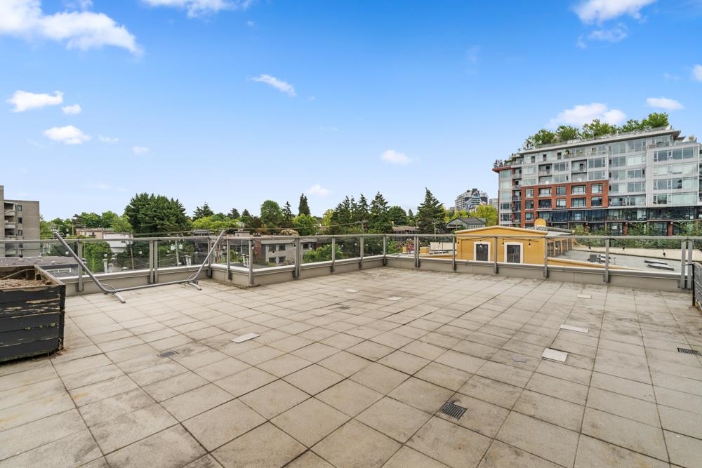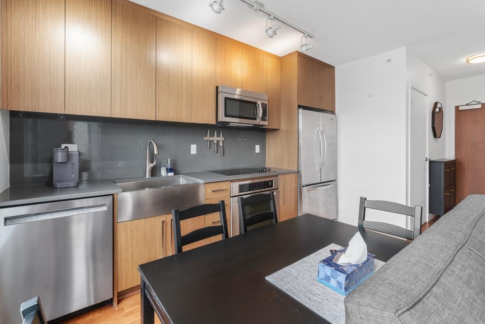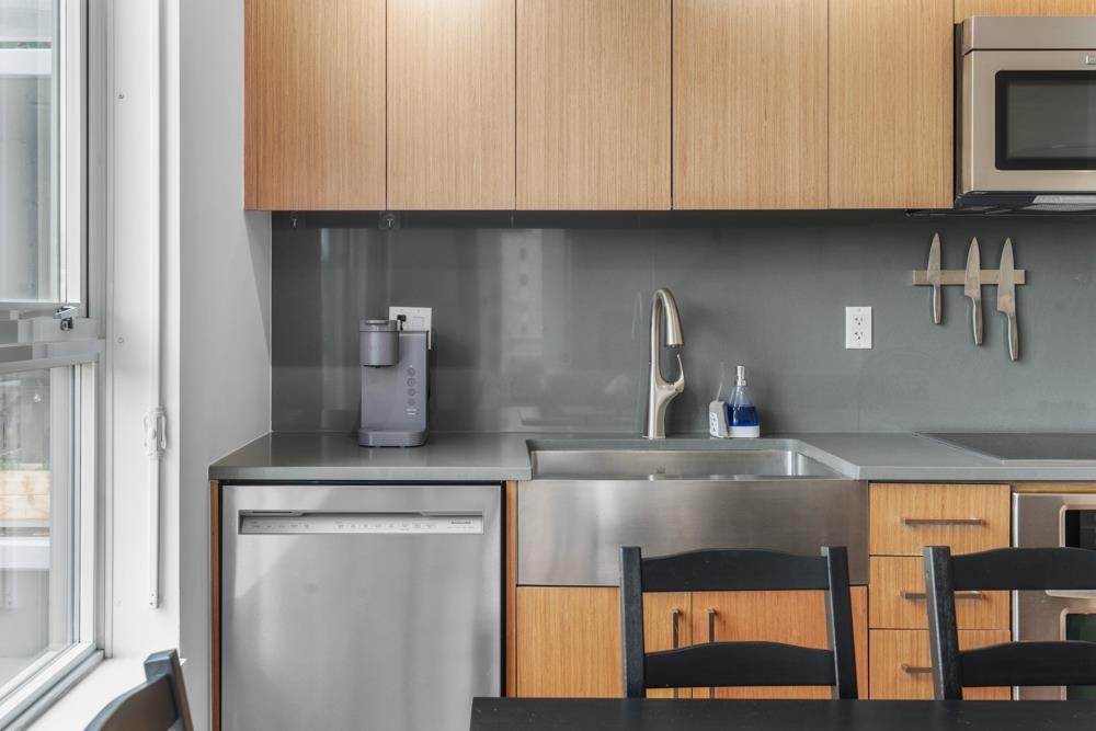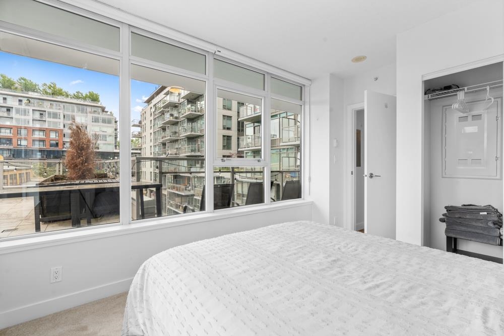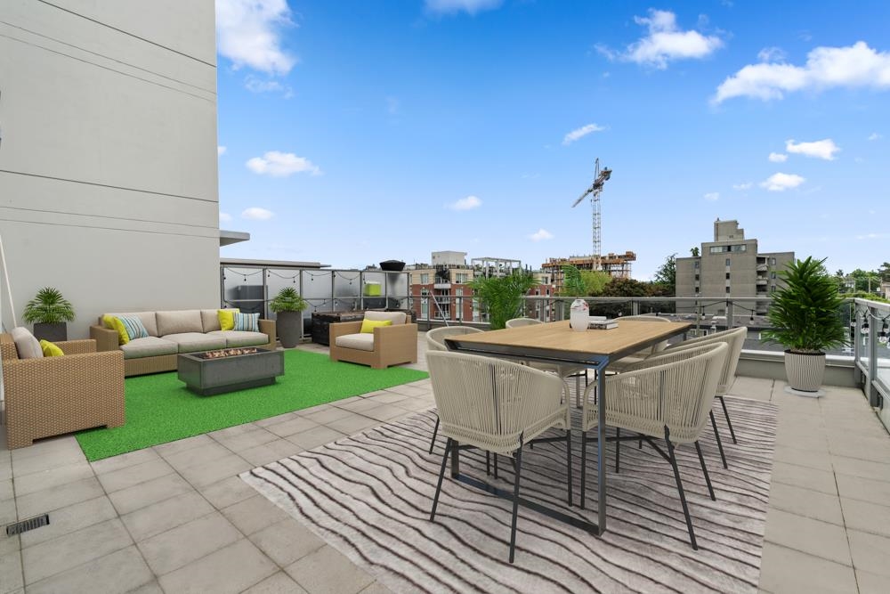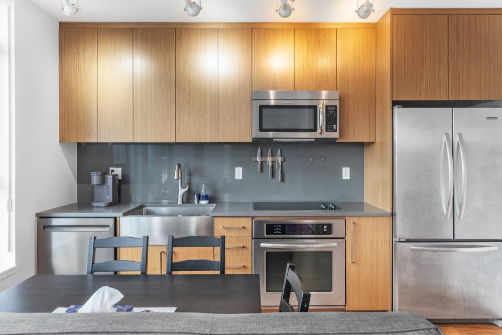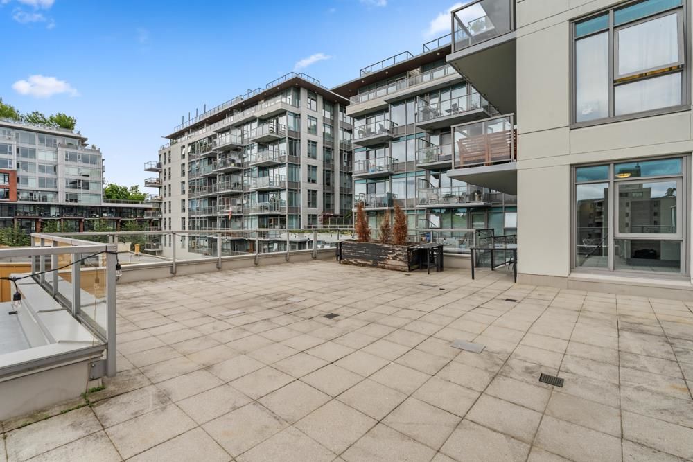 With over 1000 sq feet of private outdoor patio space just for you! Welcome to the District! This beautiful 1 bed 1 bath condo comes with modern finishings, recently painted, an open concept kitchen, Caesarstone quartz countertops, KitchenAid appliances, new dishwasher, 1 parking, and 1 storage locker. Great building amenities include full gym, meeting room, large rooftop deck area, garden plots with gorgeous downtown and water views. Close to: soon to be built St. Paul's Hospital (2026), trendy restaurants, breweries, shops, cafes, & Main St/Science World skytrain station. Some patio photos are virtually staged. Pet friendly. Currently tenanted on airbnb, can be a turn key operation!