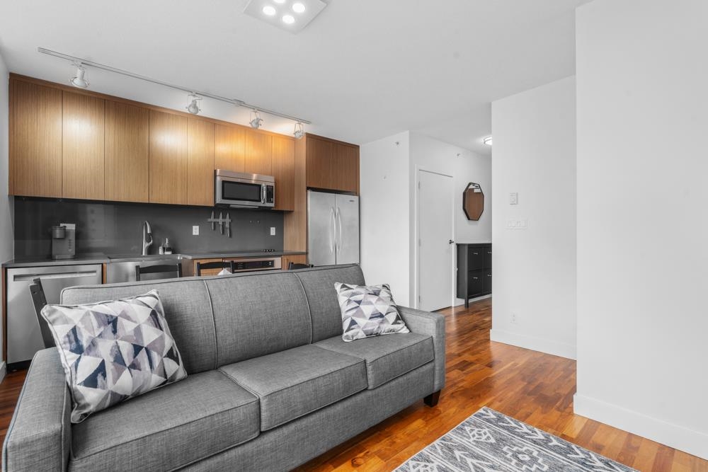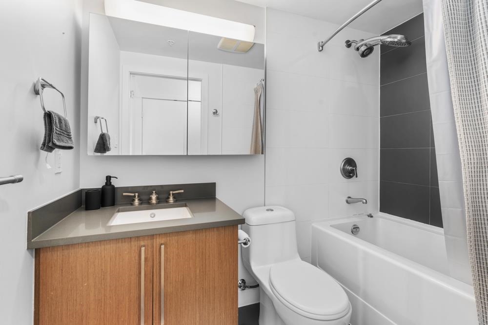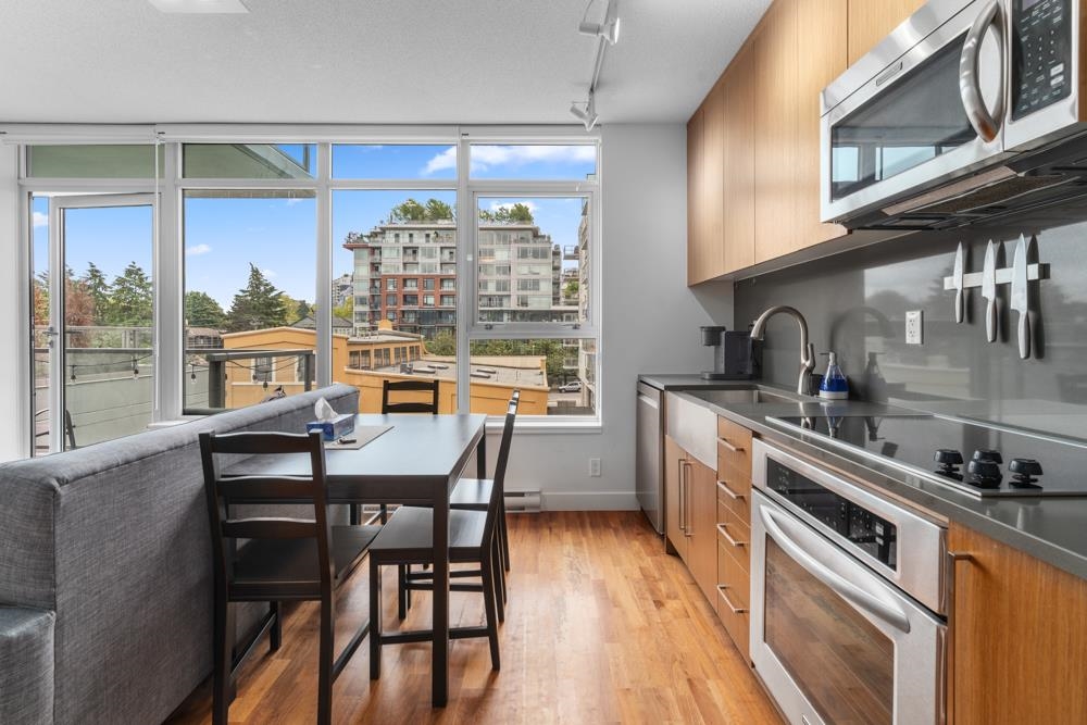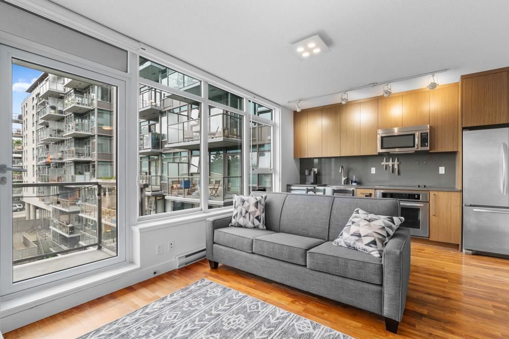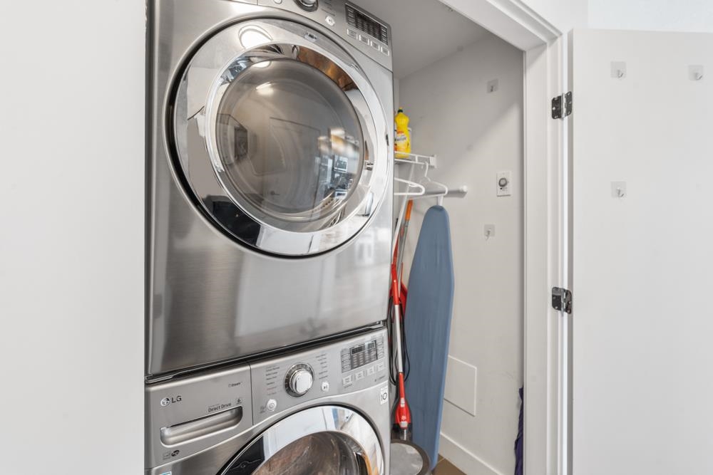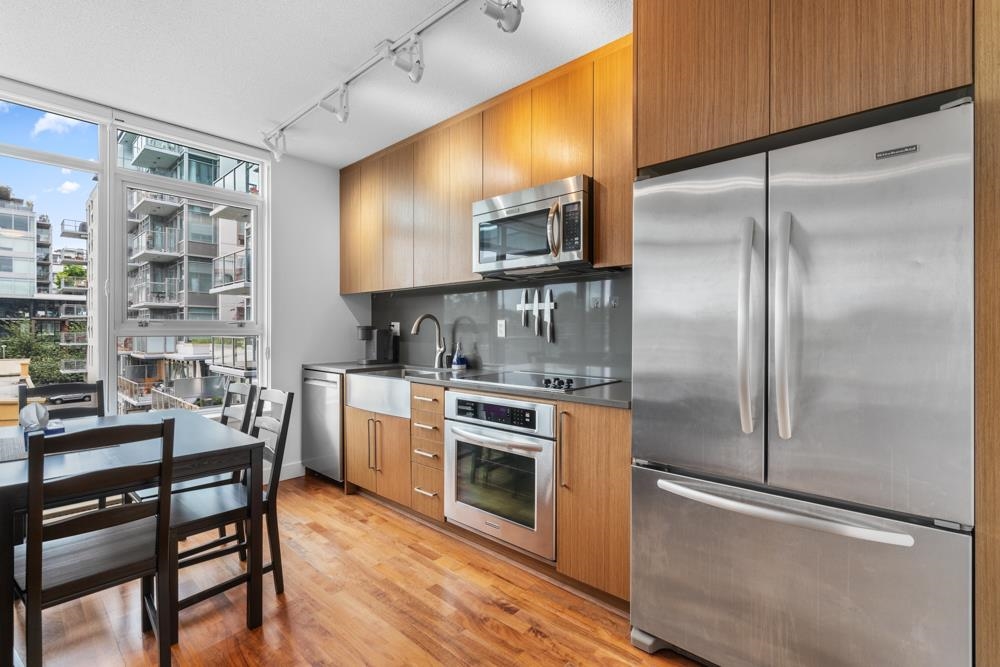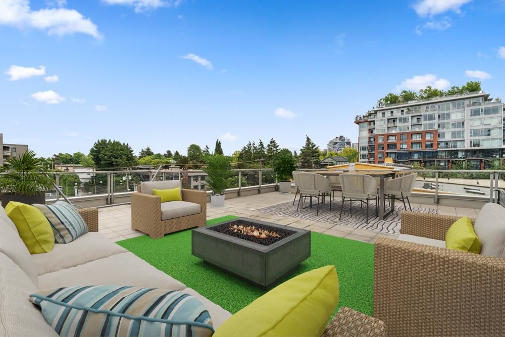 With over 1000 sq feet of private outdoor patio space just for you! Welcome to the District! This beautiful 1 bed 1 bath condo comes with modern finishings, recently painted, an open concept kitchen, Caesarstone quartz countertops, KitchenAid appliances, new dishwasher, 1 parking, and 1 storage locker. Great building amenities include full gym, meeting room, large rooftop deck area, garden plots with gorgeous downtown and water views. Close to: soon to be built St. Paul's Hospital (2026), trendy restaurants, breweries, shops, cafes, & Main St/Science World skytrain station. Some patio photos are virtually staged. Pet friendly. Currently tenanted on airbnb, can be a turn key operation!