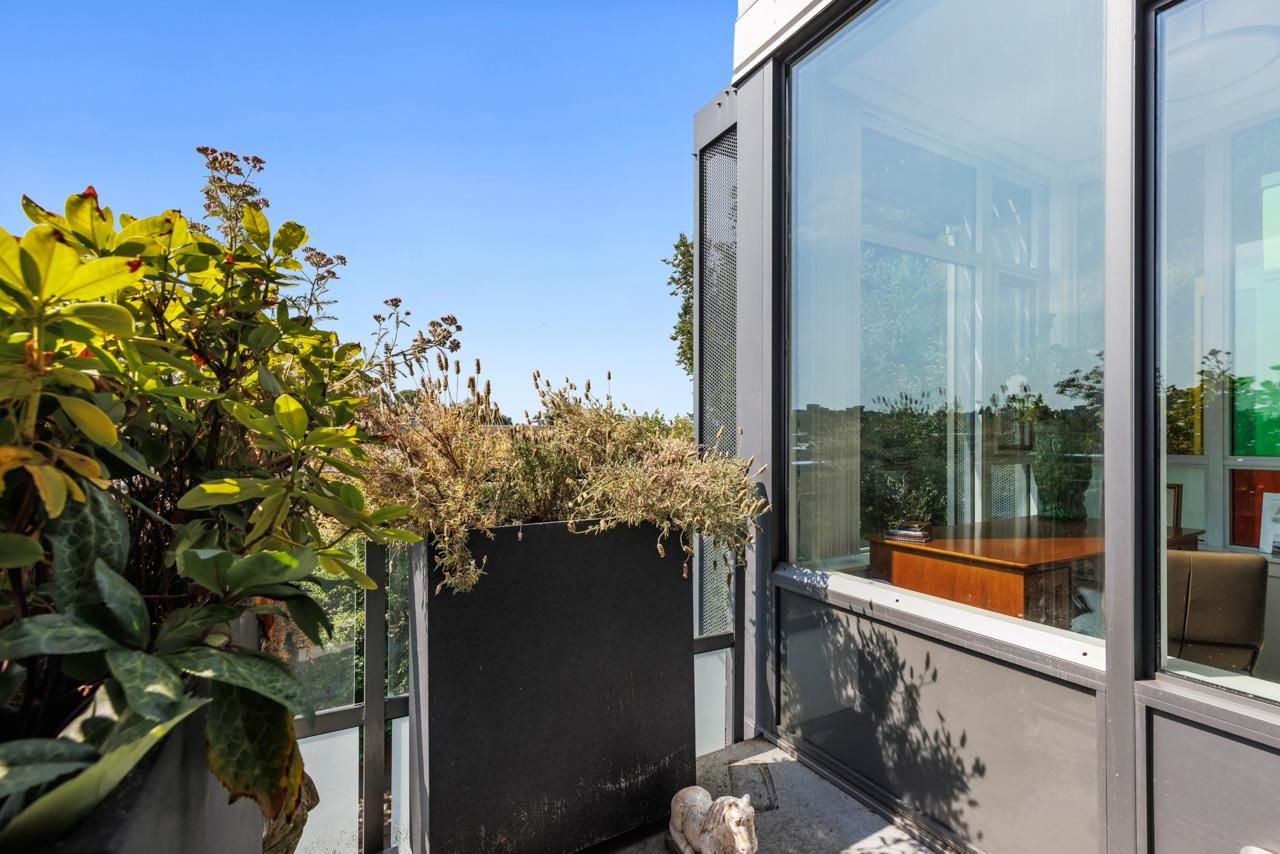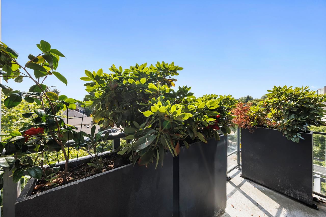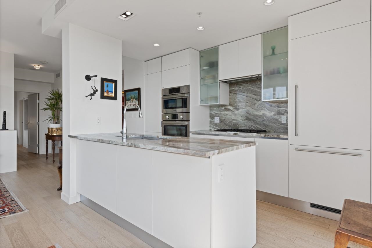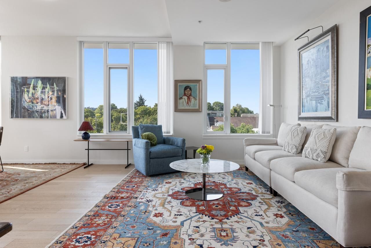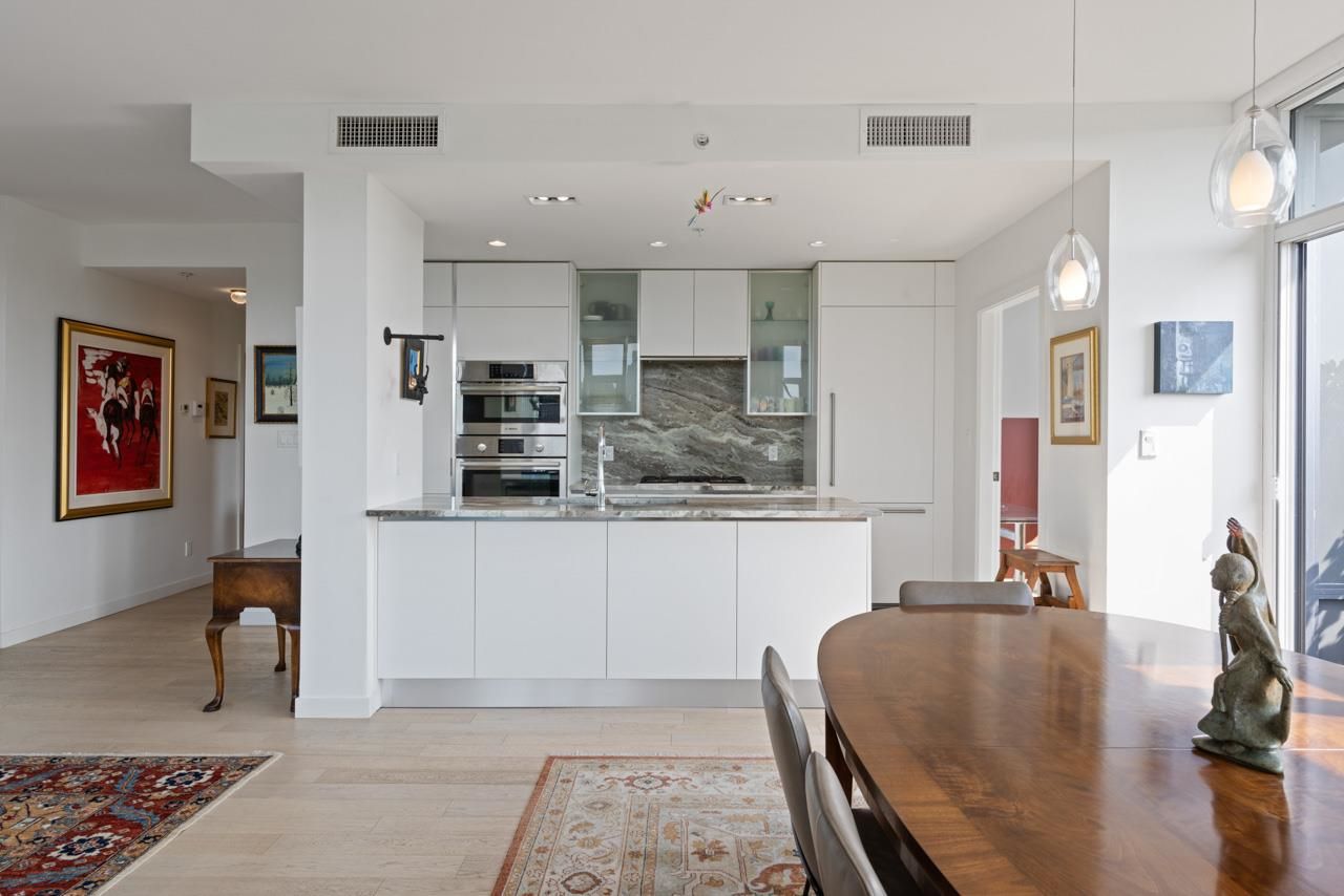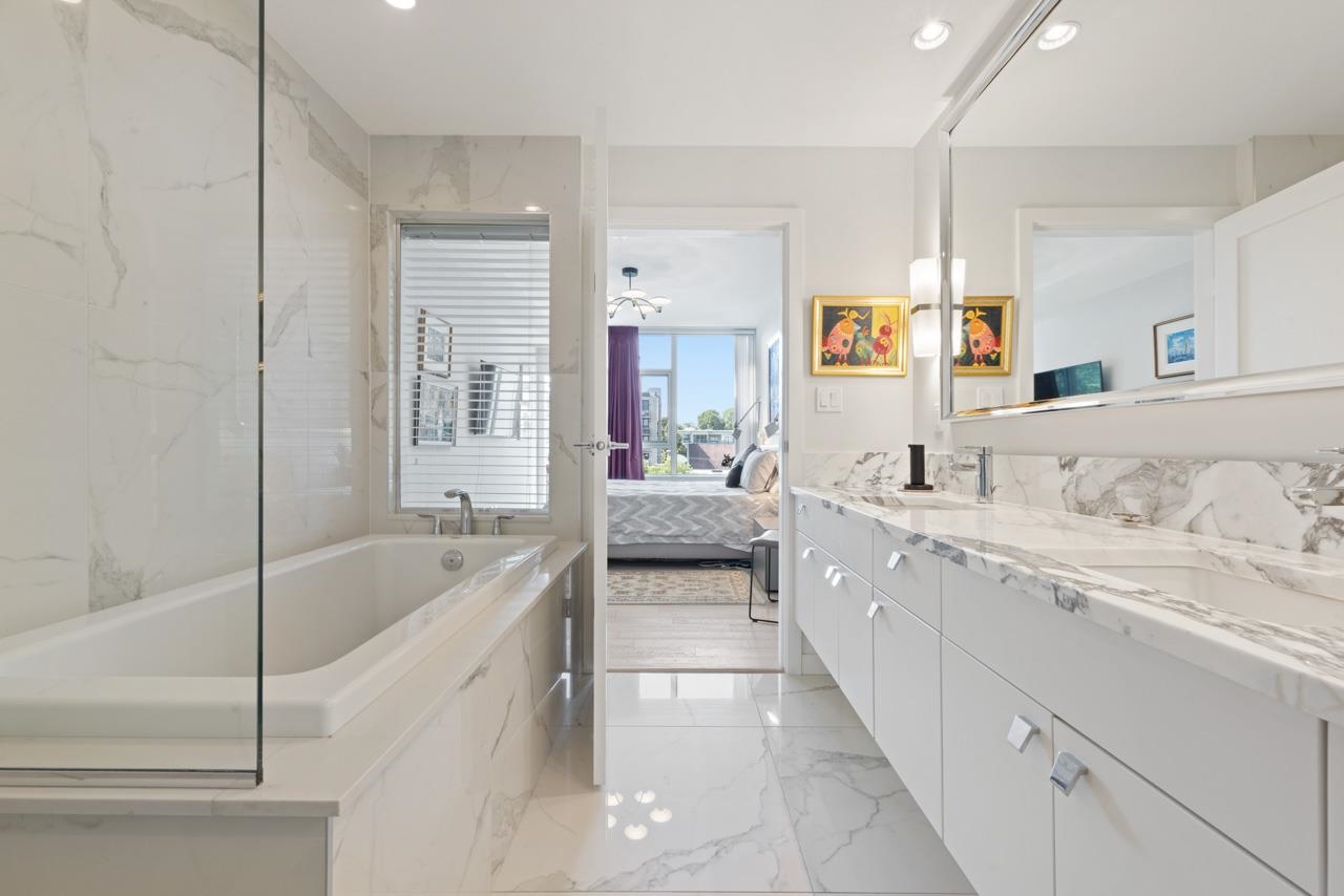 This stunning 3 bedroom corner unit offers an expansive 1615sqft floor plan all on one level. abundant natural light, and a charming treed outlook over a quiet street. The grand living/dining area with overheight ceilings compliments the entertainer’s kitchen, complete with stone counters, gas range, wall oven, integrated fridge, and wine cooler. Spacious primary bedroom with walk-in closet and spa-like 5 piece ensuite. Two generous secondary bedrooms, plus two solarium offices and pantry storage. Air conditioned. Well maintained 6 year old concrete building with gym and party room. 2 parking stalls, 2 storage lockers, and 2 bike stalls. Pets and rentals welcome.