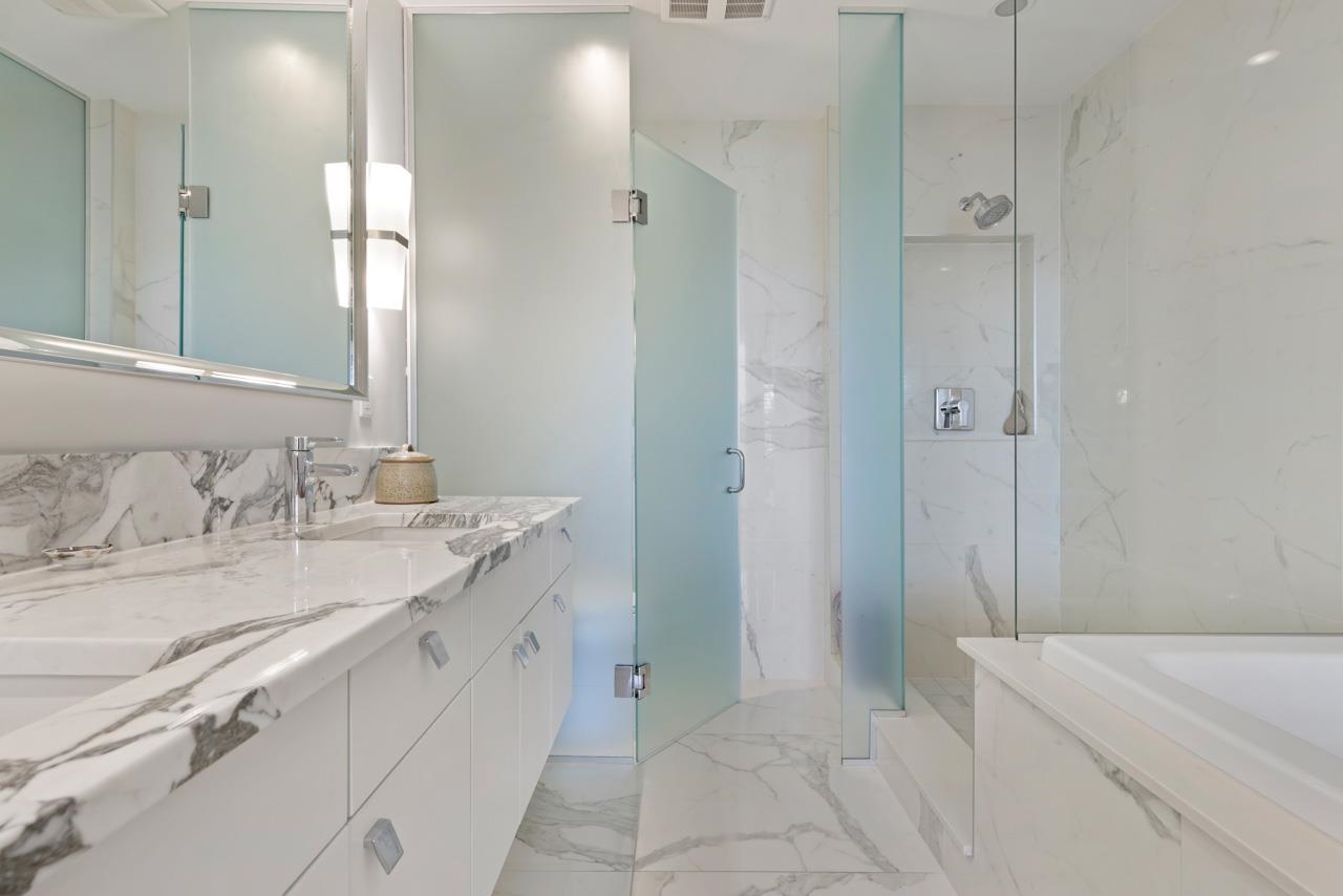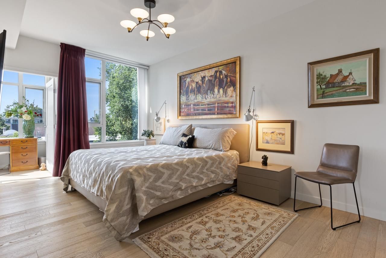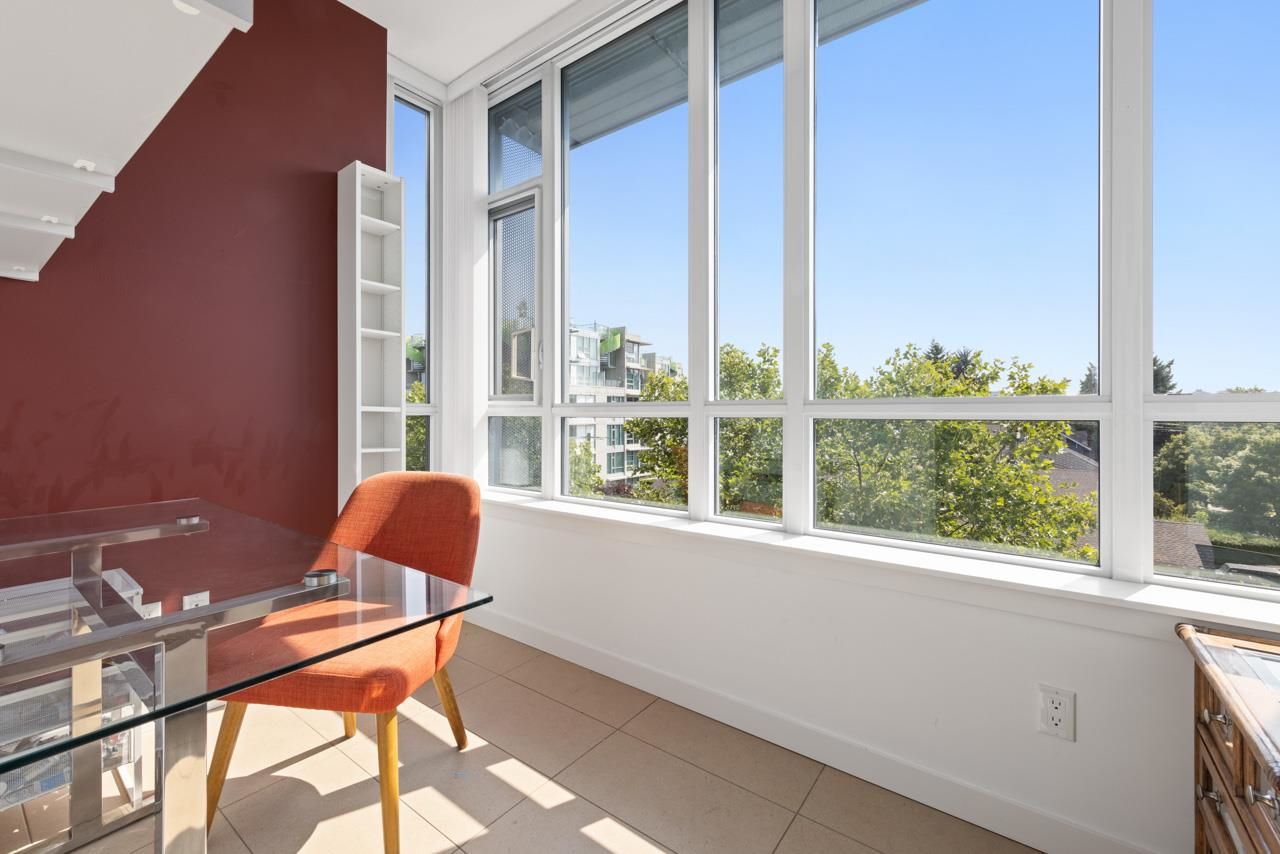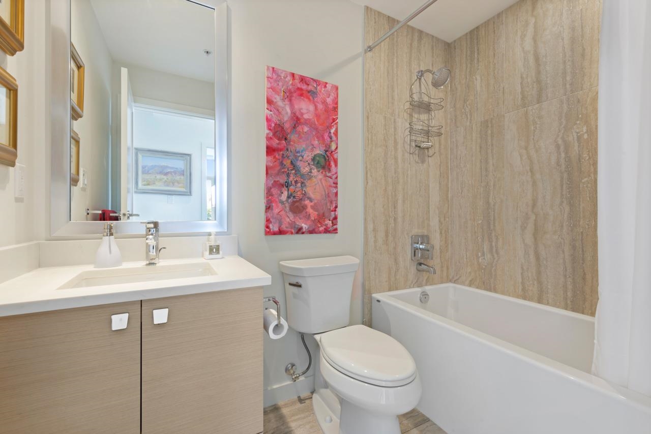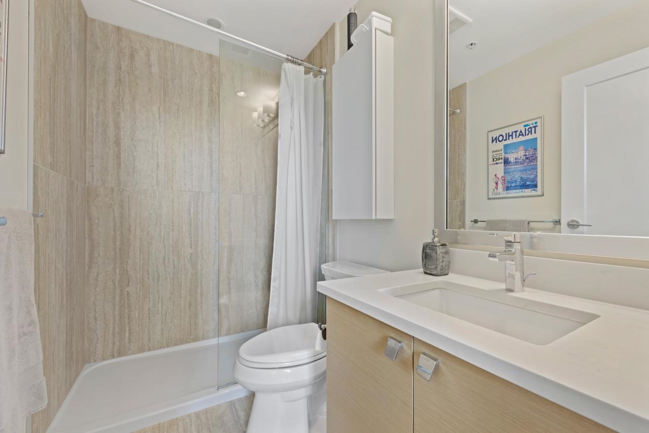 This stunning 3 bedroom corner unit offers an expansive 1615sqft floor plan all on one level. abundant natural light, and a charming treed outlook over a quiet street. The grand living/dining area with overheight ceilings compliments the entertainer’s kitchen, complete with stone counters, gas range, wall oven, integrated fridge, and wine cooler. Spacious primary bedroom with walk-in closet and spa-like 5 piece ensuite. Two generous secondary bedrooms, plus two solarium offices and pantry storage. Air conditioned. Well maintained 6 year old concrete building with gym and party room. 2 parking stalls, 2 storage lockers, and 2 bike stalls. Pets and rentals welcome.