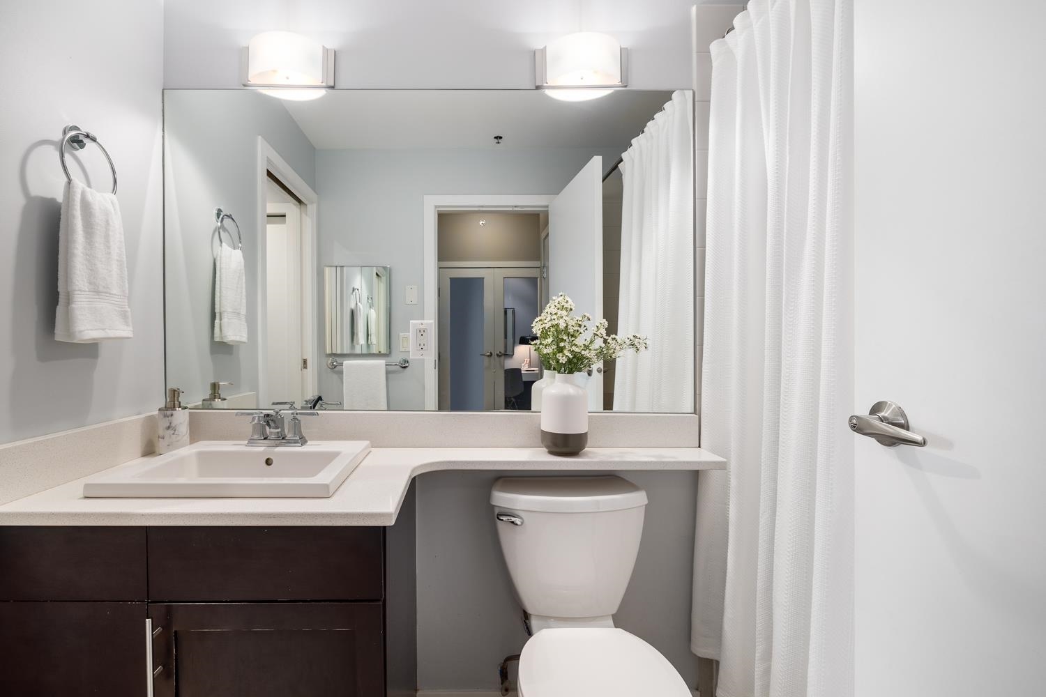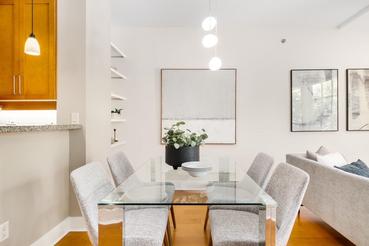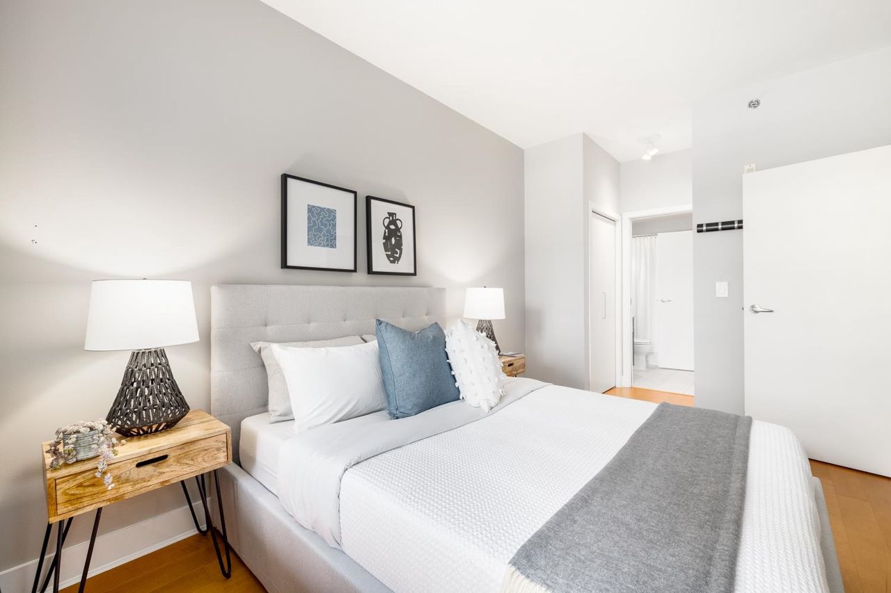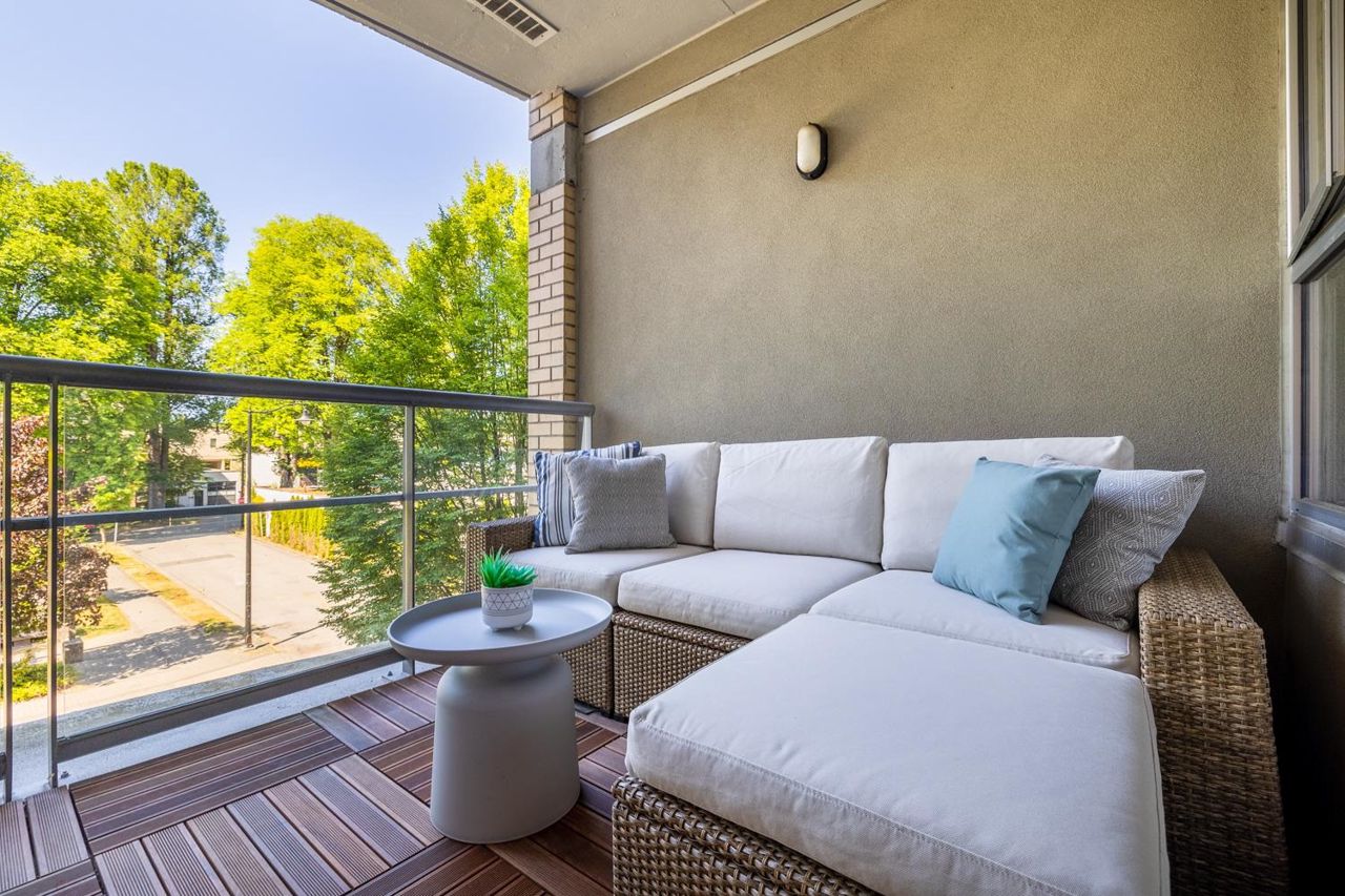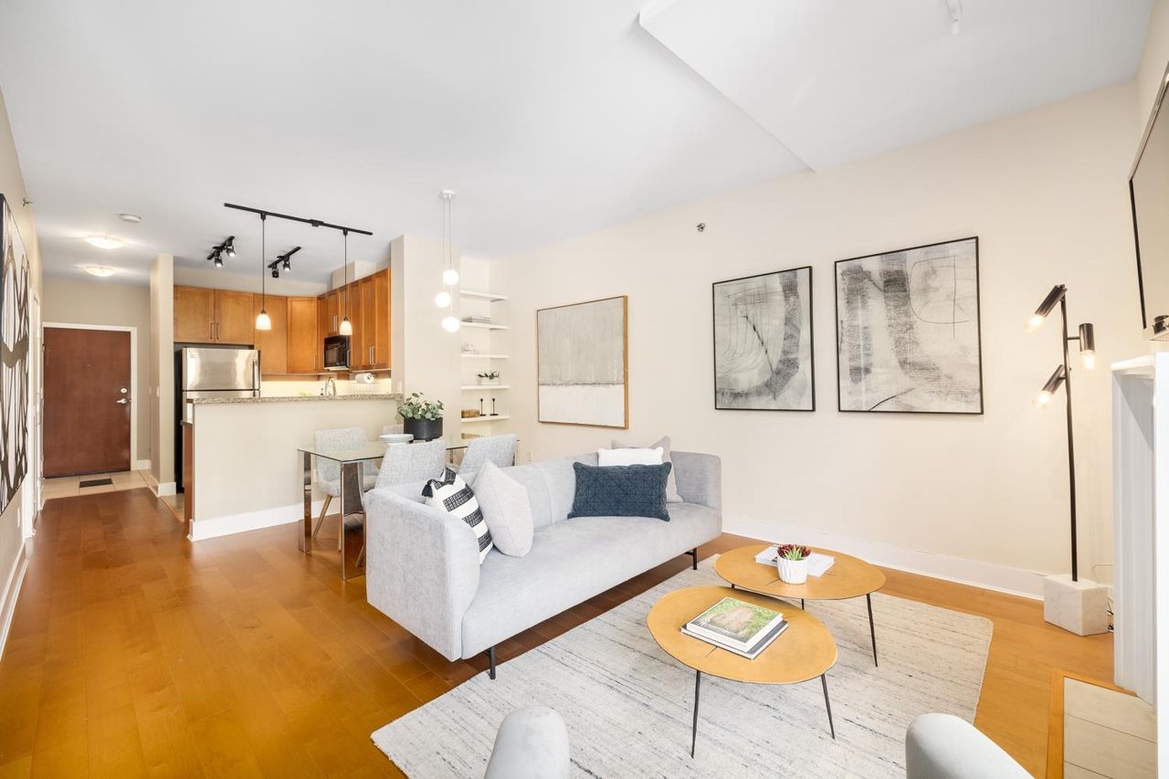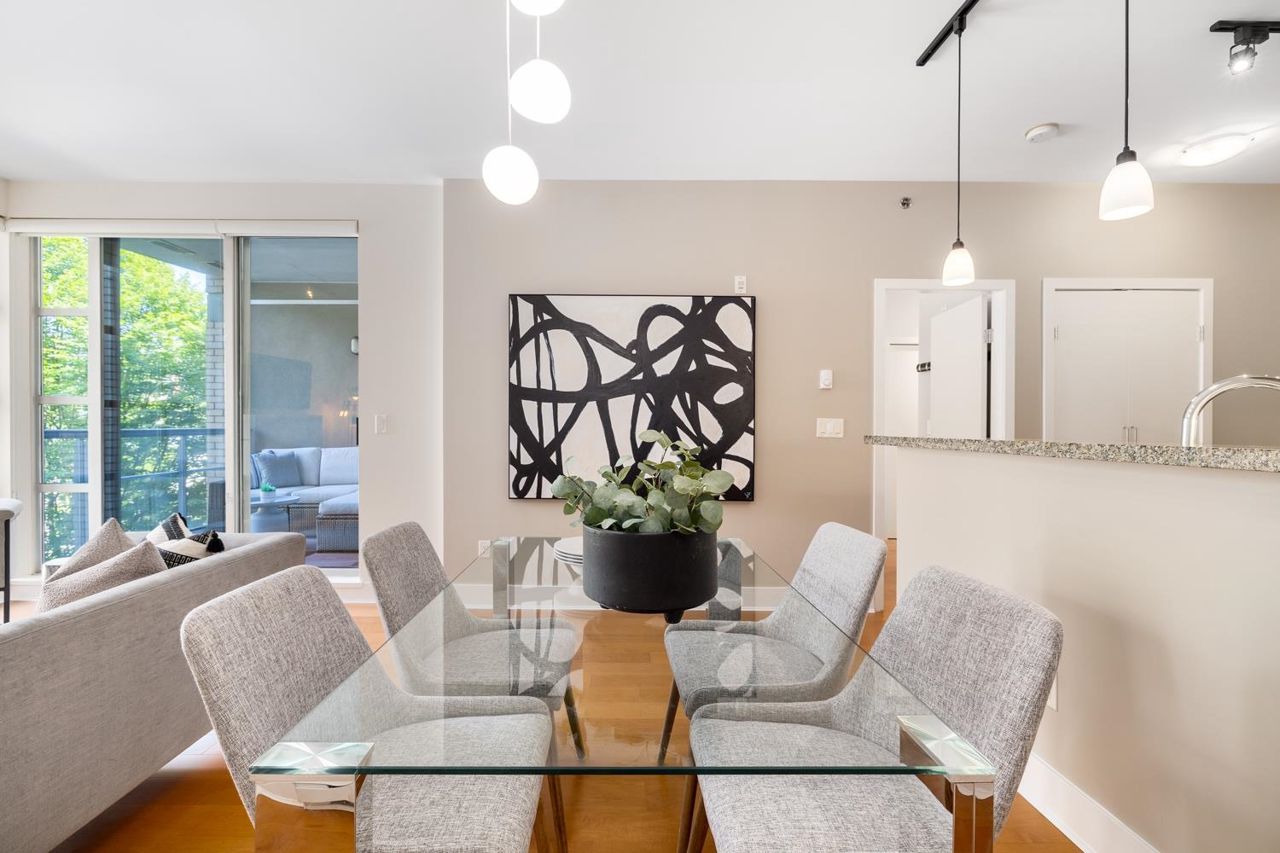 Welcome to the NEW YORKER…a concrete mid rise building in the Arbutus Walk neighbourhood. This spacious one bedroom & den of almost 700 SF has it all! New engineered hardwood floors throughout, custom roller shades, gas fireplace & range, front load washer/dryer, high ceilings plus a large covered patio. The chef inspired kitchen has ample cupboard space, maple cabinetry, updated stainless appliances & granite counter tops. The generous sized bedroom is a sanctuary with velvet floor to ceiling drapes, his & her wardrobes, private en-suite bath with a deep soaker tub. The location is second to none with bike paths, gardens & parks all around, public transportation, groceries, fabulous cafes & patisseries. Rentals & pets allowed with secure underground parking & car wash bay.
