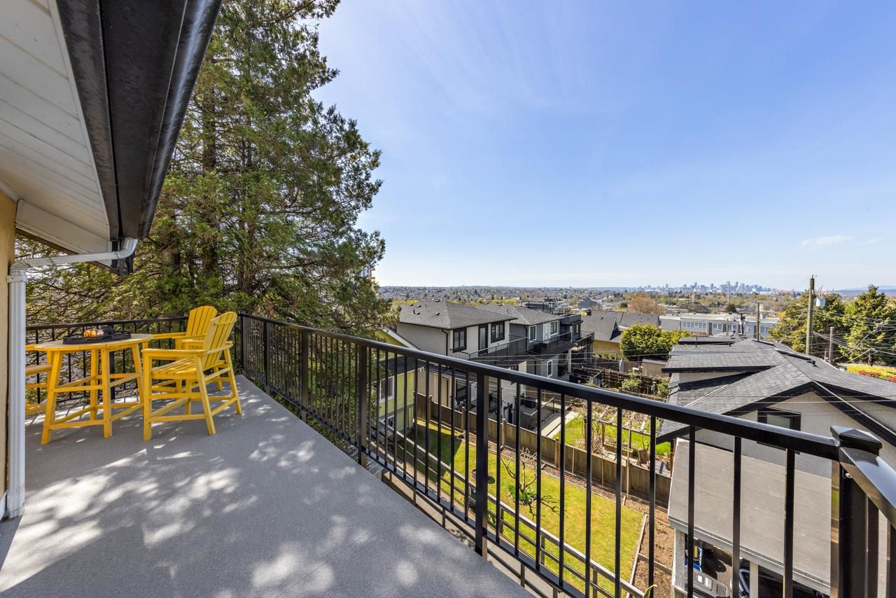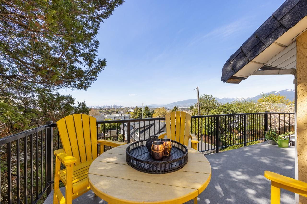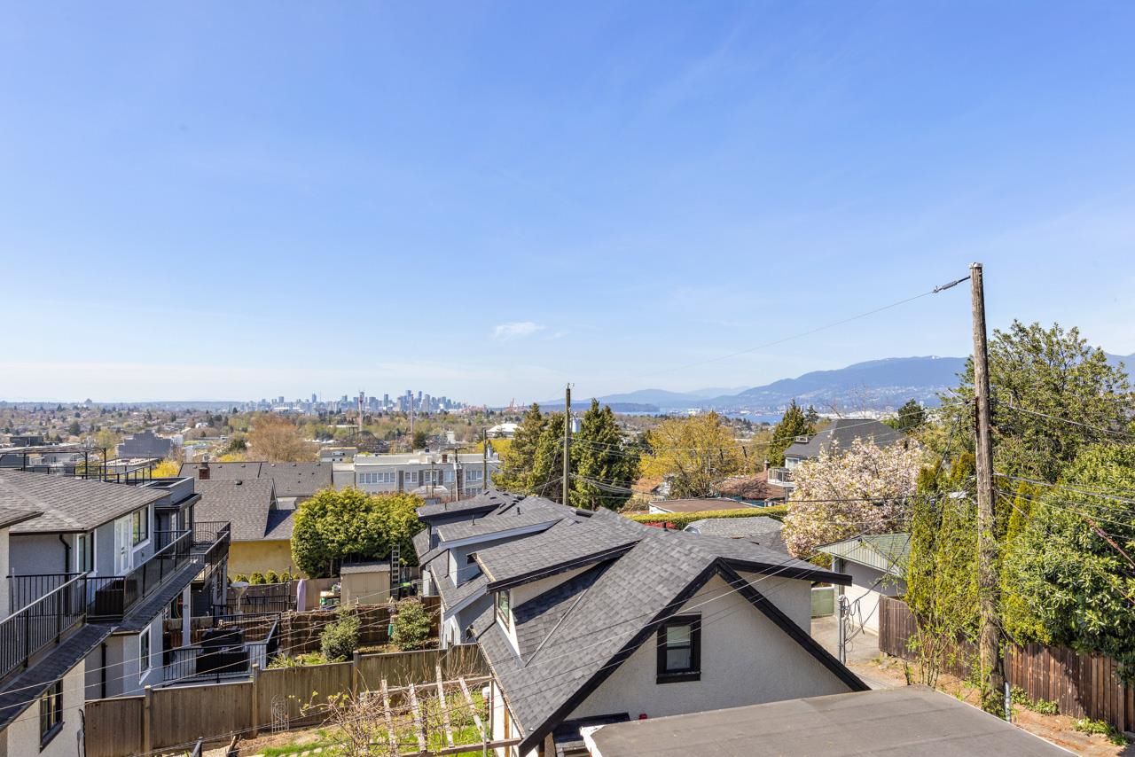 Hastings Sunrise character home with VIEWS! On the edge of Vancouver sits this unique 3 bedroom family home with studio suite and a priceless panoramic view over the city, ocean and mountains! Main floor offers a grand sitting room w/ fp, formal dining room and kitchen with access to 1 of 2 patios and the fenced yard. Up has the huge primary bedroom w/ walk-in-closet, 2 more well-appointed bedrooms, full bathroom & a nice new deck perfect for an evening cocktail while enjoying a stunning sunset! Below is a self contained suite with its own laundry. BONUS - attached single garage making for excellent storage, workshop or parking. Super walkable to transit, parks, schools, shops & eateries! This charming home has loads of character details & room for your growing family. Come see!