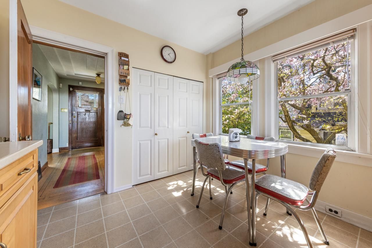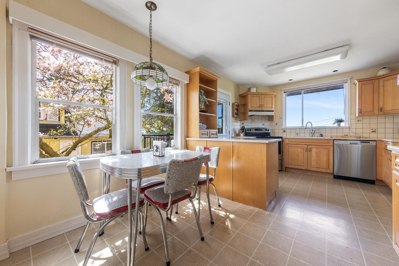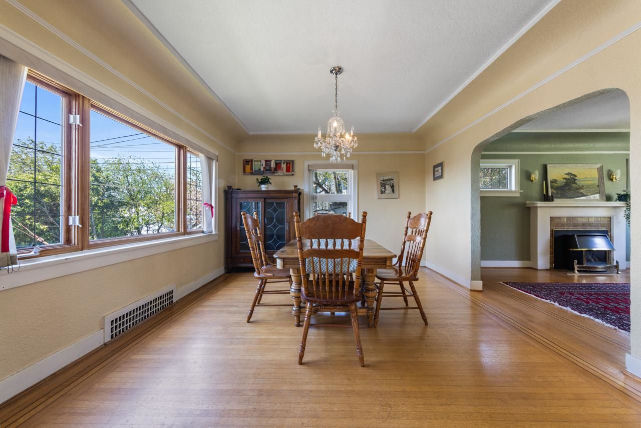 Hastings Sunrise character home with VIEWS! On the edge of Vancouver sits this unique 3 bedroom family home with studio suite and a priceless panoramic view over the city, ocean and mountains! Main floor offers a grand sitting room w/ fp, formal dining room and kitchen with access to 1 of 2 patios and the fenced yard. Up has the huge primary bedroom w/ walk-in-closet, 2 more well-appointed bedrooms, full bathroom & a nice new deck perfect for an evening cocktail while enjoying a stunning sunset! Below is a self contained suite with its own laundry. BONUS - attached single garage making for excellent storage, workshop or parking. Super walkable to transit, parks, schools, shops & eateries! This charming home has loads of character details & room for your growing family. Come see!