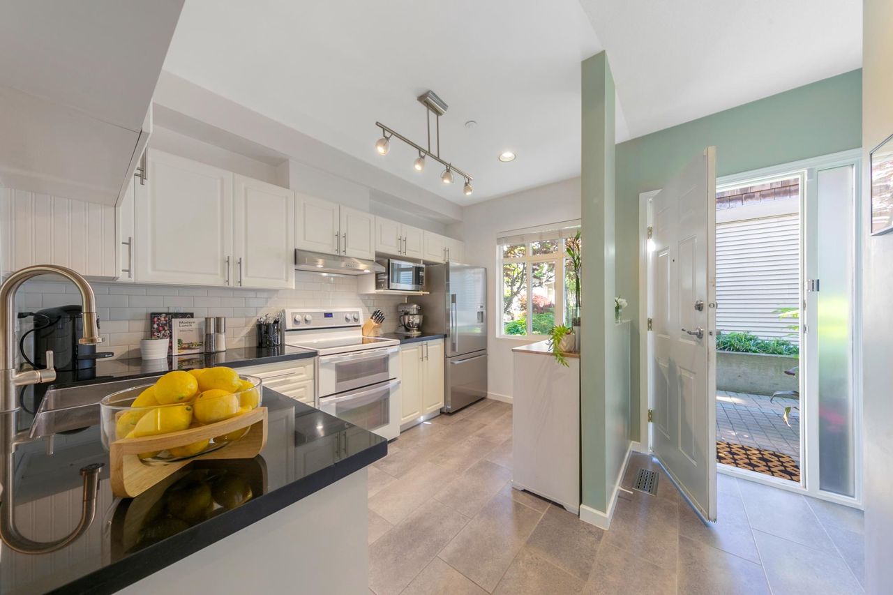 Welcome to Lighthouse Terrace on charming waterfront village located in the serene neighbourhood of Fraserview. This townhome offers1424 SF of living space that is bright & inviting. Features 8.5 ceilings, 3 bdrms, 2.5 bath, kitchen with upgraded granite countertops, spacious living/dining room with gas fireplace, updated vinyl floors & light fixtures, fenced garden patio & built in storage. The 2nd floor features 2 well sized bedrooms & a full bathroom. The master bdrm is on the 3rd level with stylish vaulted ceilings, sizeable ensuite & a private, enclosed rooftop deck. Basement provides direct access to your 2 parking & storage area with built-ins.Conveniently close to the Riverfront Park, trails, golf courses, tennis courts and to Canada Line skytrain. Open House May 20 & 21 CANCELLE