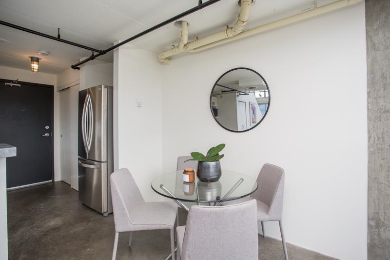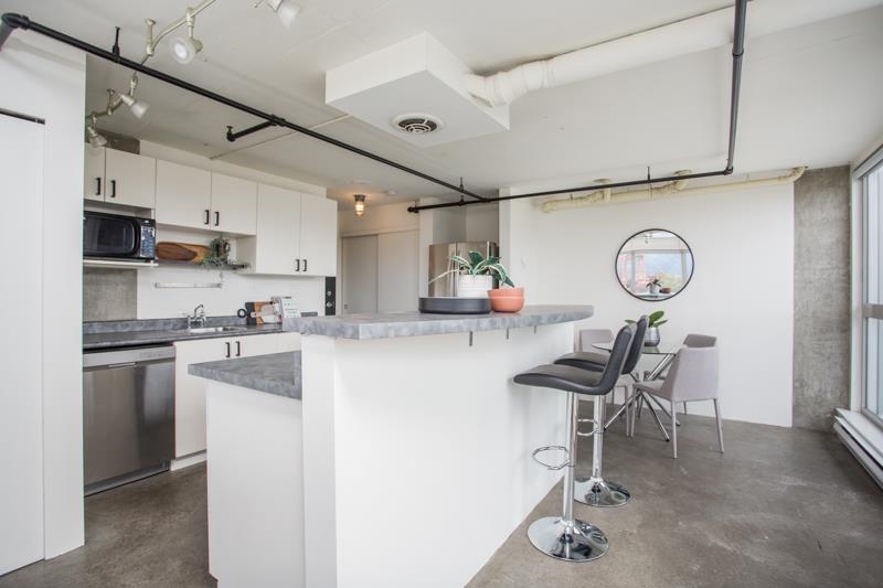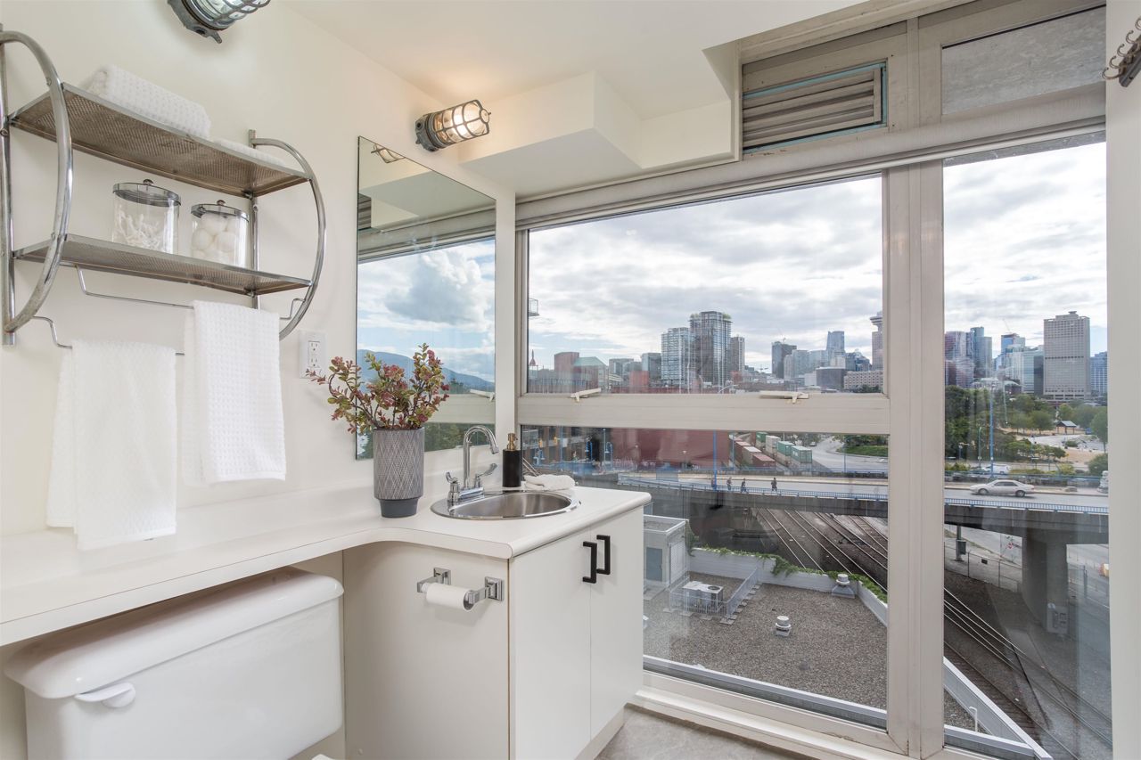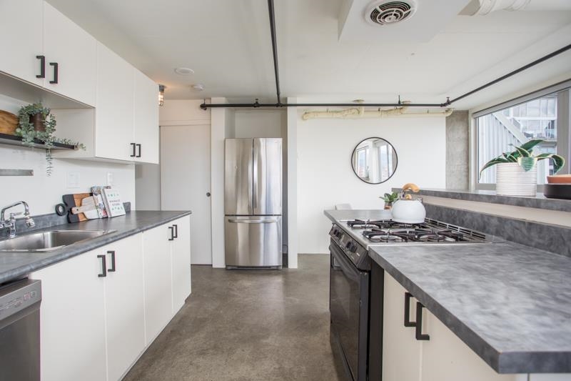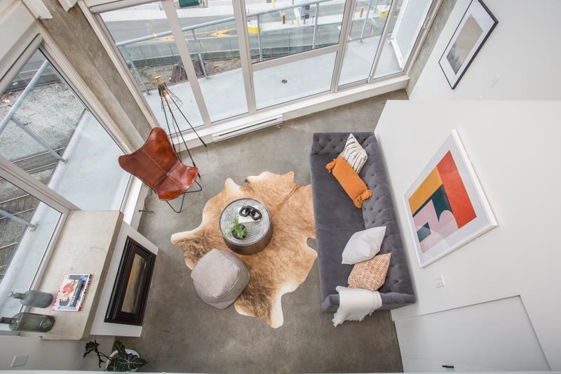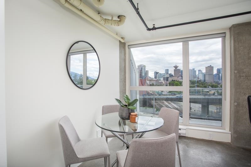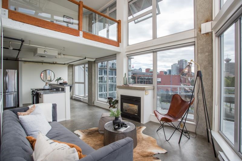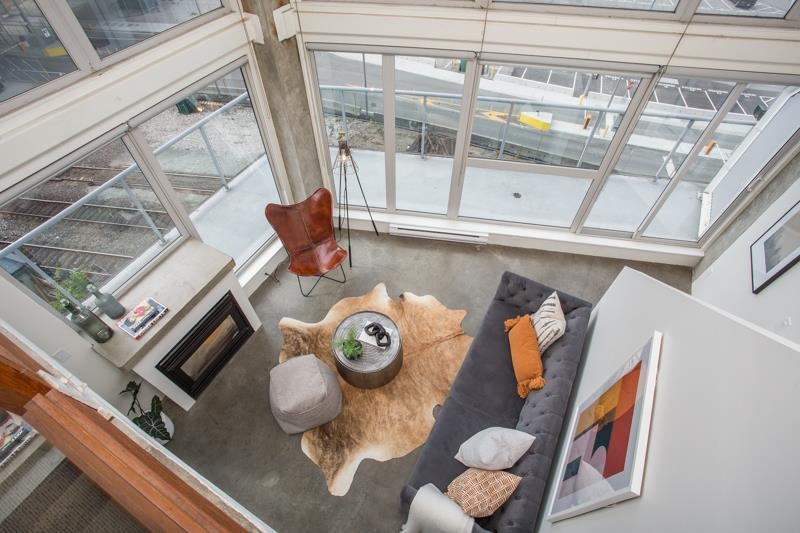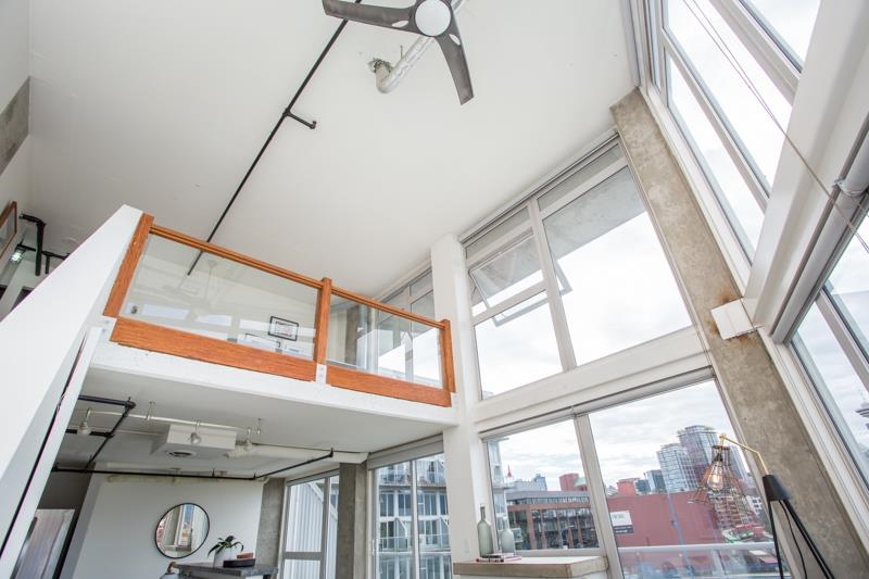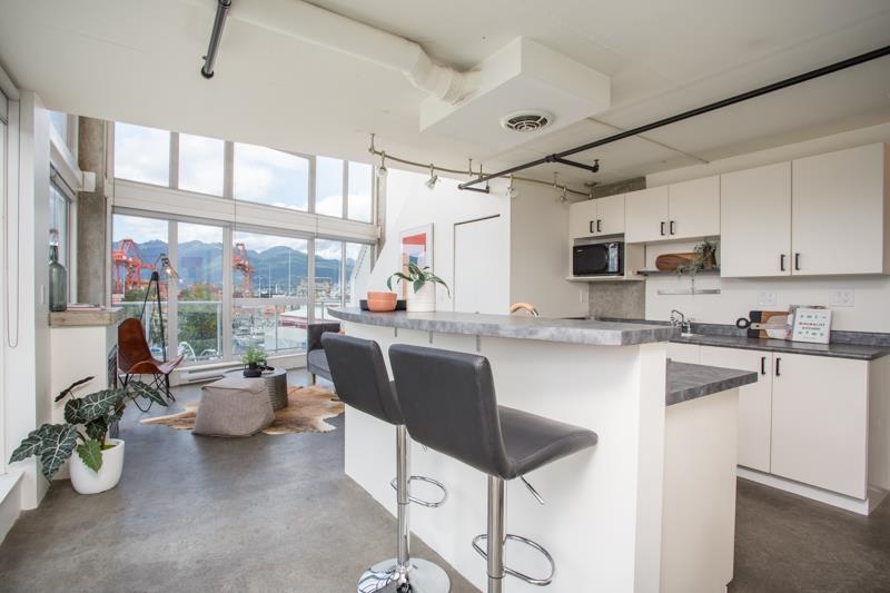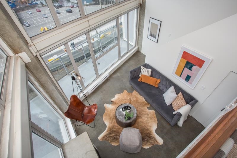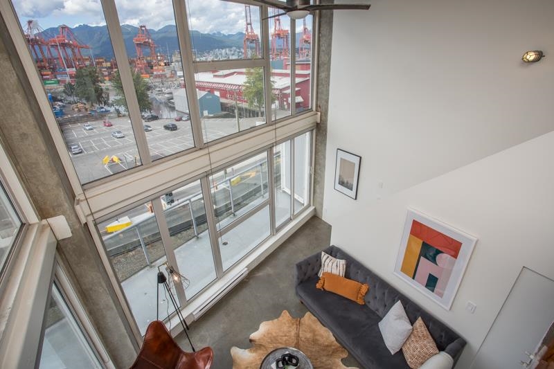 First time on the market! You’ll love this truly exceptional corner loft in the iconic EDGE building. This home presents an exquisite living experience w/ breathtaking views from Downtown & Burrard Inlet to Mount Seymour and you can take it all in from the expansive wrap-around patio. With soaring 16' ceilings, this home offers an abundance of natural light. It's a rare gem that promises a unique living experience for its future owner with unrivaled amenities: metal and woodworking shops, pottery and music studios + gym. Perched on the edge of Gastown, everything is at your door step: Ask for Luigi, Belgard Kitchen and Sunrise Market. The unit comes with 1 parking and the building allows rentals with a 30 day minimum. Open Houses: Sat & Sun July 29 & 30 2-4PM