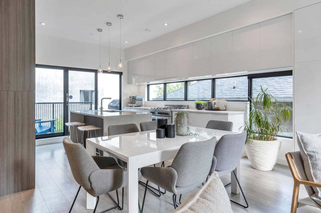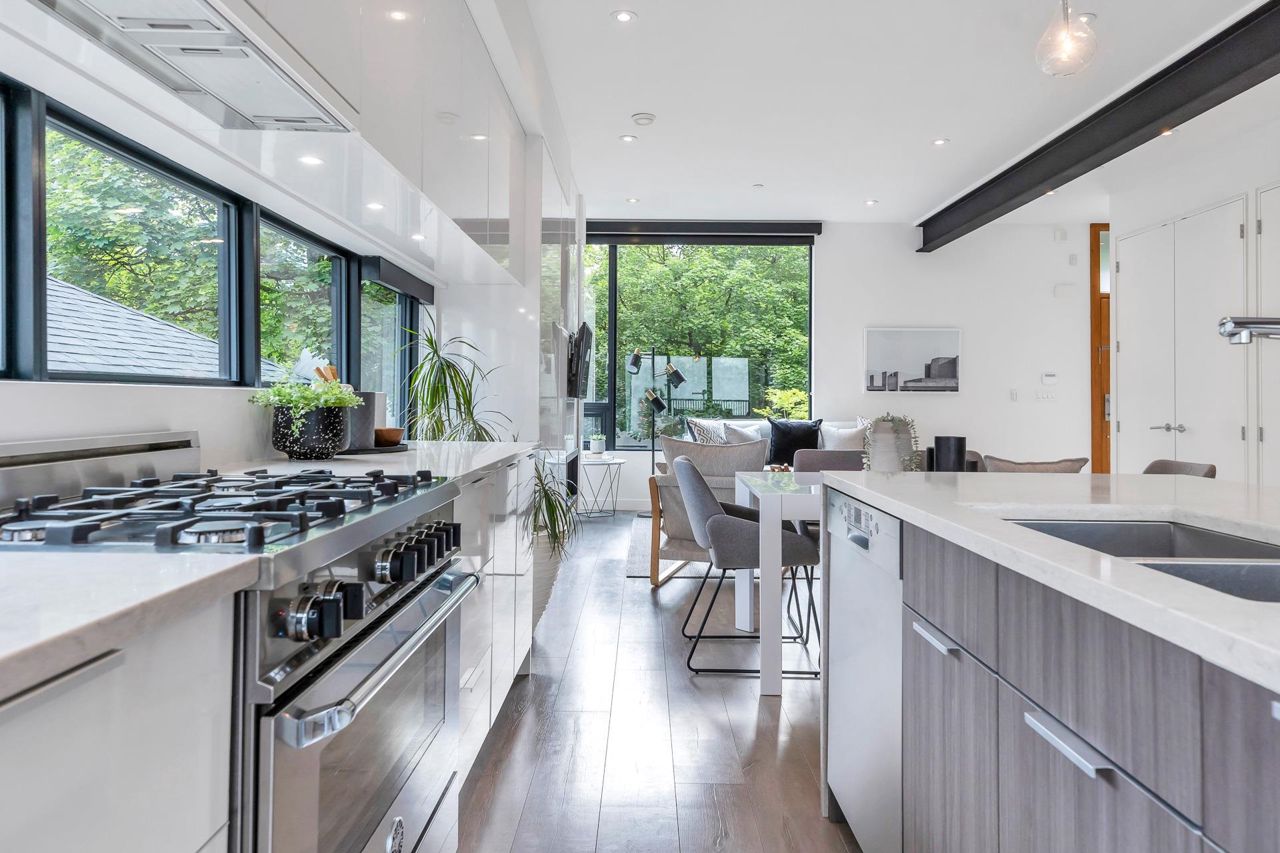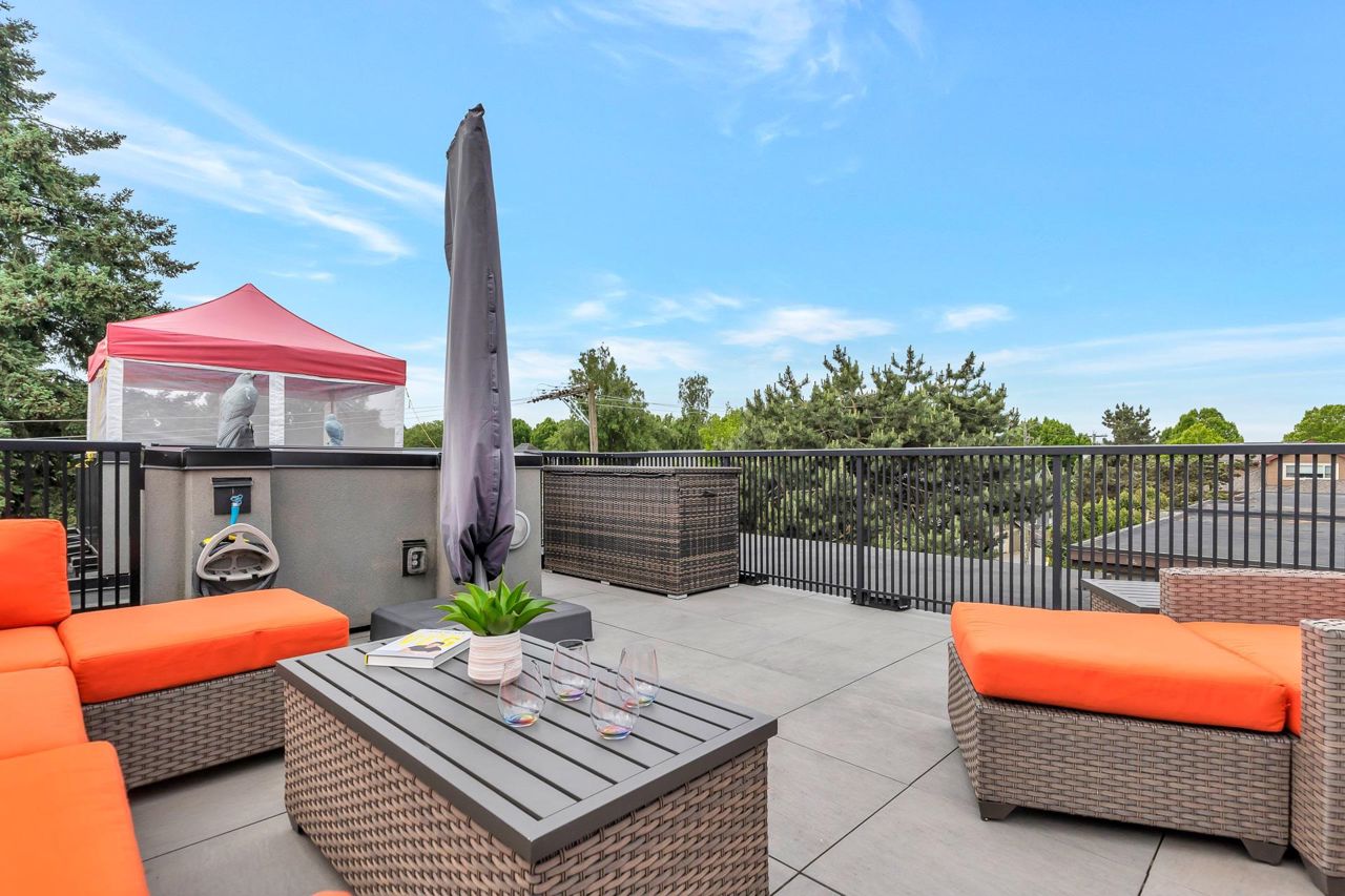 Exceptional WEST OF MAIN modern, architecturally designed 1/2 DUPLEX with VIEW ROOF TOP DECK! Main living offers light & bright open plan with over height ceilings, separate den/office & powder bath. Seamless kitchen features oversized window backsplash, 2 tone wood grain/white lacquer cabinets,equipped with high end appliances: Bertazzoni gas range, Bosch dishwasher, Fisher Paykel fridge plus built in microwave. Upper level provides 3 beds, 2 bath & laundry with access to LARGE 286 SQFT roof deck w/gas&water showcasing views of the city & mountains! Above ground lower-level offers bedroom & bath, currently set up as family room, roughed-in for bar. Attached garage EV Ready & outside storage. Great location steps to Mt. Pleasant Park & vibrant restaurants/shops of Main St.