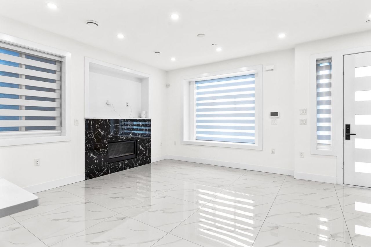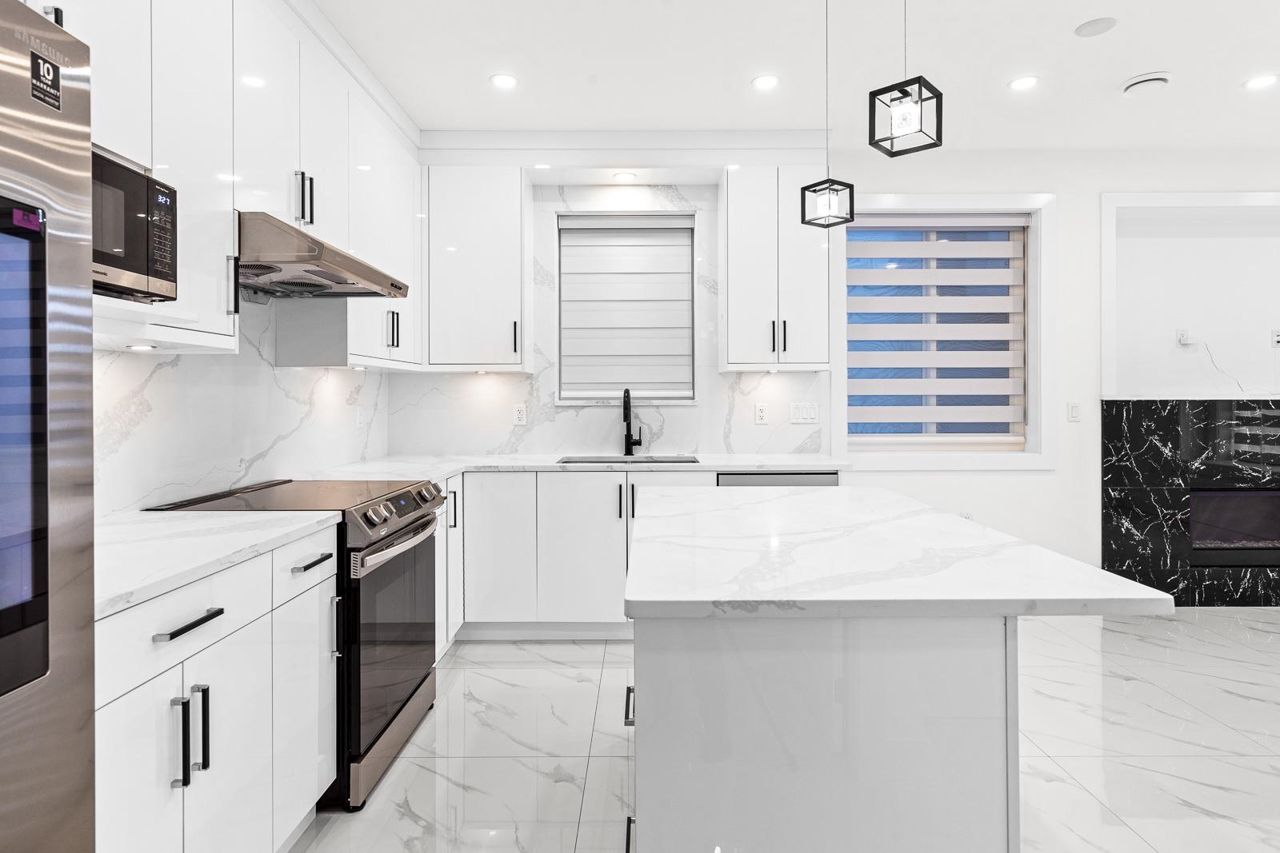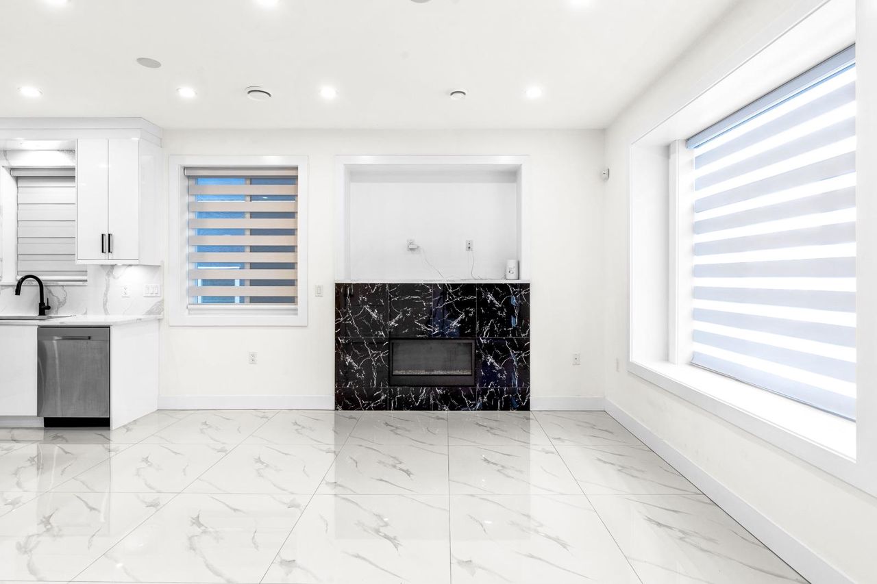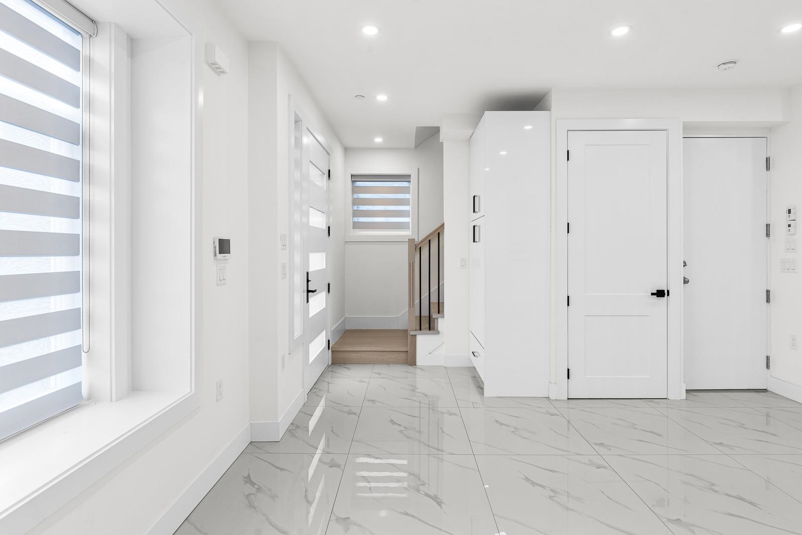 Located at most desirable South Vancouver area. Super Convenient location. Walking distance to Superstore. Close to skytrain station at Marine Gateway Shopping centre. Deluxe built Duplex with white color background material. Open Layout kitchen and living room, south facing High ceiling. Lots of windows, floor heating plus air conditioning, HRV. Large size three bedrooms and two full bath on second floor, one more full bath at main floor. Legal suite with kitchen full bath at basement. Separate entrance for tenants. Very good rental income. First choice for live in and investment.