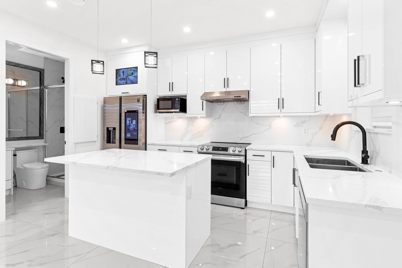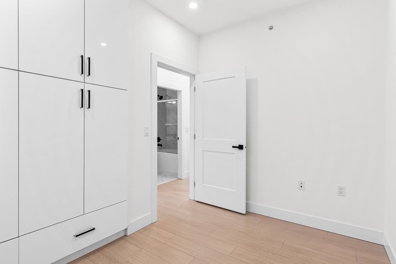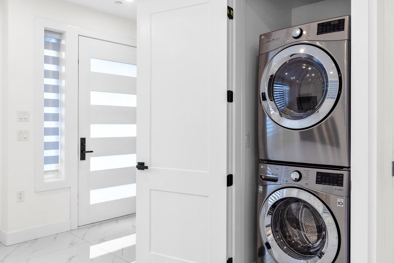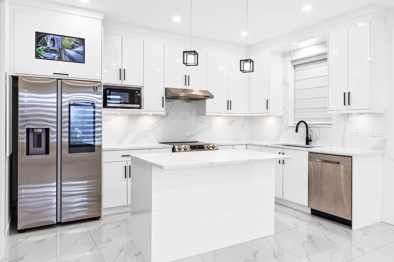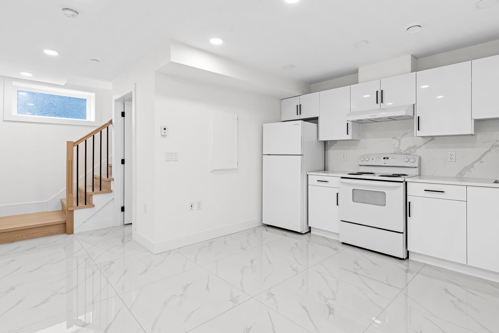 Located at most desirable South Vancouver area. Super Convenient location. Walking distance to Superstore. Close to skytrain station at Marine Gateway Shopping centre. Deluxe built Duplex with white color background material. Open Layout kitchen and living room, south facing High ceiling. Lots of windows, floor heating plus air conditioning, HRV. Large size three bedrooms and two full bath on second floor, one more full bath at main floor. Legal suite with kitchen full bath at basement. Separate entrance for tenants. Very good rental income. First choice for live in and investment.