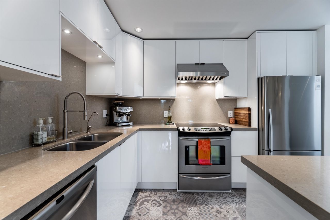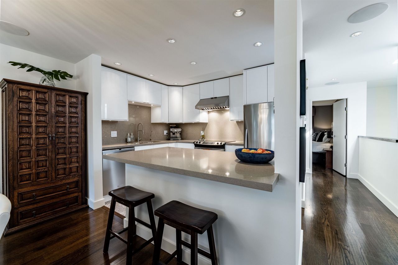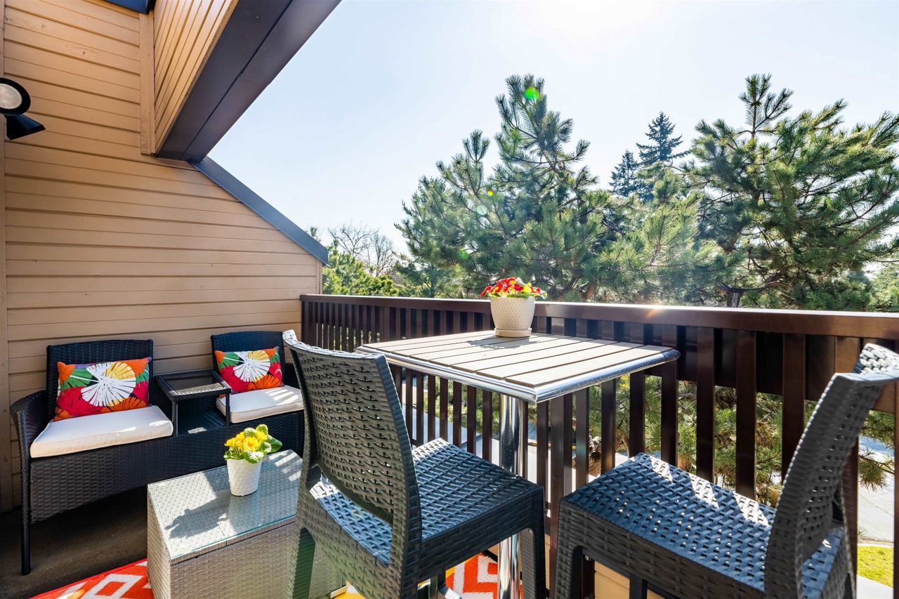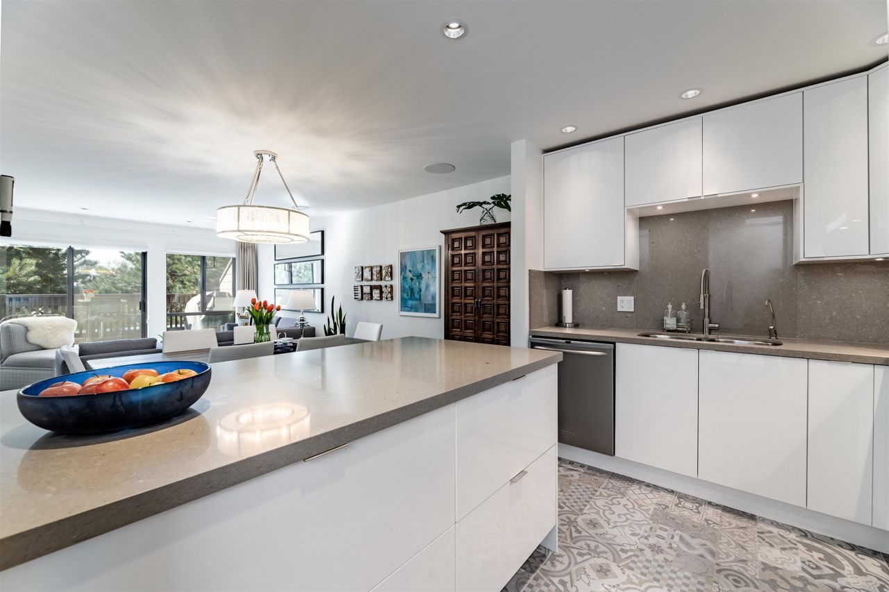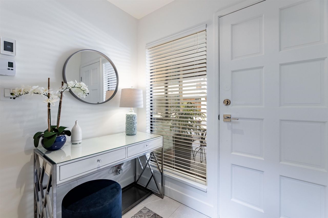 True WOW factor describes this home at Langara Court. Renovated with exquisite taste, this 2 bed (primary up, second below with murphy bed), 2 bath townhouse style unit awaits your move in date. Inside you’ll find a stunning home with an open kitchen with Caesar stone counters & backsplash, S/S appliances including Fisher Paykel Fridge, & soft-close pull out drawers & cabinets; oak H/W flooring up & heated tile floors down, beautifully appointed bathrooms, built in ceiling speakers, a thoughtfully designed built in pantry. The living room features built in cabinets, custom roller shades, & south facing patio. Two entrances, one leading to large open courtyard. Indoor pool, sauna & located next to Canada Line, Langara Golf Course,bus routes &close to Oakridge Mall.
