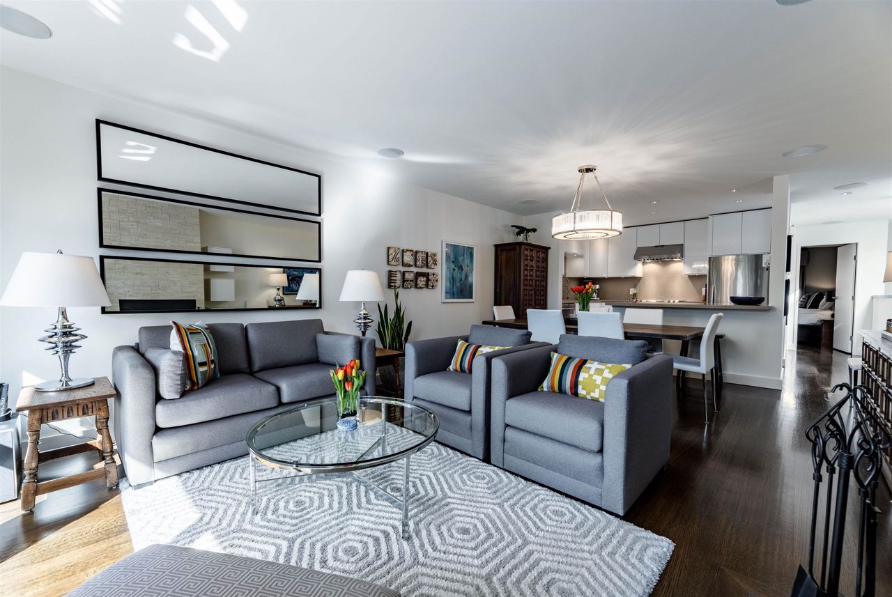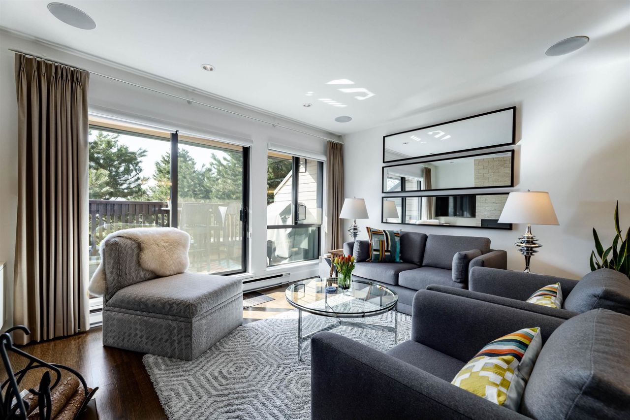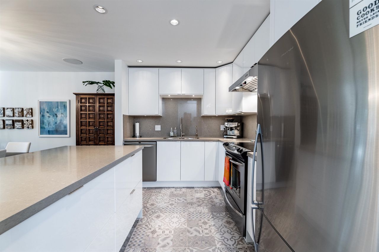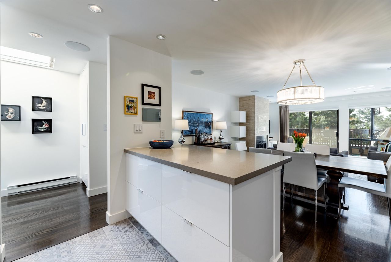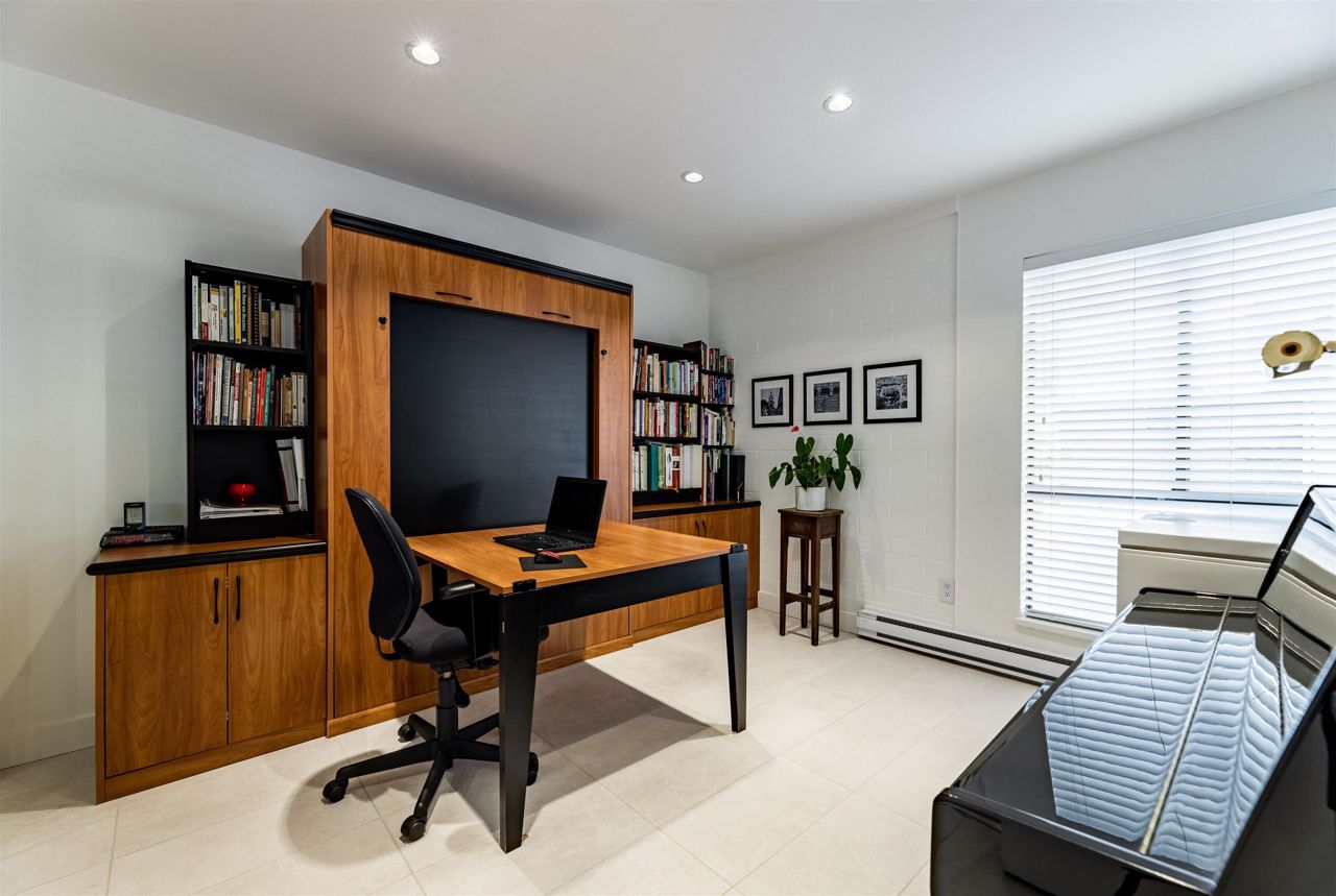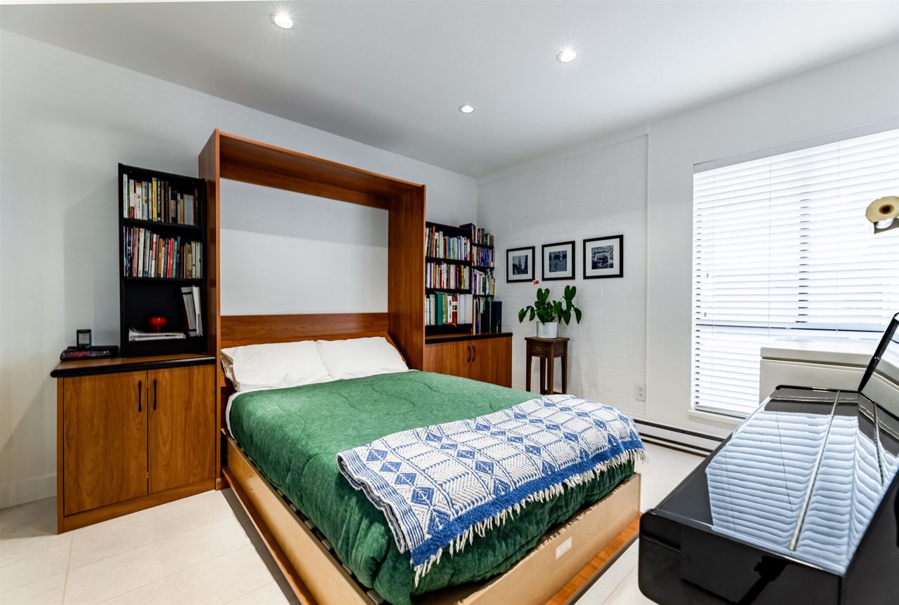 True WOW factor describes this home at Langara Court. Renovated with exquisite taste, this 2 bed (primary up, second below with murphy bed), 2 bath townhouse style unit awaits your move in date. Inside you’ll find a stunning home with an open kitchen with Caesar stone counters & backsplash, S/S appliances including Fisher Paykel Fridge, & soft-close pull out drawers & cabinets; oak H/W flooring up & heated tile floors down, beautifully appointed bathrooms, built in ceiling speakers, a thoughtfully designed built in pantry. The living room features built in cabinets, custom roller shades, & south facing patio. Two entrances, one leading to large open courtyard. Indoor pool, sauna & located next to Canada Line, Langara Golf Course,bus routes &close to Oakridge Mall.