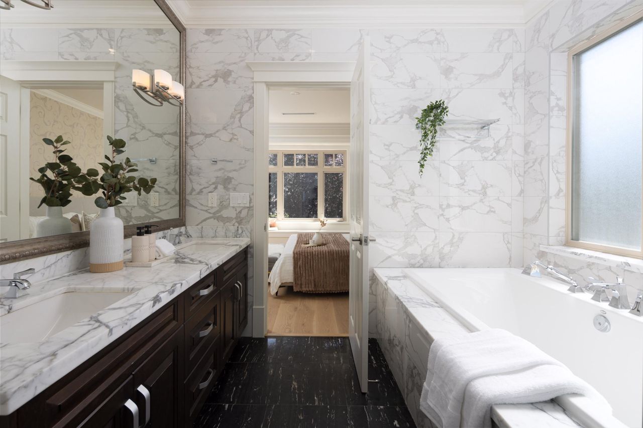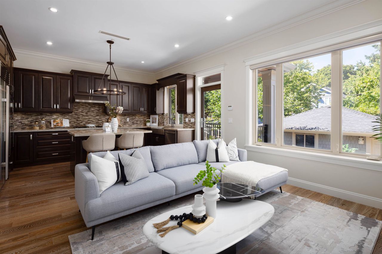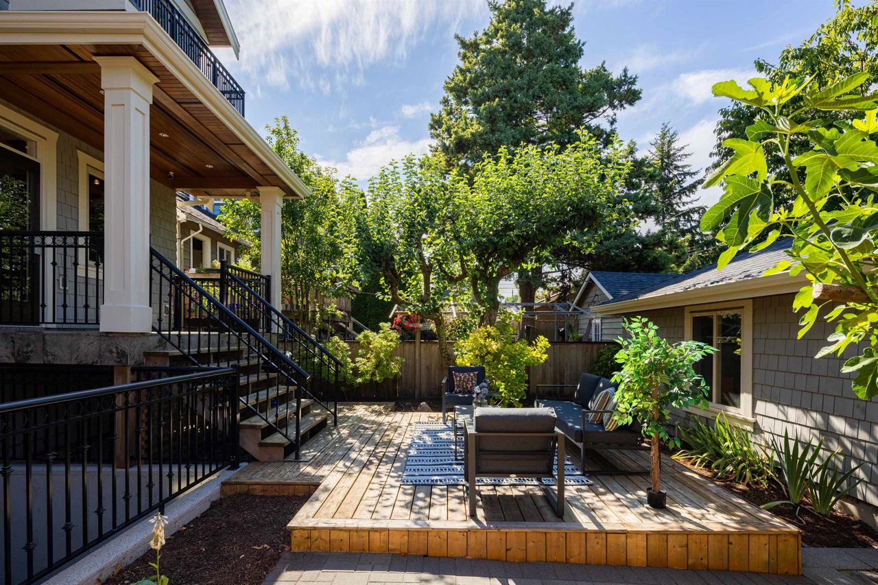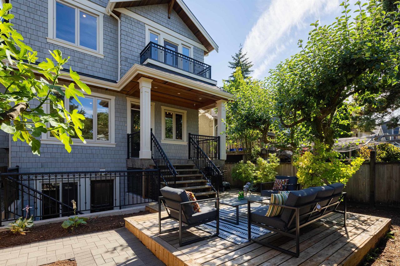 Stunning home in the prestige Dunbar neighborhood. Over 2800 sq. Ft. of luxury living built with supreme material & workmanship and attention to details. This home features 10' high ceilings on main, hardwood floors throughout, contemporary light fixtures, gourmet kitchen with high end S/S appliances & huge center island, A/C, HRV. Upstairs with 3 ensuite bedrooms .South facing master suite with a large walk-in closet. Basement has a recreation room for entertaining. 2 bedrooms self contain suite with separate entrance. Large private backyard with fruit trees, well maintain garden and BBQ hood up; extra width 2 car detached garage. 2 blocks to Kitchener Elementary; Lord Byng Secondary School catchment. Easy to access to transit, St. George School, York House School,UBC, shopping and more.