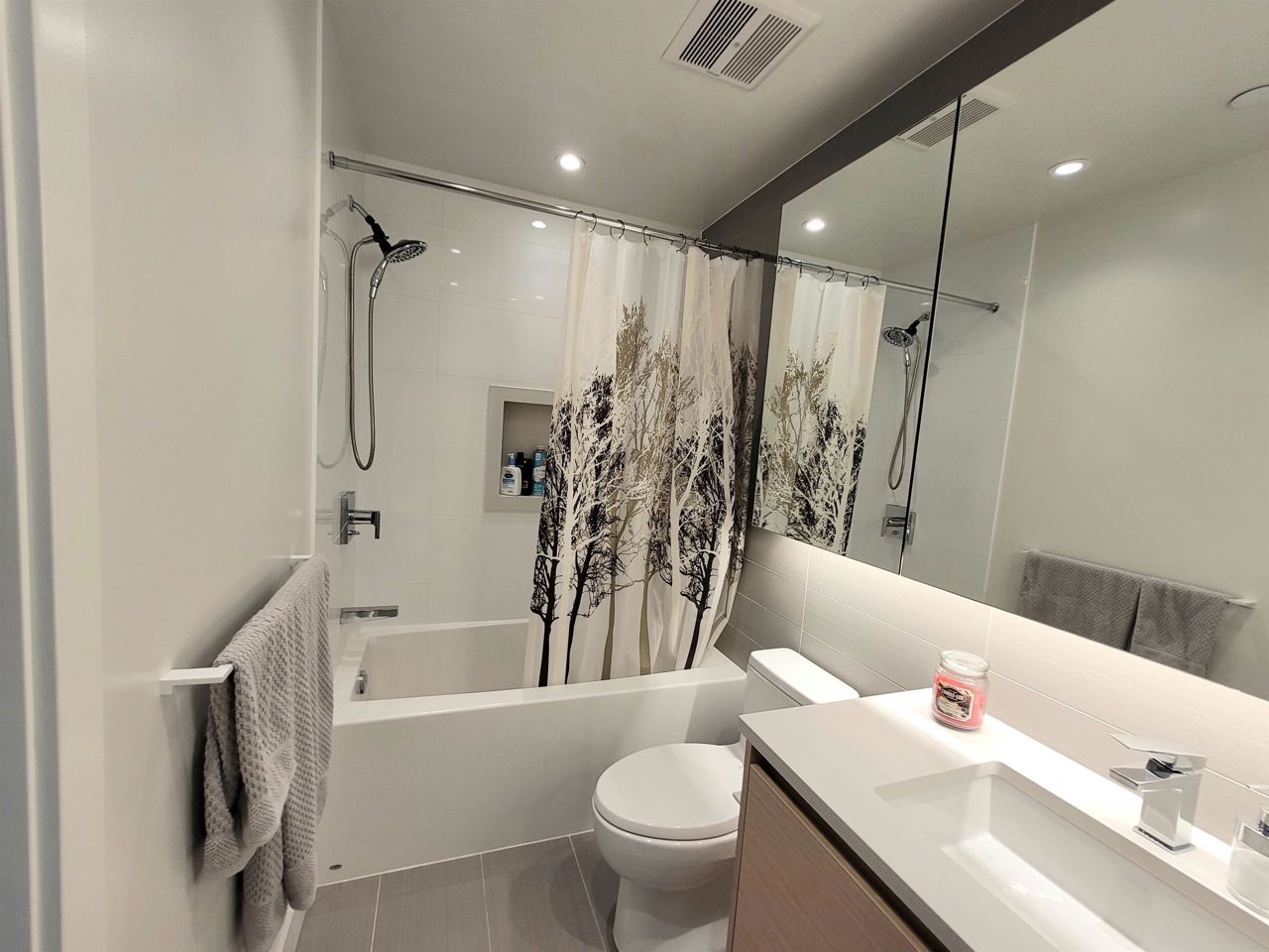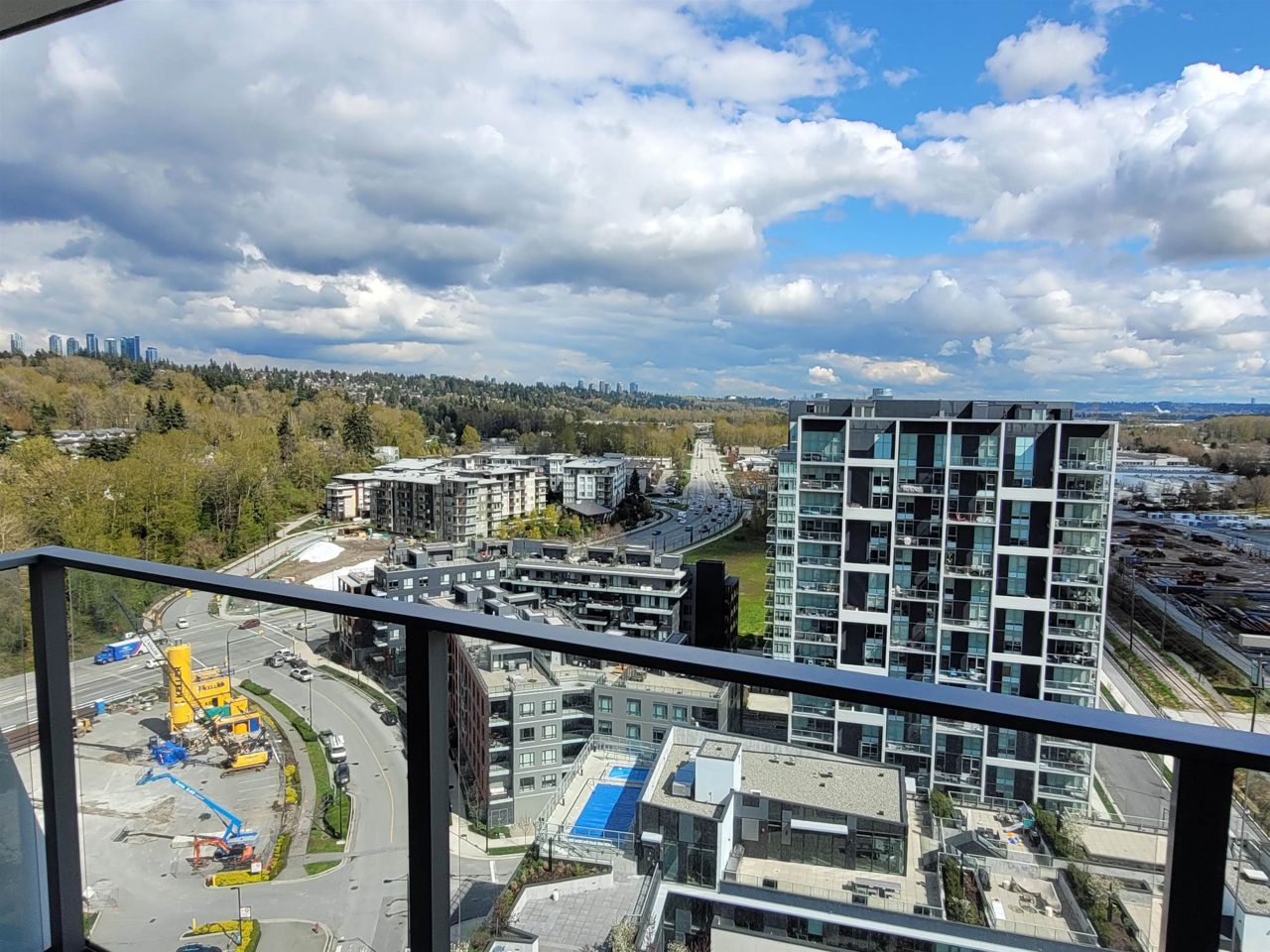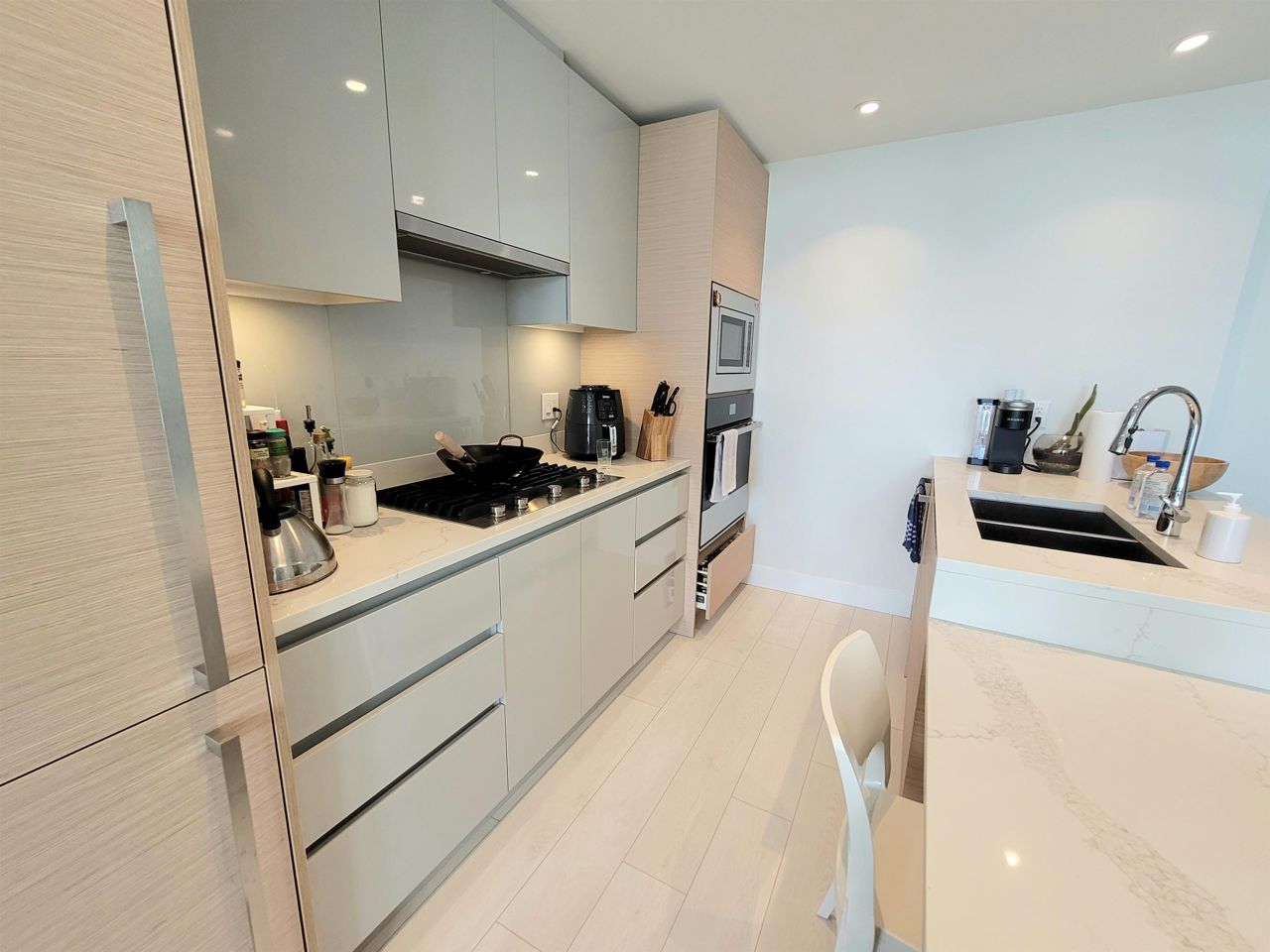 Centrally located Avalon 3 has abundance of luxurious high-end amenities with concierge srvc. This 1 bed+Den unit has modern design high-end finishes, state-of-the-art fully integrated Bosch SS appliances, wifi-controlled thermostat, kitchen with sleek cabinetry, ample storage, quartz backsplash & waterfall countertop. Spacious bedroom and the bathroom features elegant fixtures and radiant heated flooring. This bright and spacious unit on the 18th flr with large windows boast a stunning Mountain and River view. Comes with a unique full carpark stall with EV chrg, located next to elevator. The bldg has 10000sf rooftop terrace, outdoor pool, BBQ, full gym, 20000sf courtyard, 2 guests suite, dogwash stn + more. Just 10mins from skytrain, bus-stop right next door, near shopping, cafe etc.
