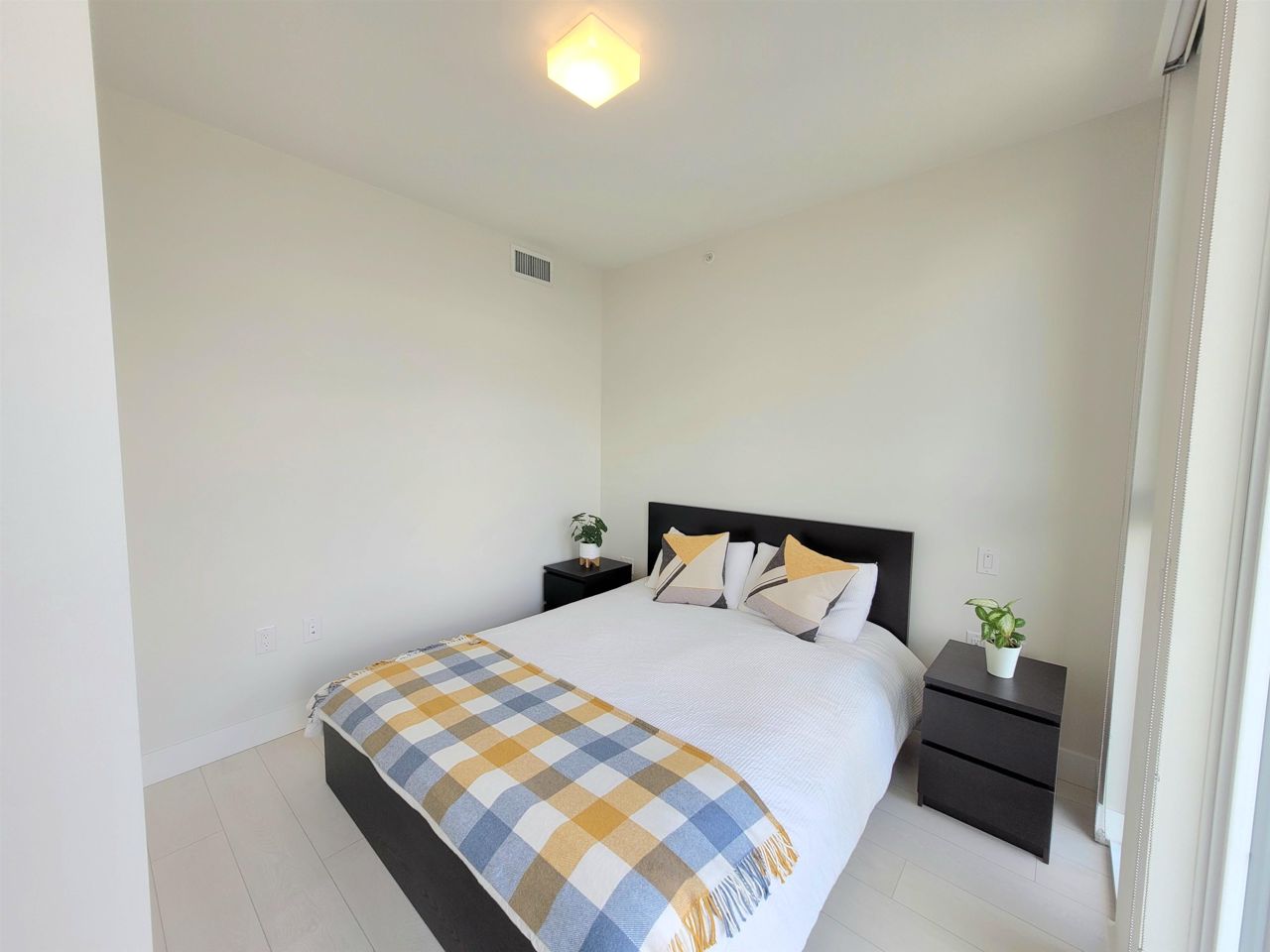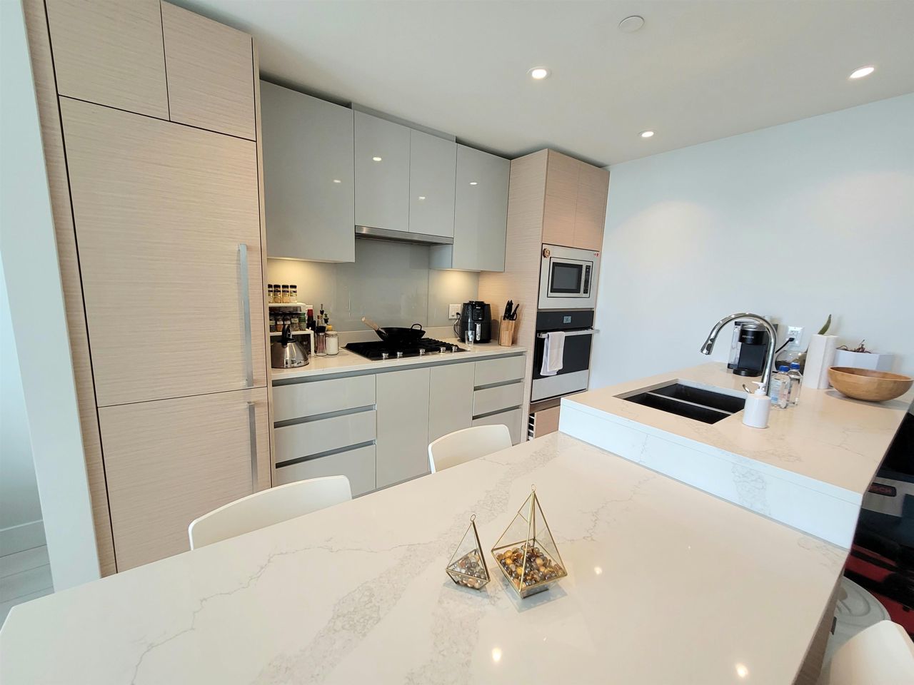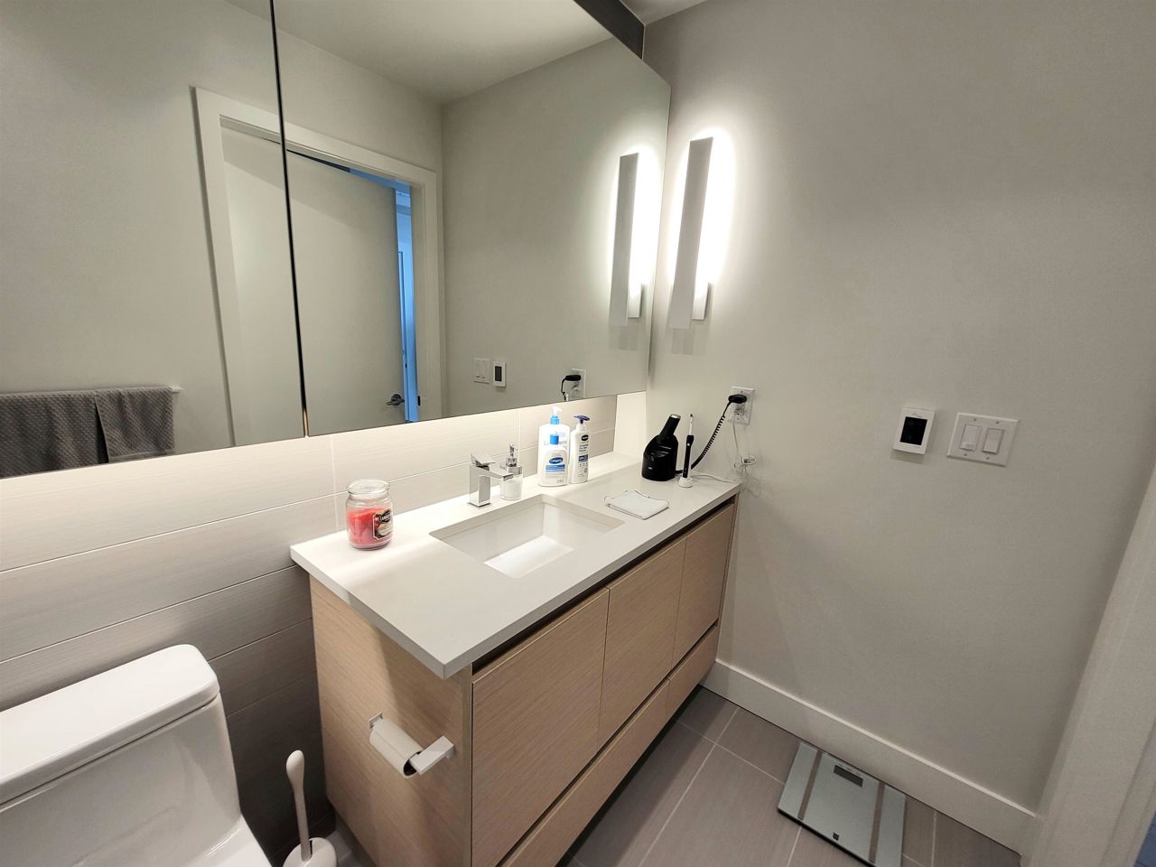 Centrally located Avalon 3 has abundance of luxurious high-end amenities with concierge srvc. This 1 bed+Den unit has modern design high-end finishes, state-of-the-art fully integrated Bosch SS appliances, wifi-controlled thermostat, kitchen with sleek cabinetry, ample storage, quartz backsplash & waterfall countertop. Spacious bedroom and the bathroom features elegant fixtures and radiant heated flooring. This bright and spacious unit on the 18th flr with large windows boast a stunning Mountain and River view. Comes with a unique full carpark stall with EV chrg, located next to elevator. The bldg has 10000sf rooftop terrace, outdoor pool, BBQ, full gym, 20000sf courtyard, 2 guests suite, dogwash stn + more. Just 10mins from skytrain, bus-stop right next door, near shopping, cafe etc.