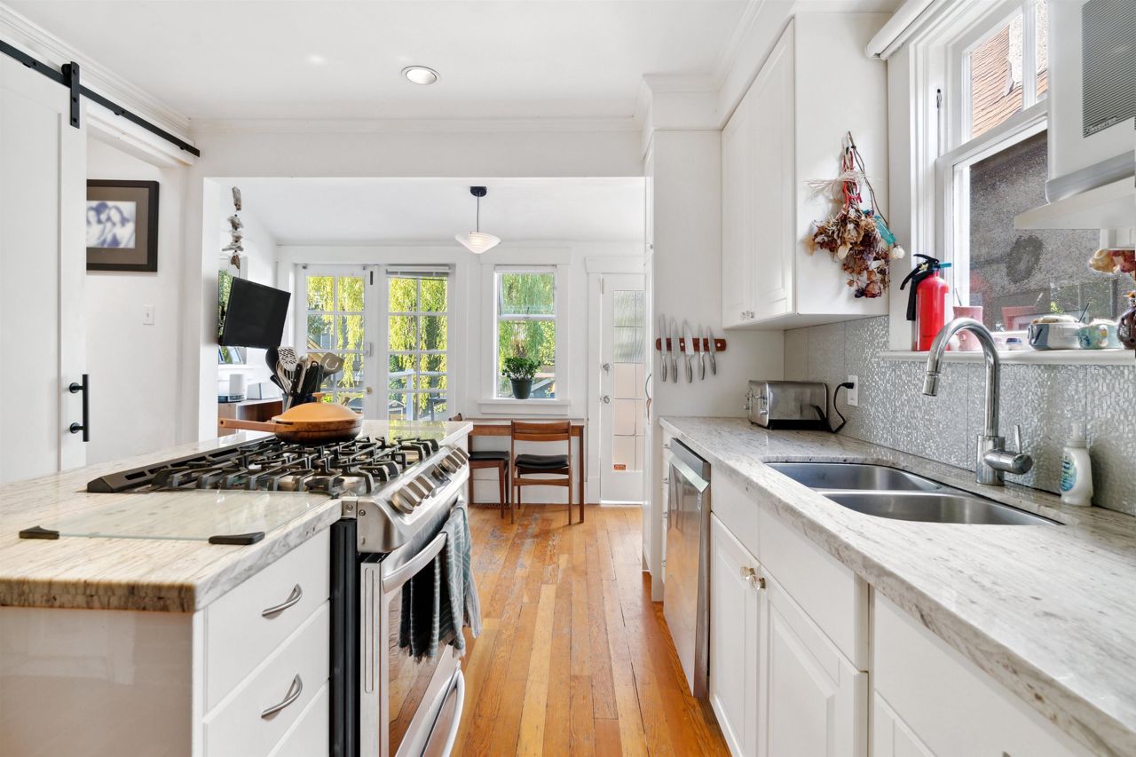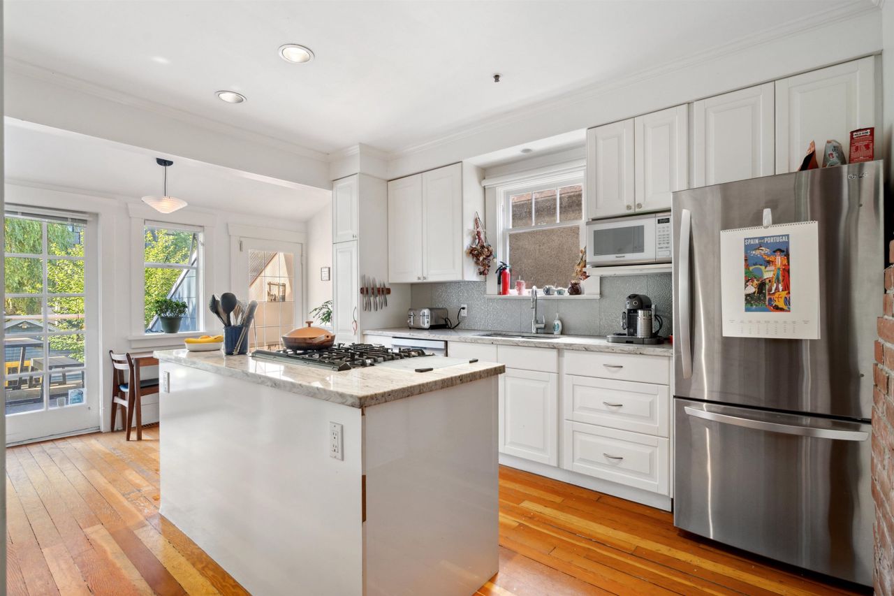 Wonderfully maintained 4 bedroom home with large south facing patio & garden located on a quiet street in beautiful Kitsilano. This home boasts refinished Oak and Fir flooring, wood burning fireplace, a wood beautifully renovated kitchen, updated bathrooms, an excellent floor plan, spacious principal rooms, unique top level master bedroom with large south facing deck, lots of natural light throughout, 2021 hot water tank, 2021 gas furnace, new windows (front and side) 2023, EV charger in garage, plus a legal 2BR suite. Sunny deck, patio & garden are perfect for entertaining and relaxing. One car garage. Prime location, walk to Jericho Beach, Pacific Spirit Park, Bayview Elementary, shops, specialty stores & restaurants with easy access to transportation. Open House Saturday August 12 2-4pm