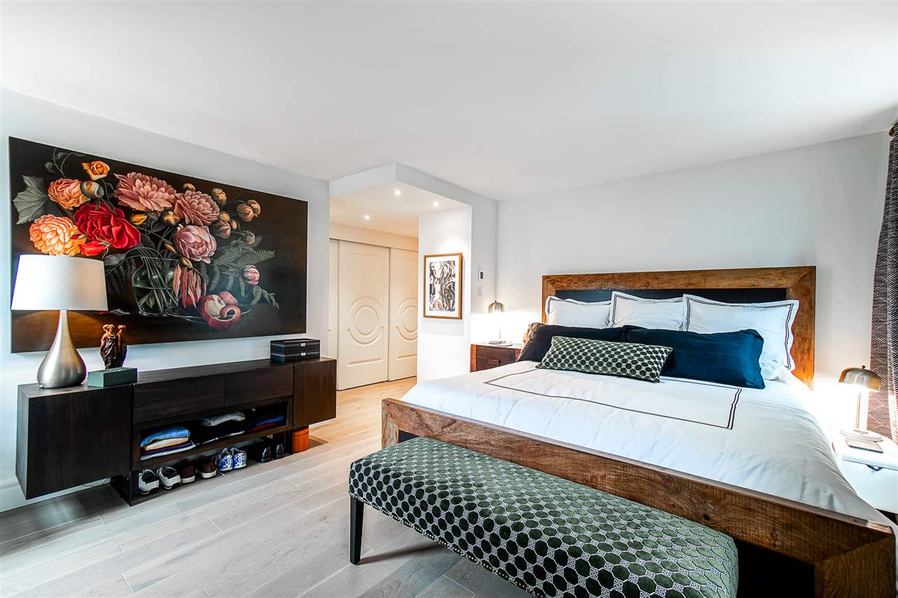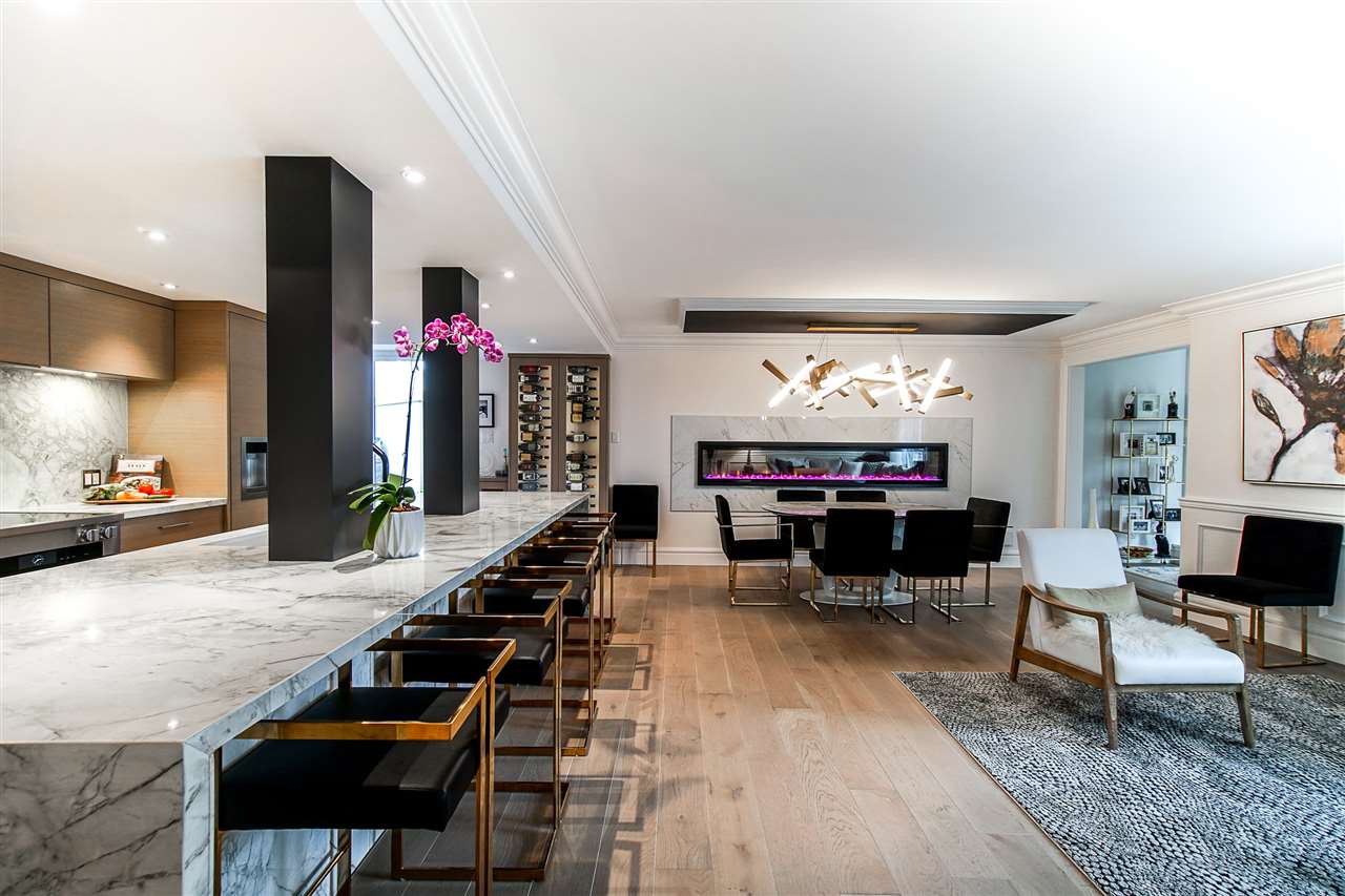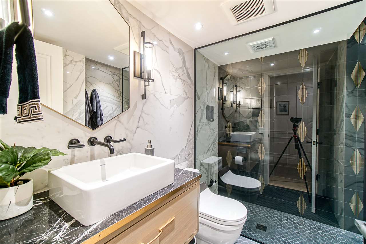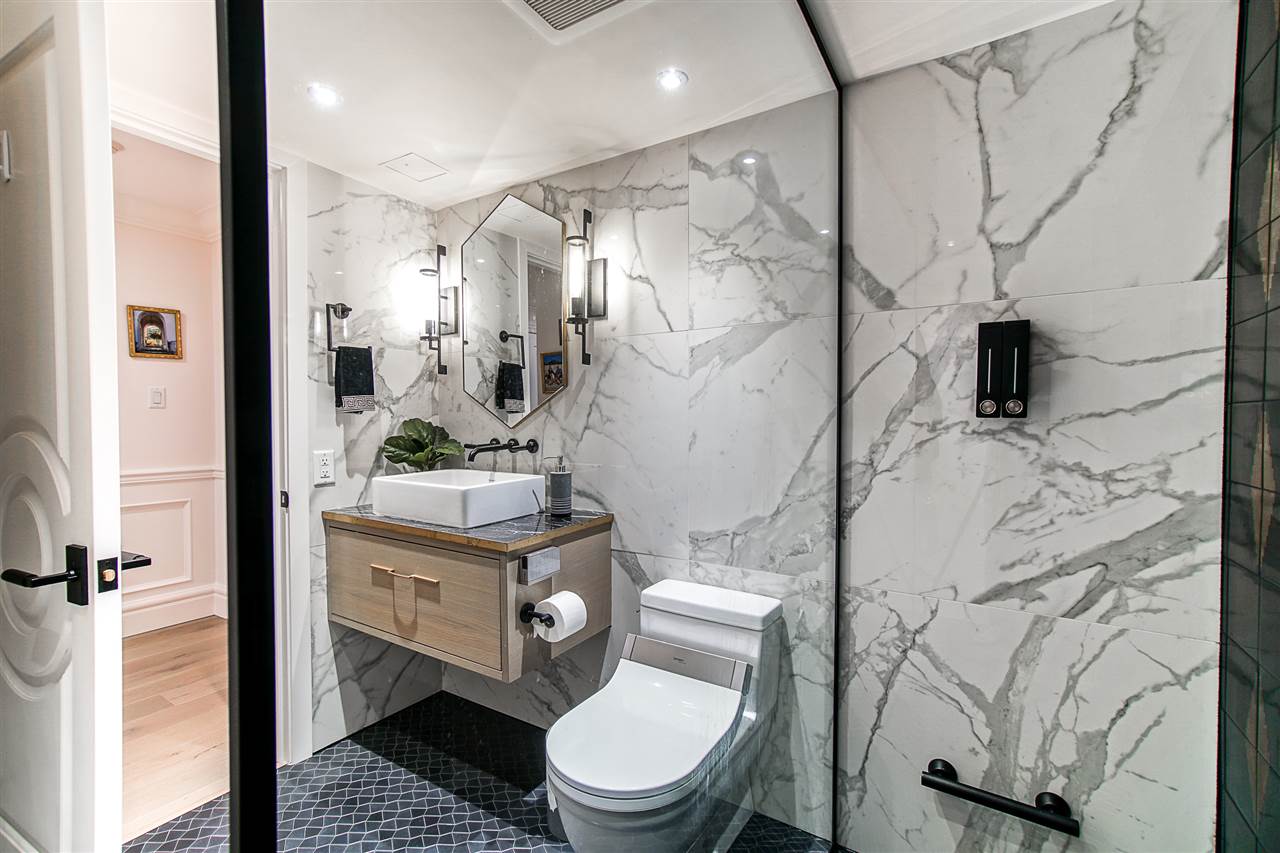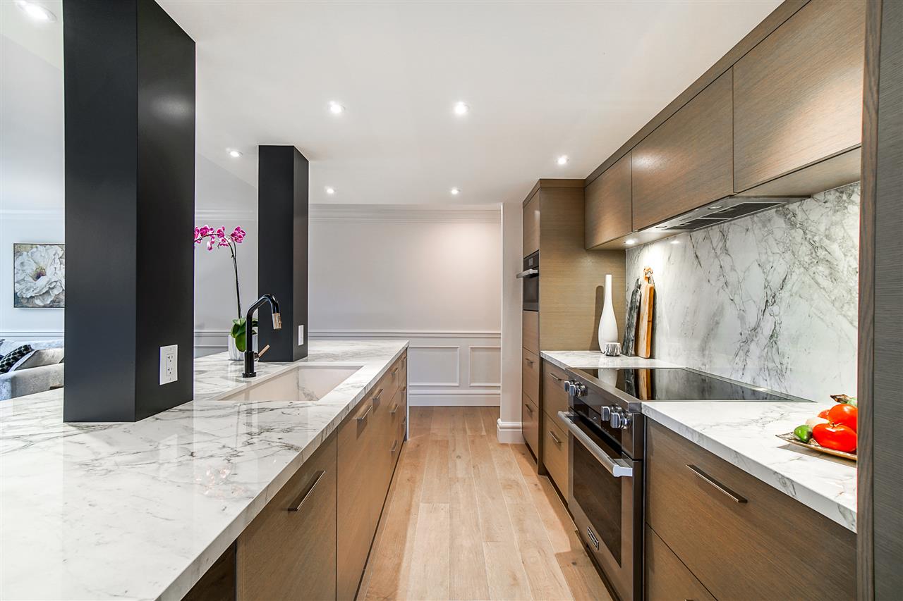 Welcome home to your Art Deco inspired home. Completely renovated and meticulously detailed with luxurious touches and elegant finishes, reminiscent of the bygone era of the 1920's. This great space was taken down to the bare walls, studs and then some in order to create this masterpiece. All appliances are made by Miele including the side by side fridge/freezer with exterior water and ice dispenser, dish washer, wine fridge, induction stove top with water piped oven for consistently perfect cooking results, and a separate steam oven. There are no baseboard heaters, the entire place is fitted with in-floor heating , and the highest grade of floorboard soundproofing. Two large bedrooms, 2 full bathrooms, storage and nook, 2 massive patios and 2 parking stalls. A must see to appreciate!
