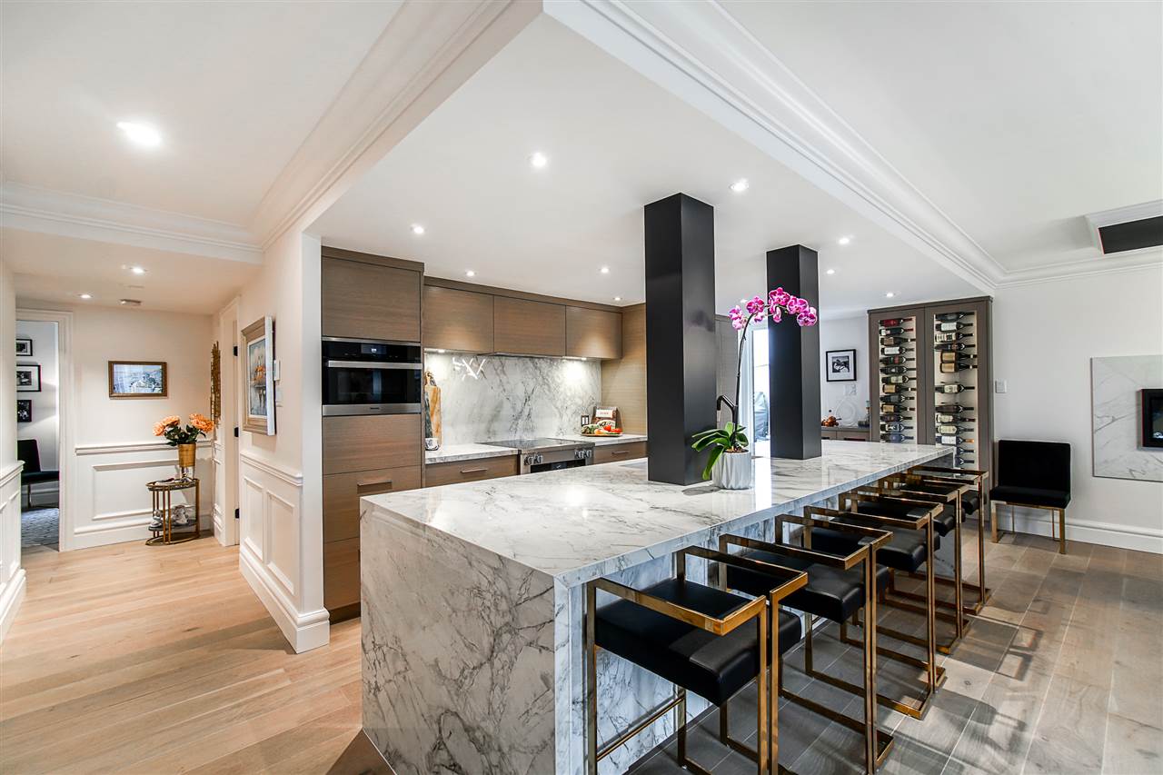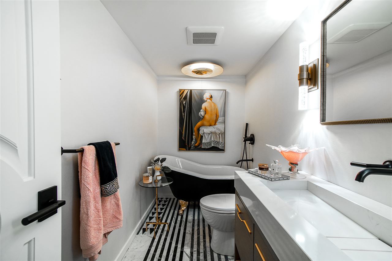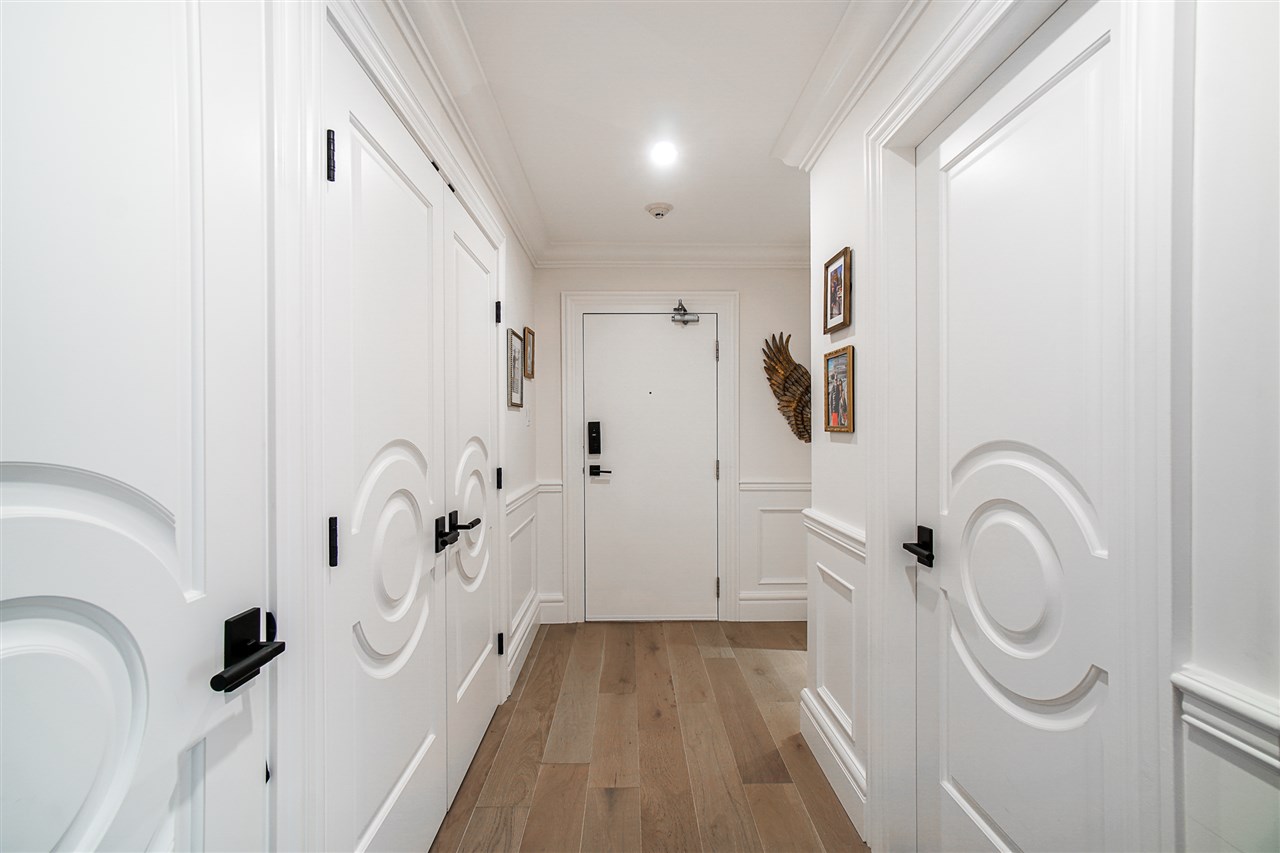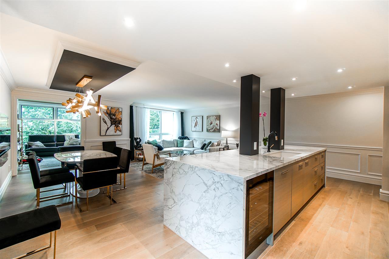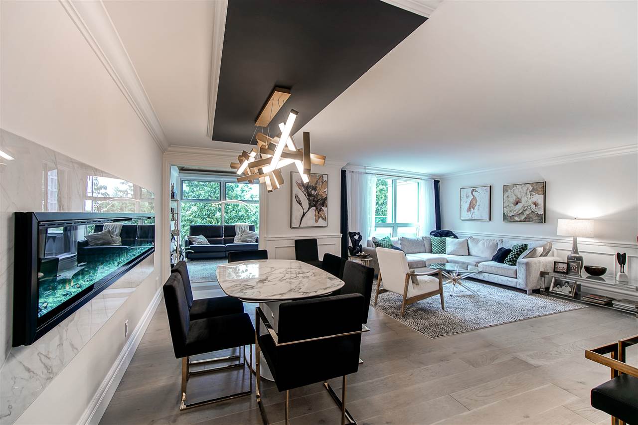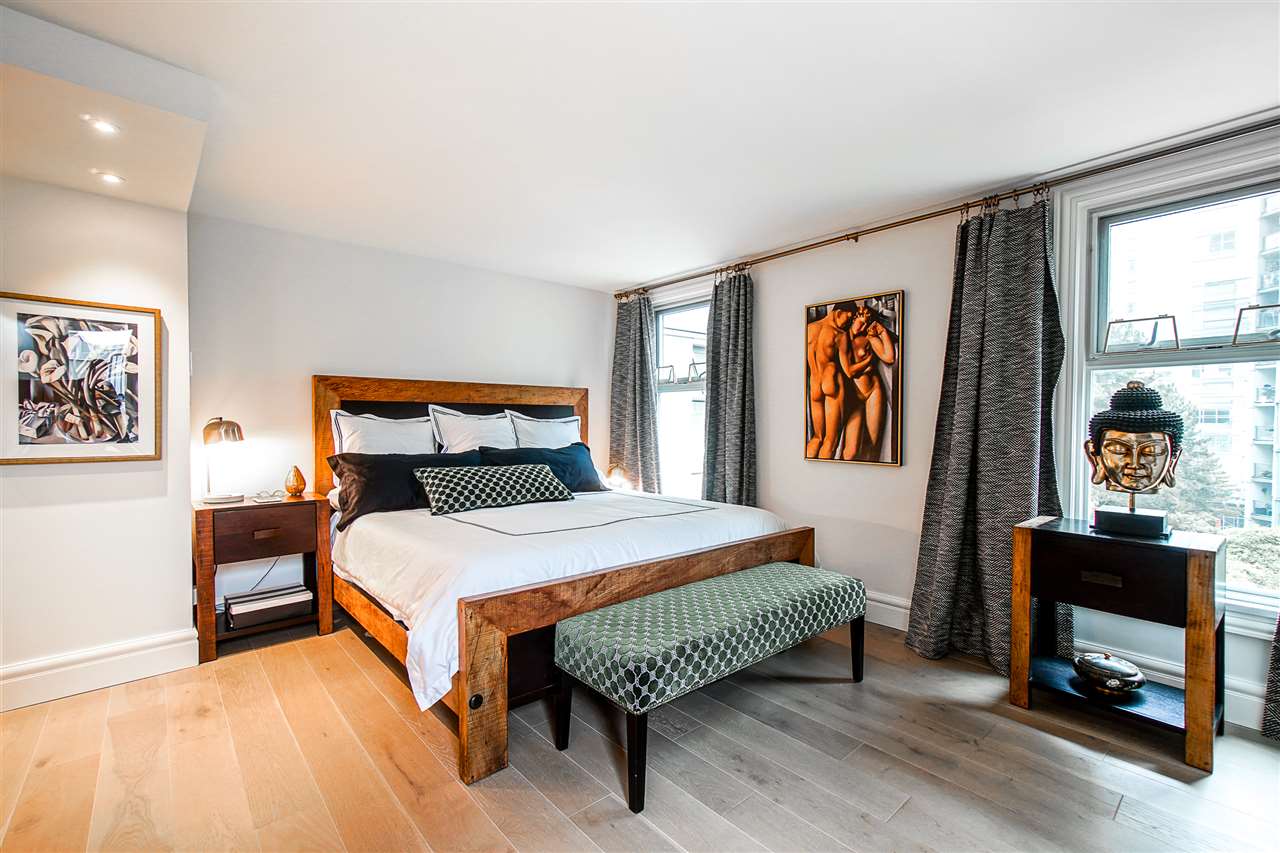 Welcome home to your Art Deco inspired home. Completely renovated and meticulously detailed with luxurious touches and elegant finishes, reminiscent of the bygone era of the 1920's. This great space was taken down to the bare walls, studs and then some in order to create this masterpiece. All appliances are made by Miele including the side by side fridge/freezer with exterior water and ice dispenser, dish washer, wine fridge, induction stove top with water piped oven for consistently perfect cooking results, and a separate steam oven. There are no baseboard heaters, the entire place is fitted with in-floor heating , and the highest grade of floorboard soundproofing. Two large bedrooms, 2 full bathrooms, storage and nook, 2 massive patios and 2 parking stalls. A must see to appreciate!